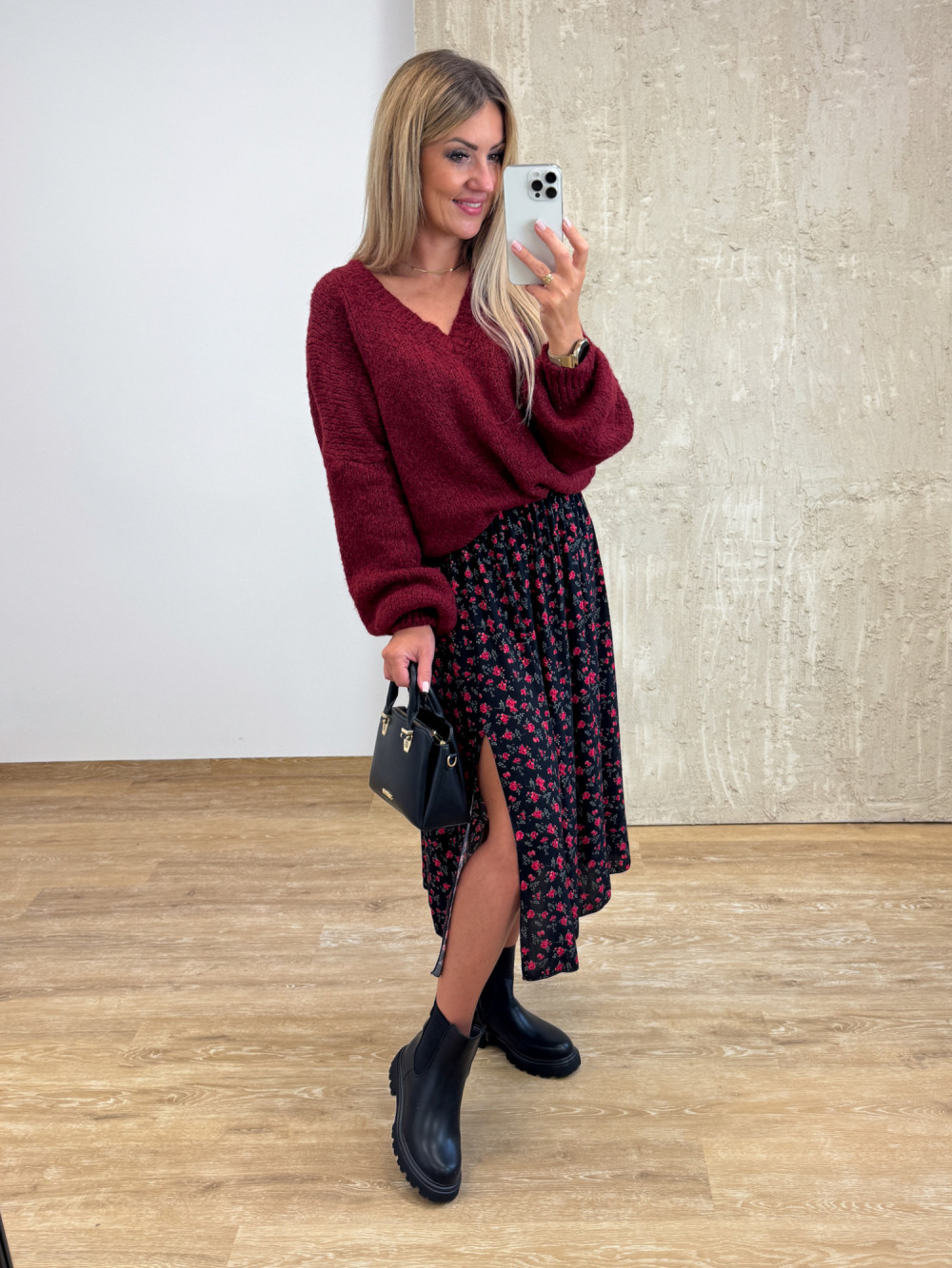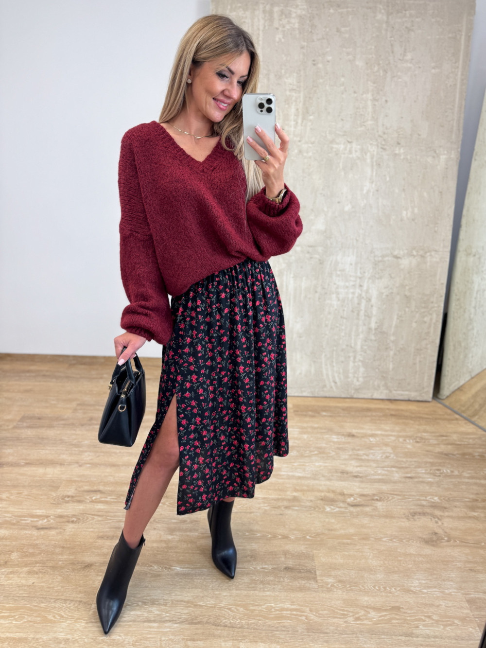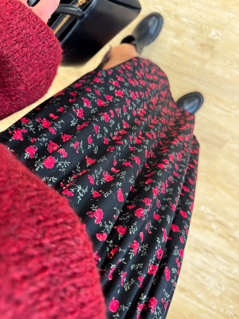 Spódnica Midi Soma - Czarna w Czerwone Kwiatuszki