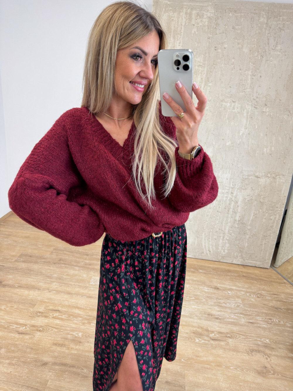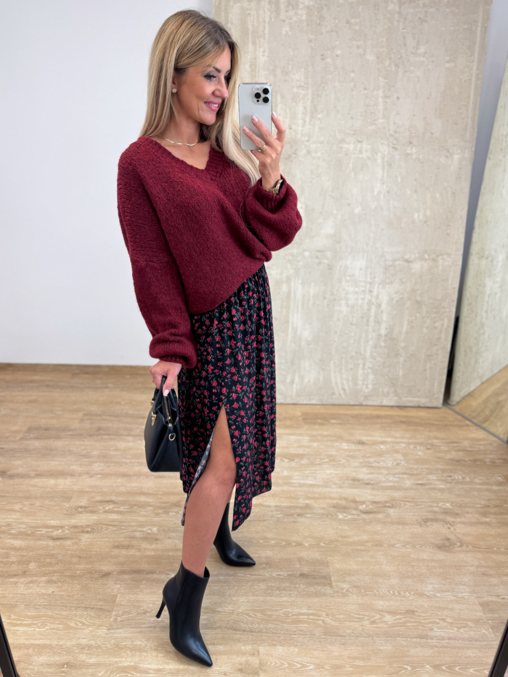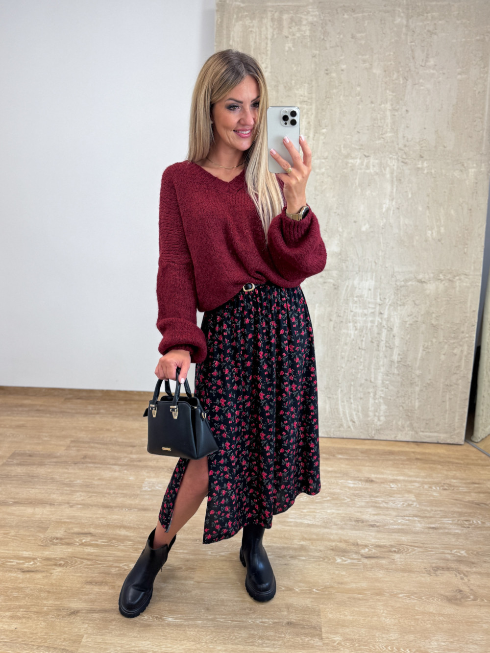 Spódnica Midi Soma - Czarna w Czerwone Kwiatuszki