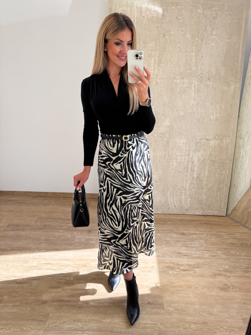 Eleganckie body o przylegającym kroju, które podkreśla sylwetkę i zapewnia komfort noszenia. Kopertowy dekolt dodaje kobiecego charakteru, a rękawy dopasowane do ramion tworzą gładką, subtelną linię.