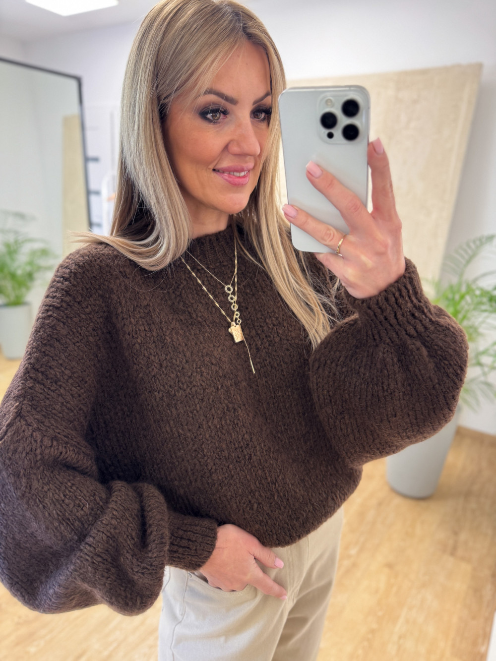 Sweter z Bufiastym Rękawem Ares - Ciemna Czekolada