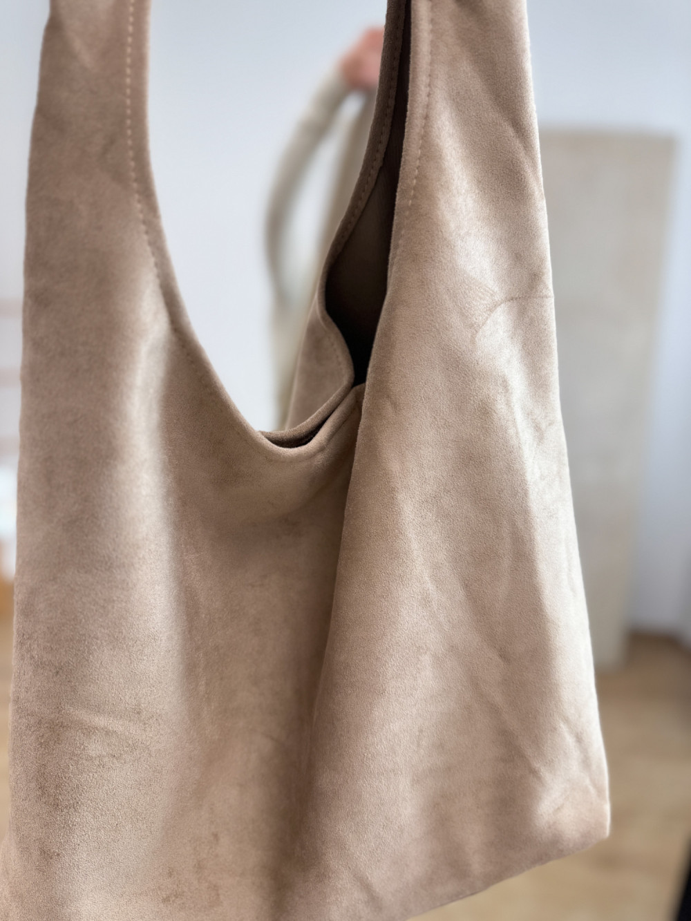 Stylowa i niezwykle praktyczna torebka z miękkiego zamszu o luźnym kroju typu worek. Lekka, przyjemna w dotyku i pojemna – idealna do codziennych stylizacji. Model zapinany na zatrzask, a wewnątrz znajduje się dodatkowa kosmetyczka na zamek, która pozwala wygodnie przechować drobiazgi i najcenniejsze rzeczy.