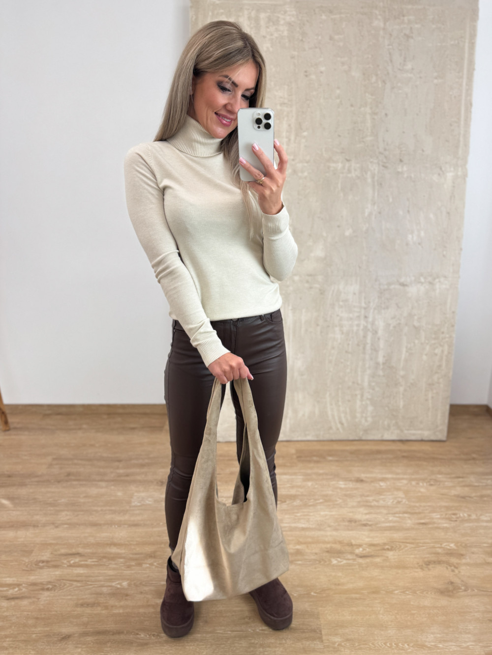Minimalistyczna forma i miękka konstrukcja sprawiają, że torebka doskonale dopasowuje się do kształtu sylwetki, łącząc funkcjonalność z modnym, miejskim stylem.