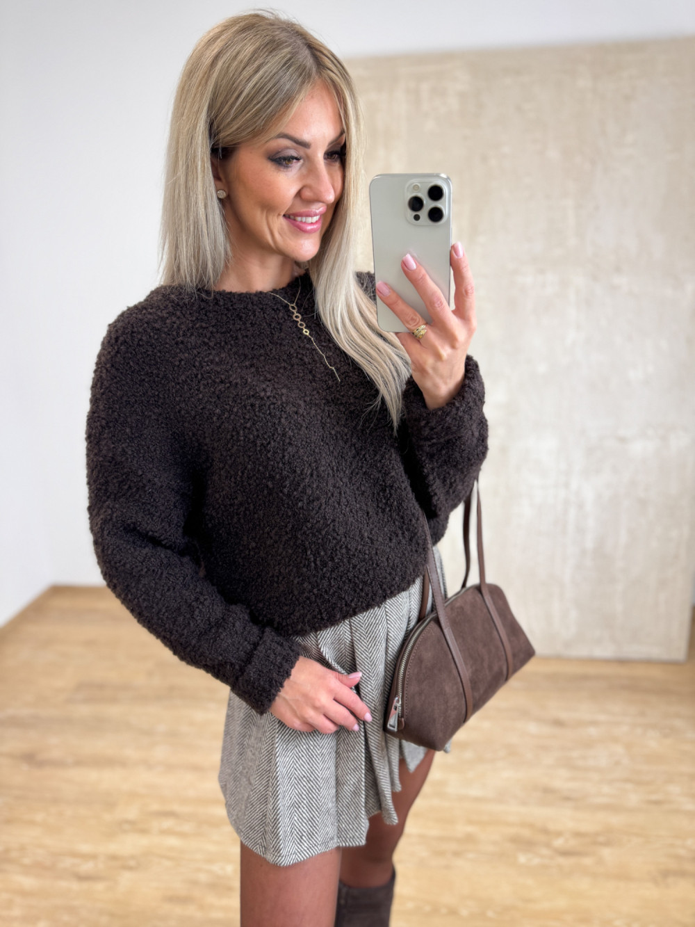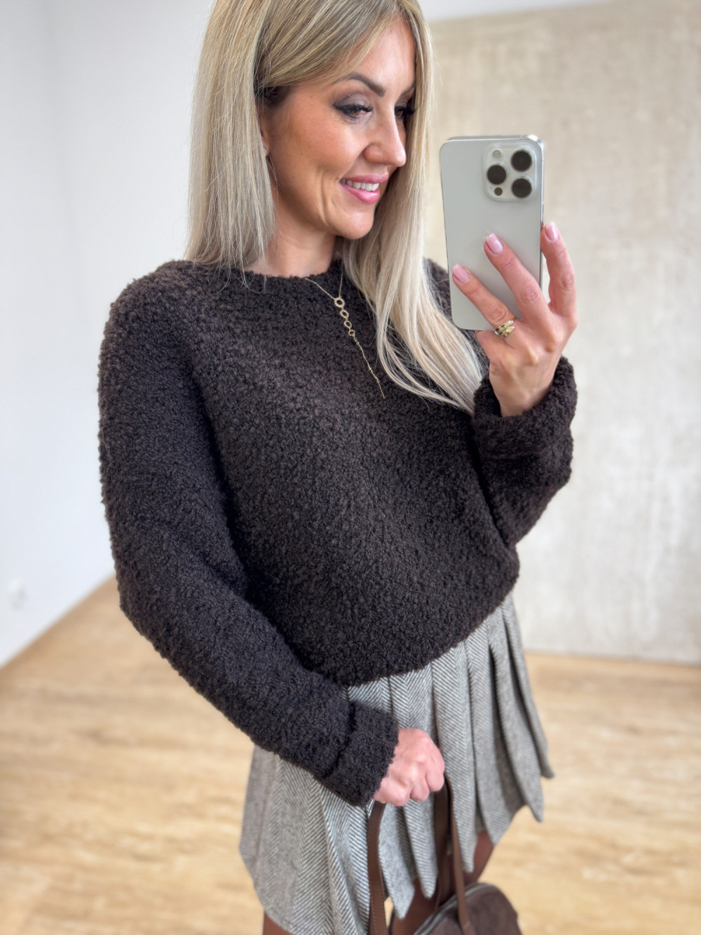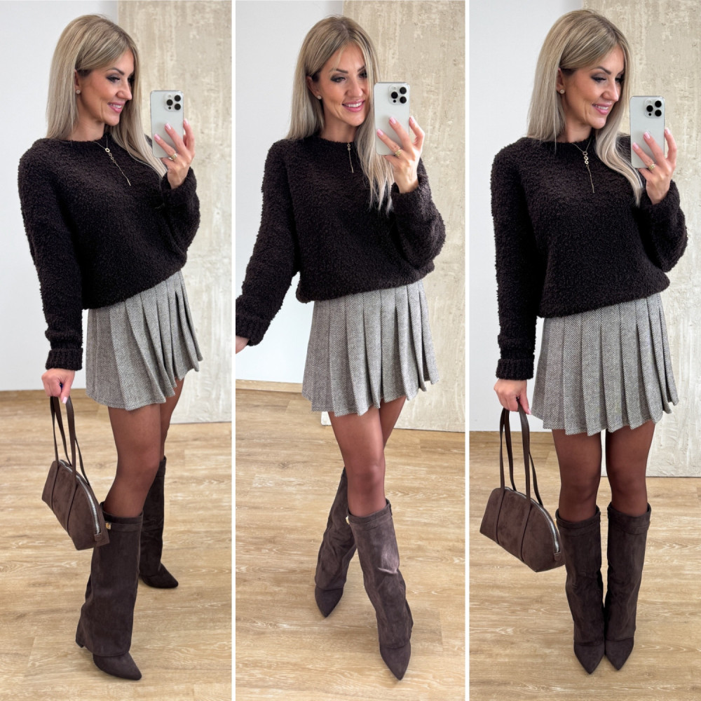 Sweter Bukla Podwinięty Mankiet Alone - Czekoladowy