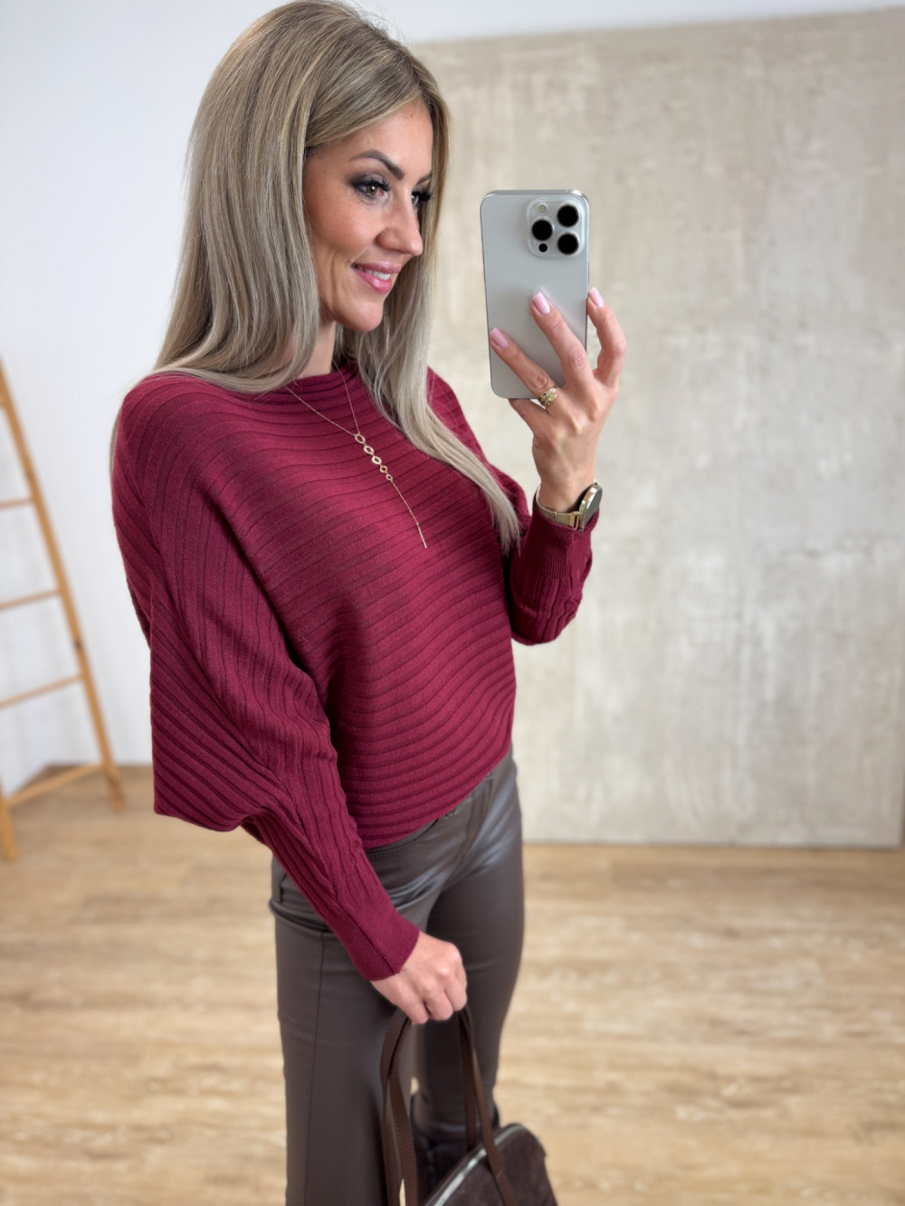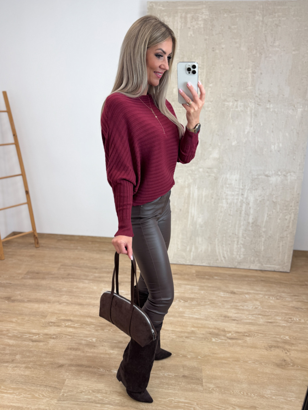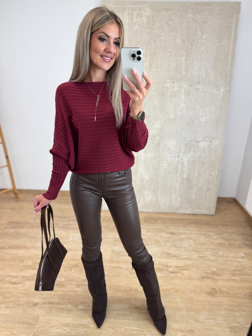 Sweter w Kroju Nietoperza Kami - Bordowy