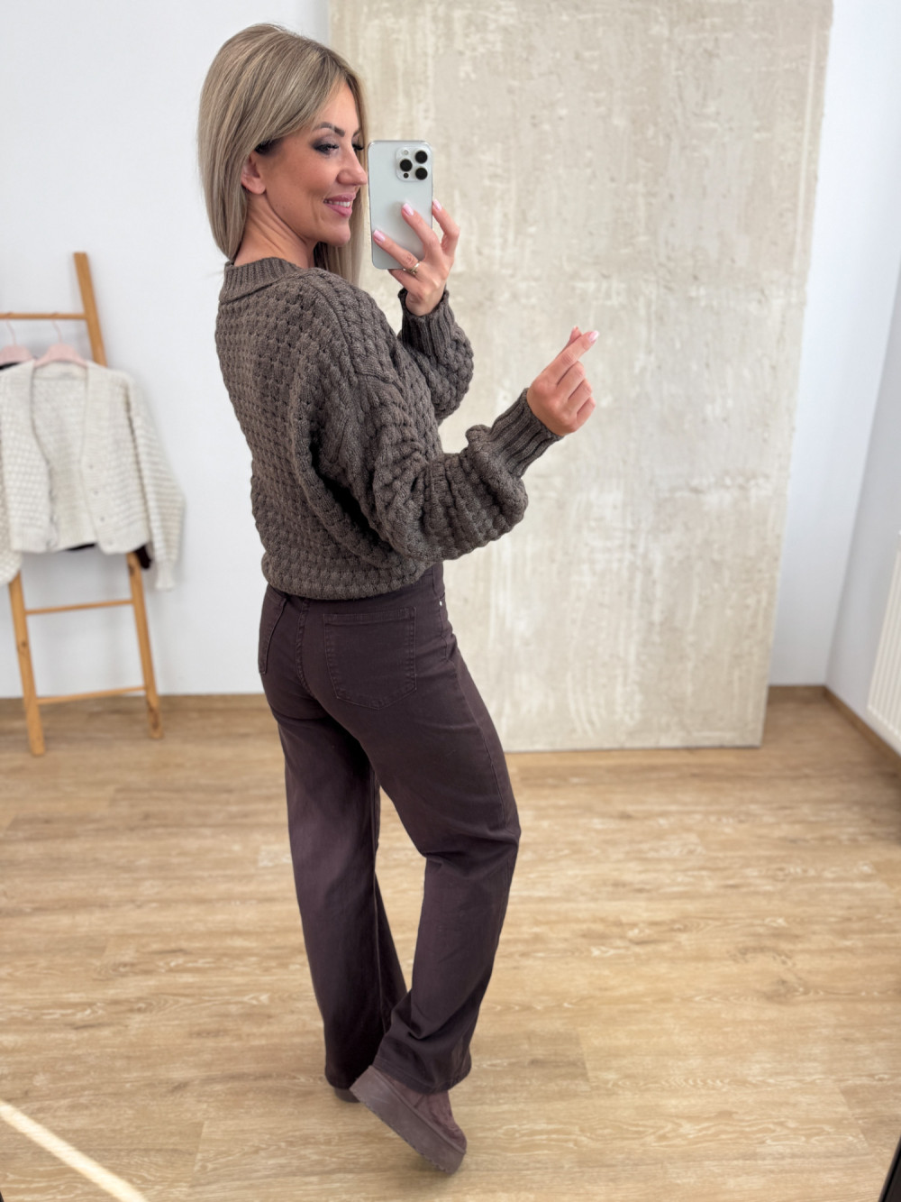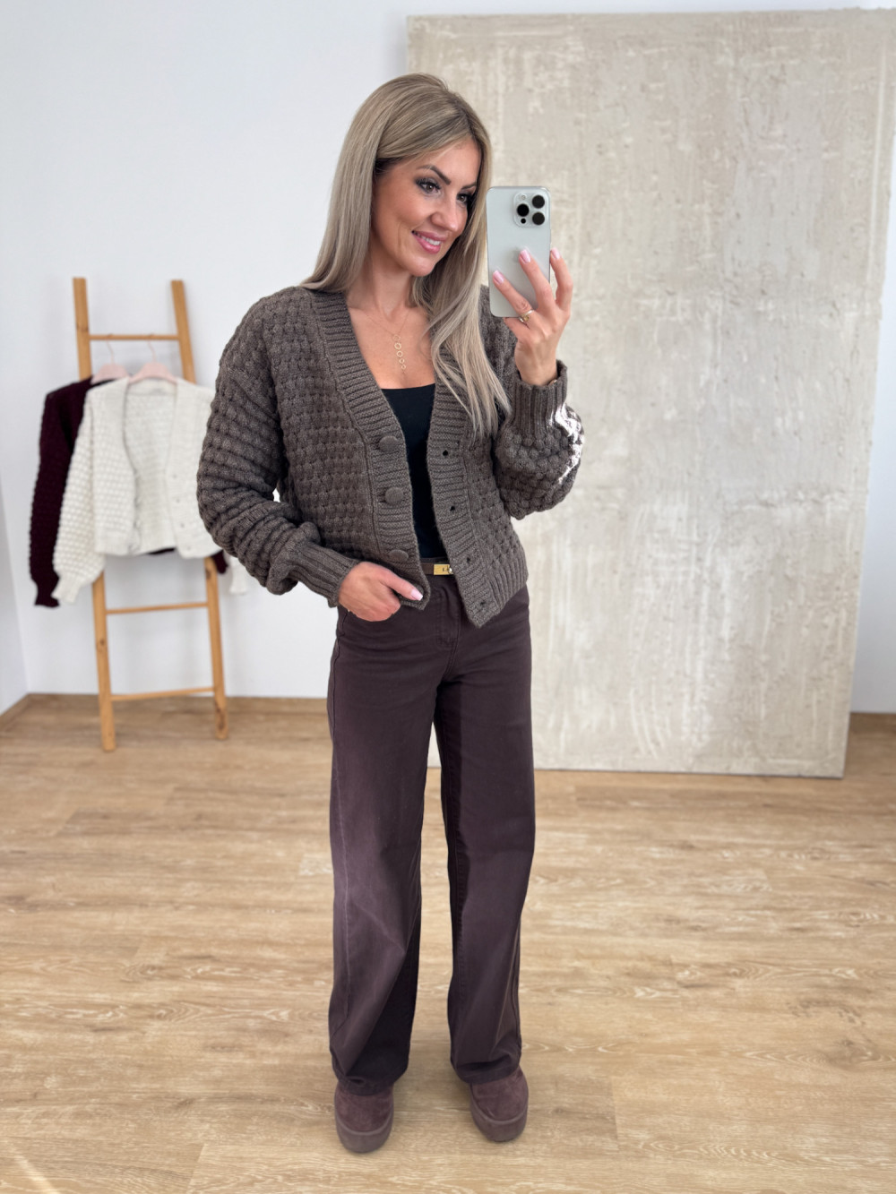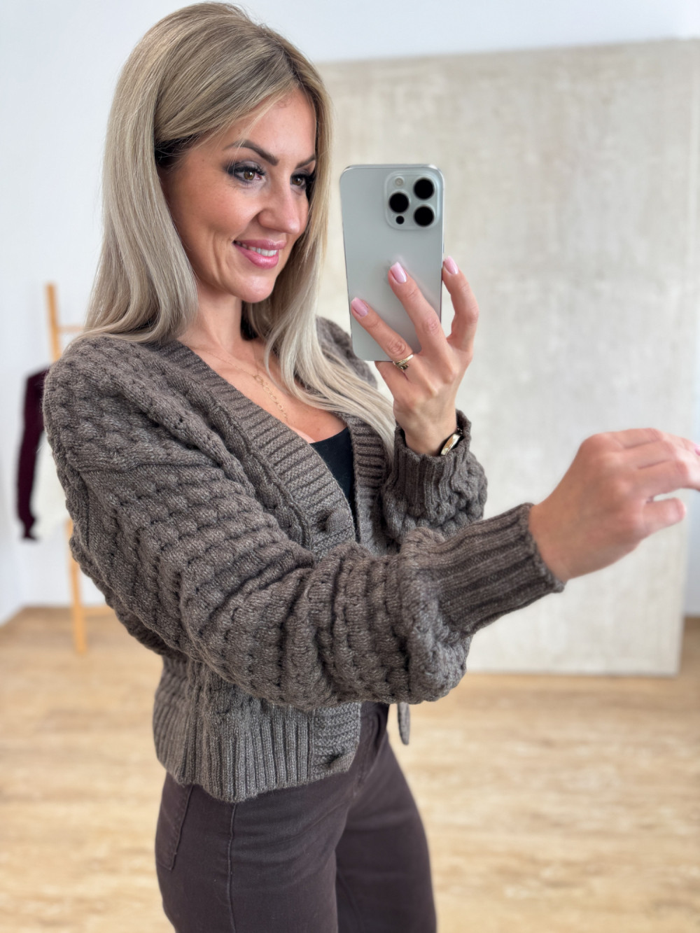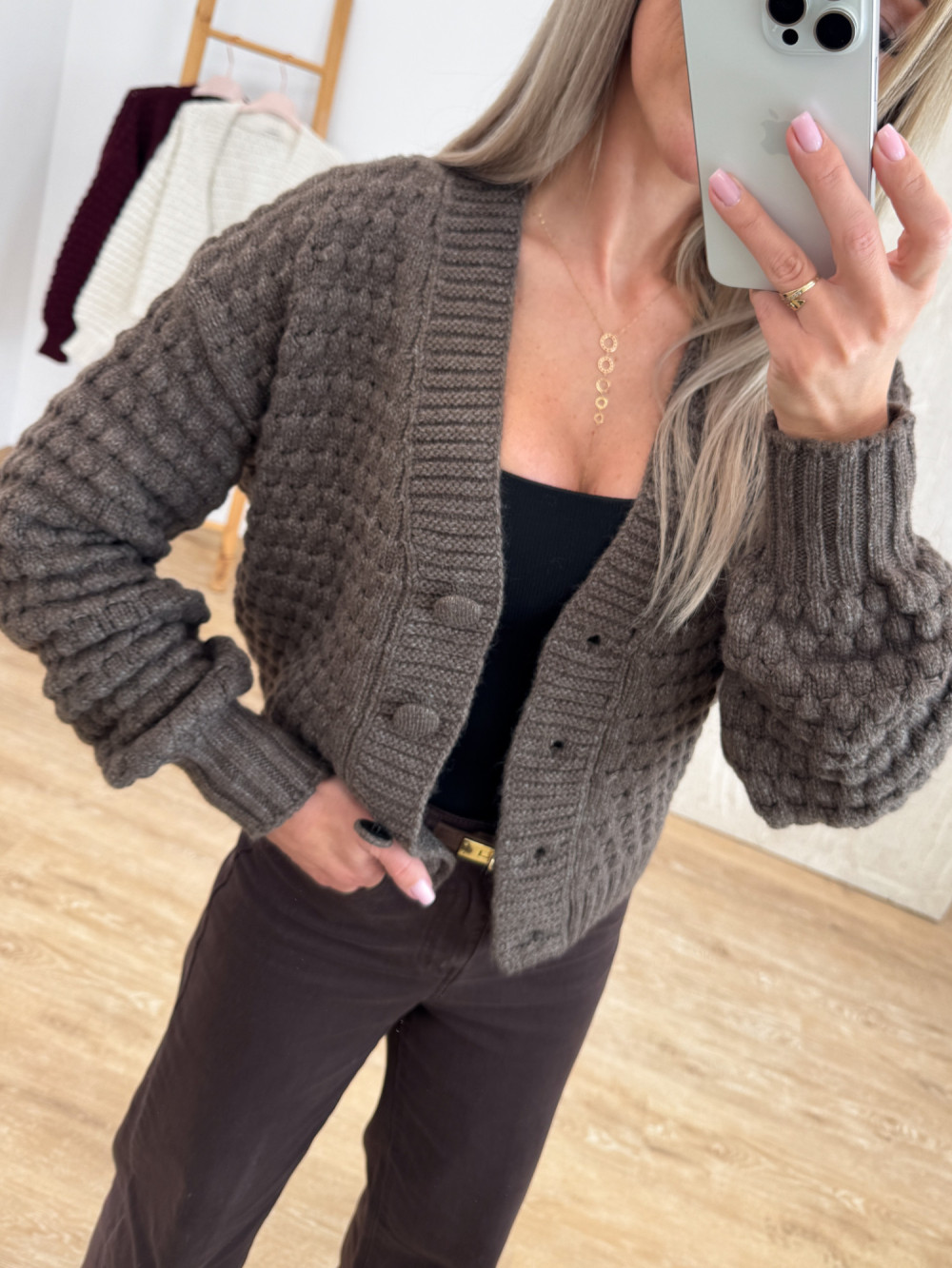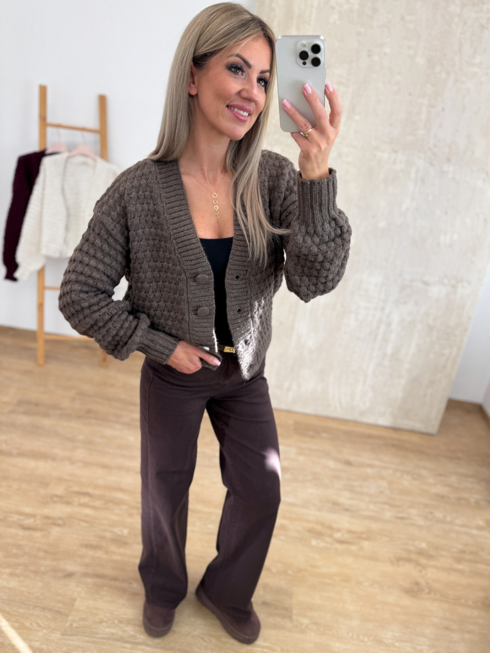 Sweter Rozpinany na Guziki Bubble - Czekoladowy
