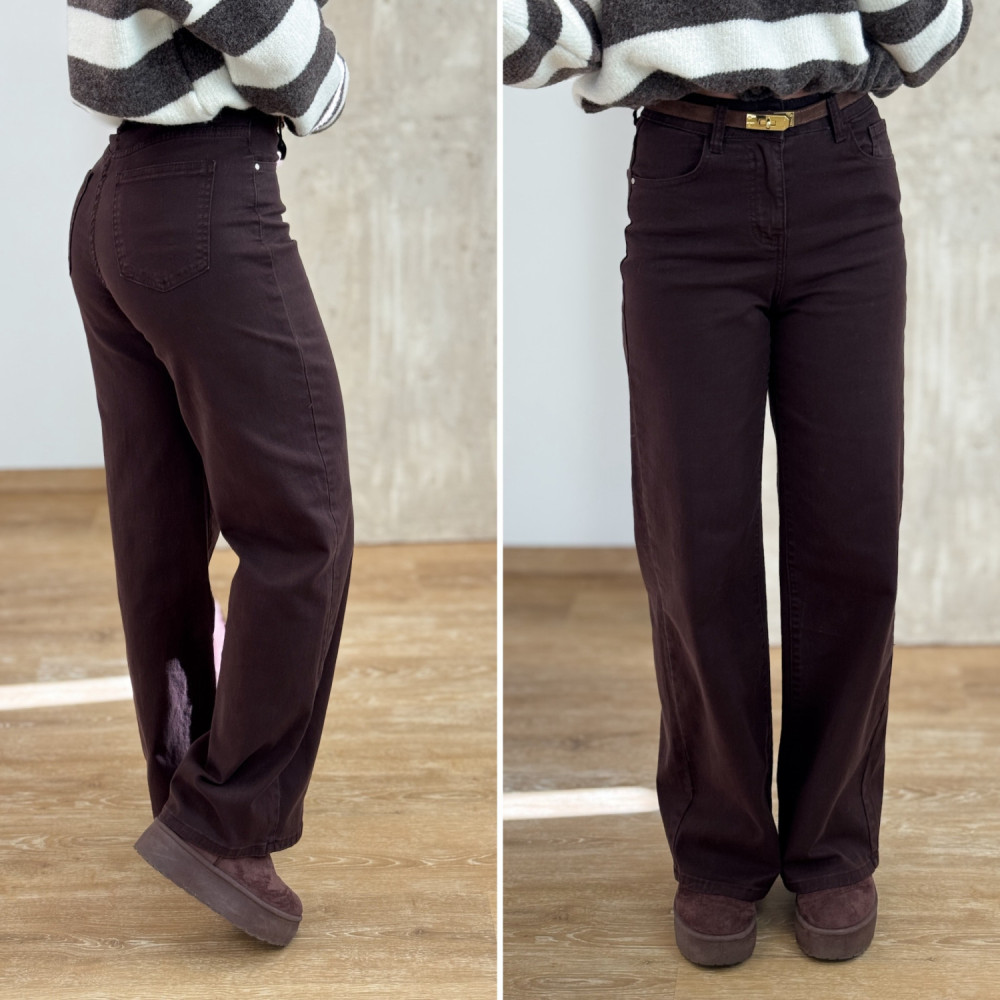 Spodnie Jeansy Wide Leg 623- Czekoladowe