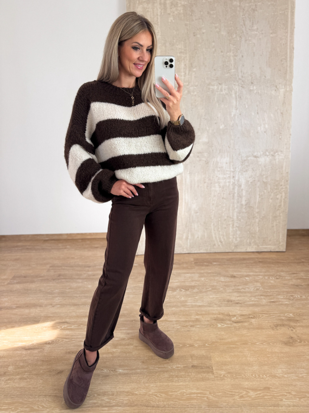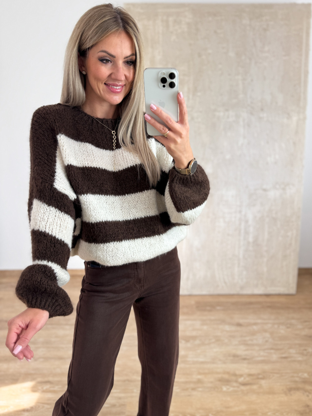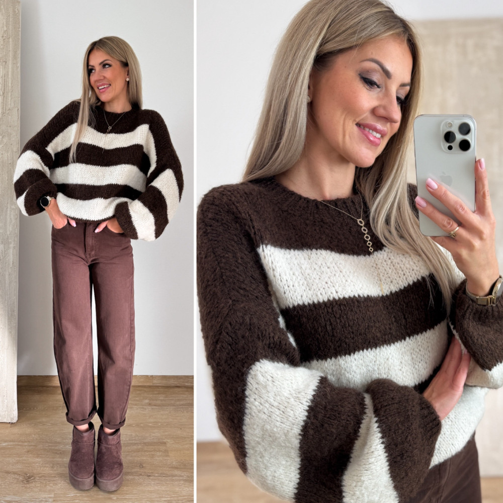 Sweter w Pasy Milano Soft - Czekoladowo Śmietankowy
