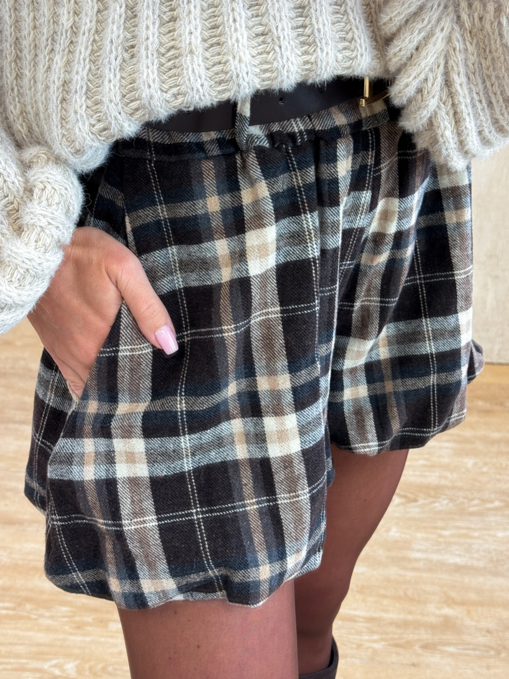 Spodenki Bombka w Krata Rompe - Czekoladowe z Szarym