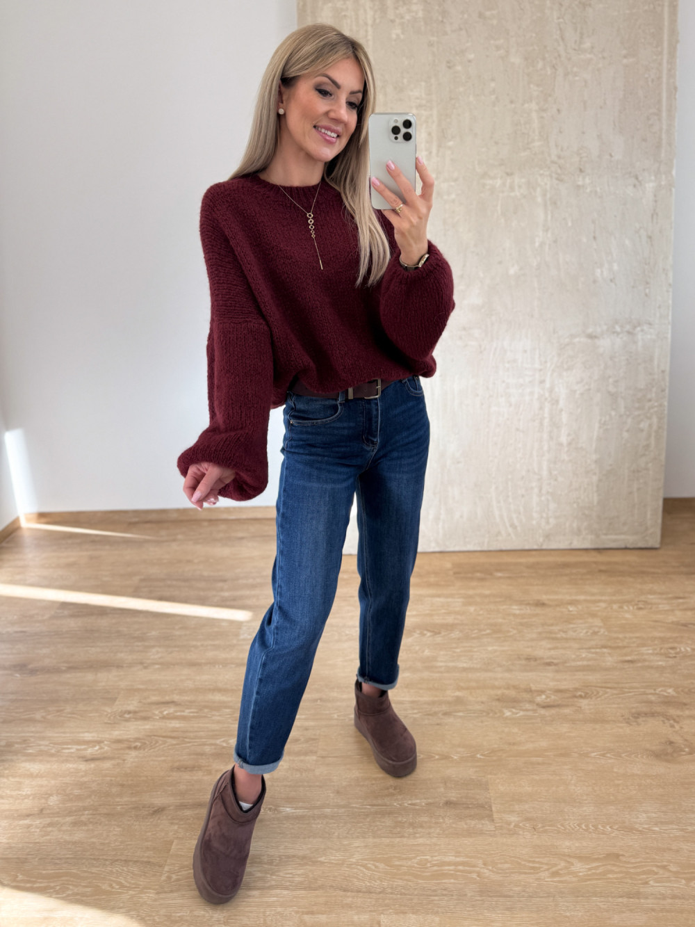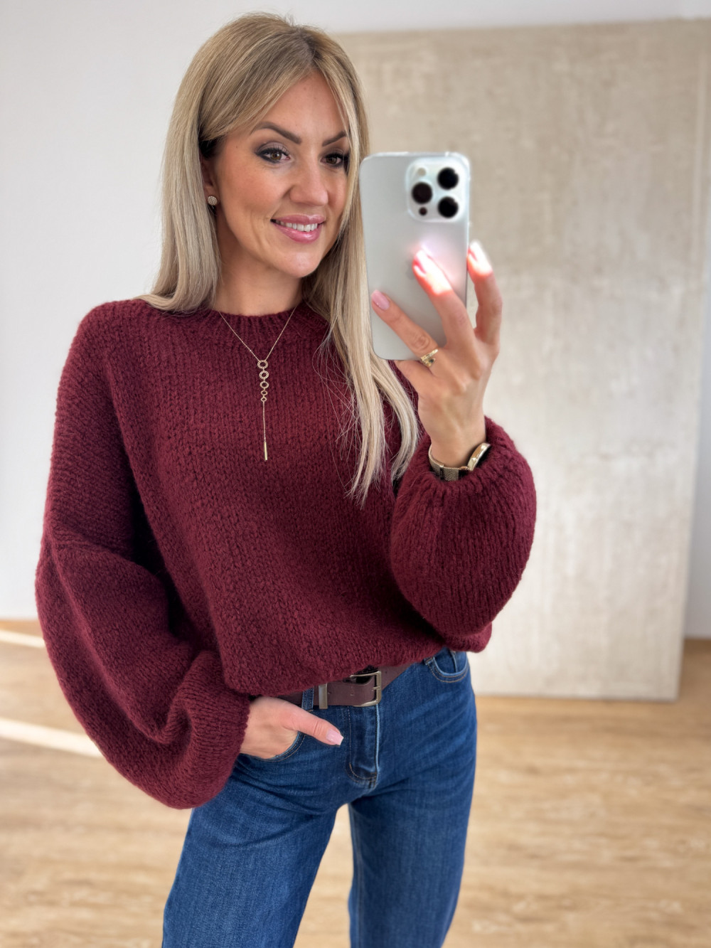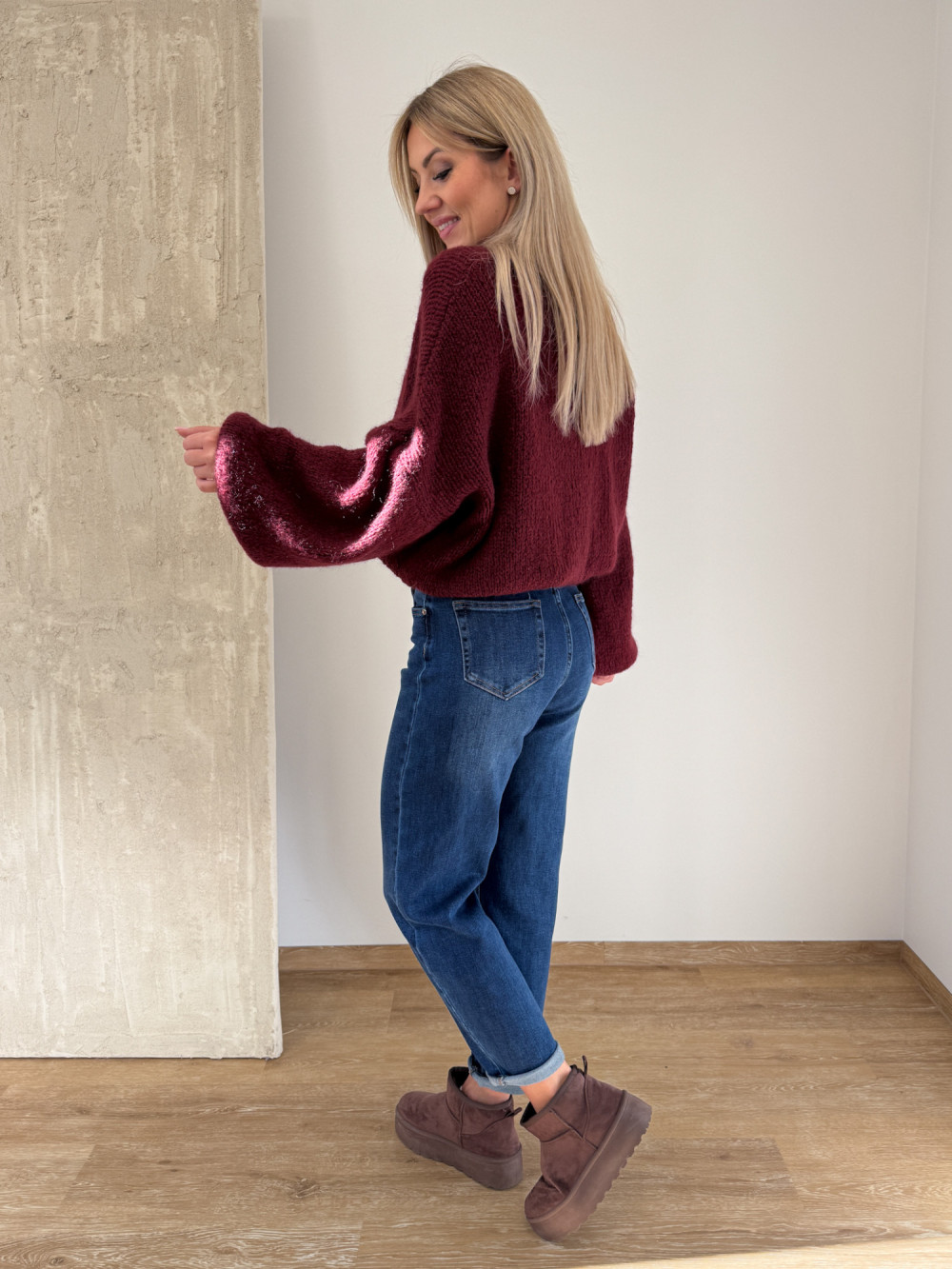 Sweter z Wełną Hagi - Bordowy