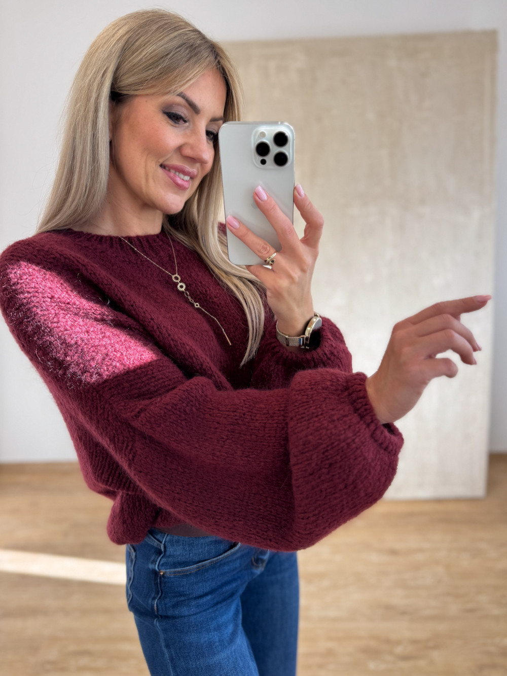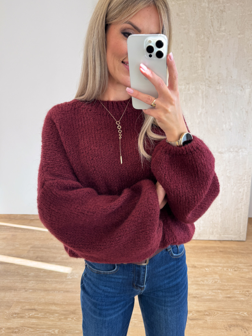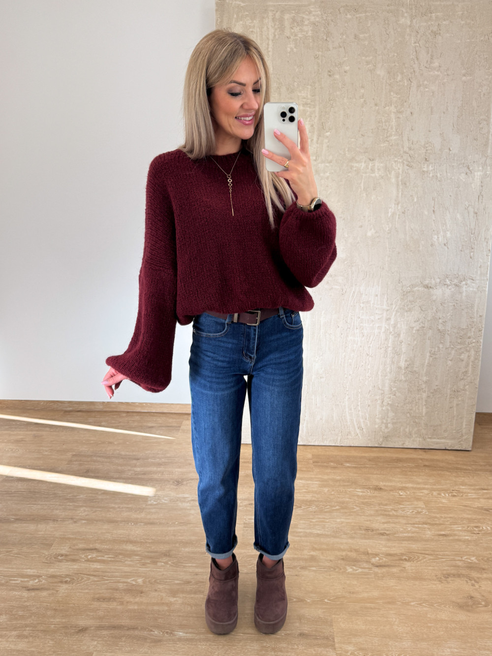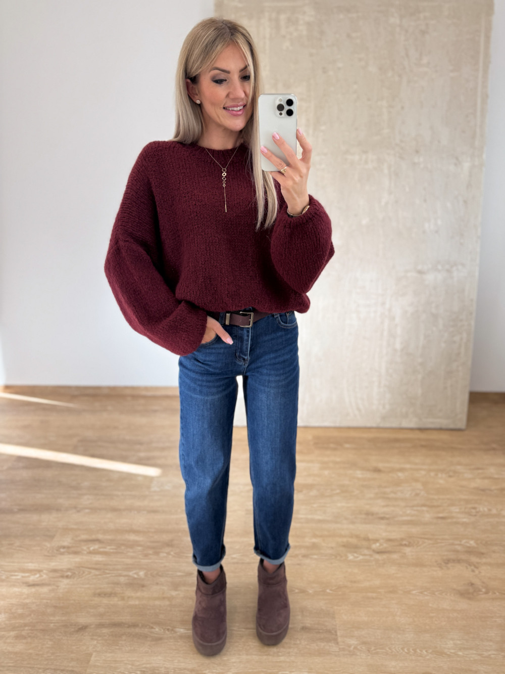 Sweter z Wełną Hagi - Bordowy