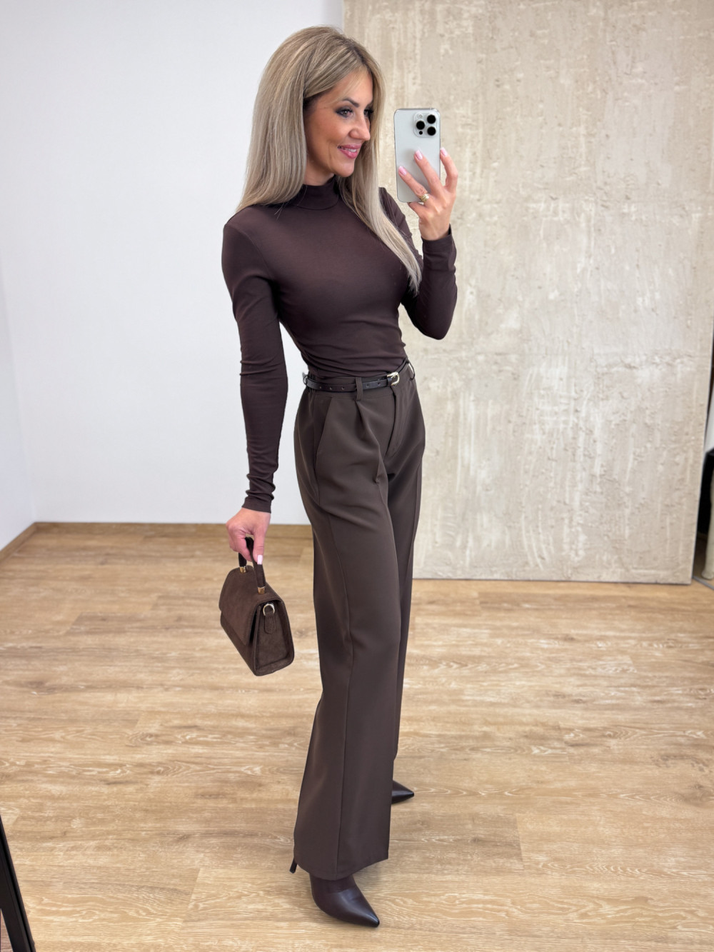 Bluzka z Półgolfem Elastyczna Batis - Czekoladowa