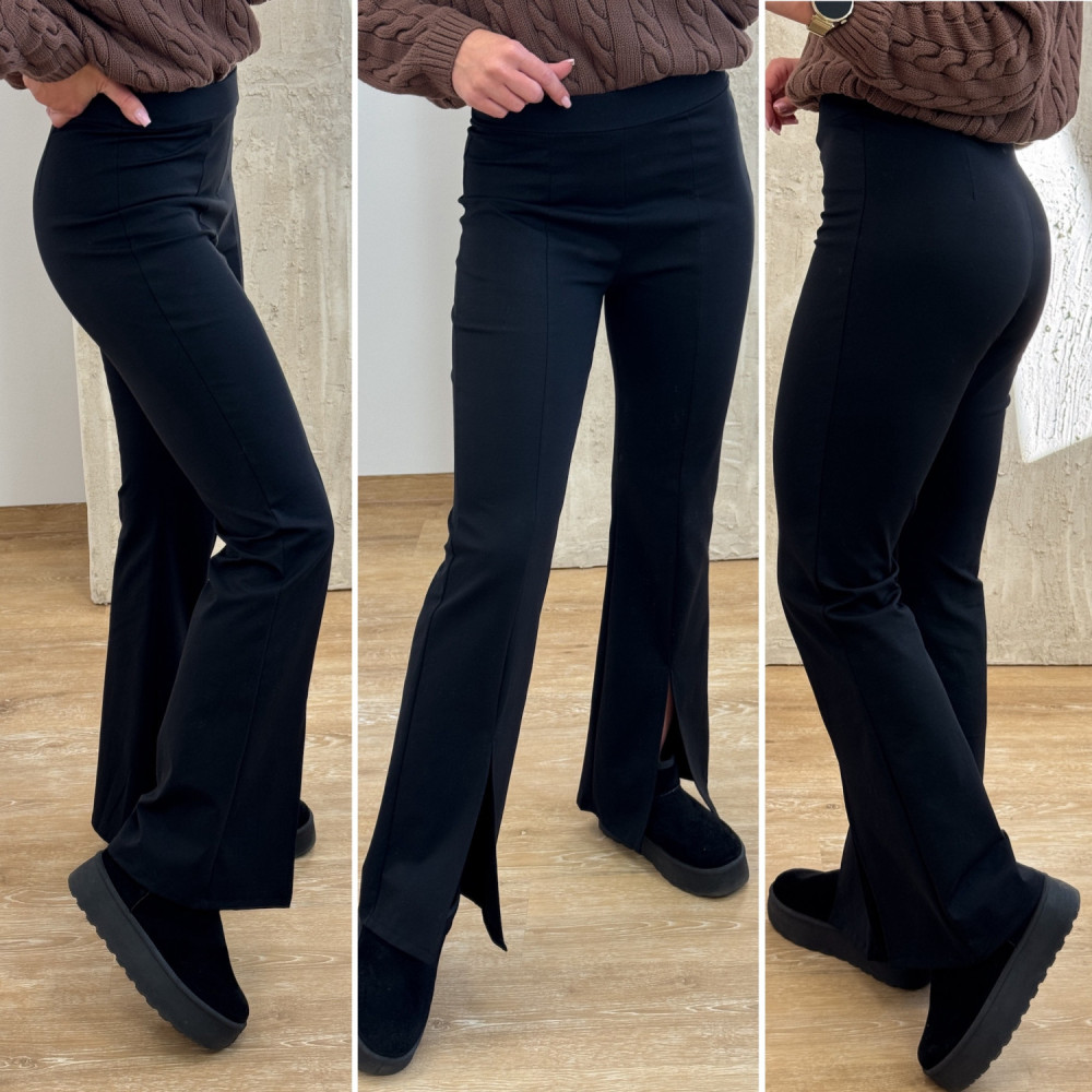 Spodnie Bawełniane z Rozcięciem z Przodu - Czarne