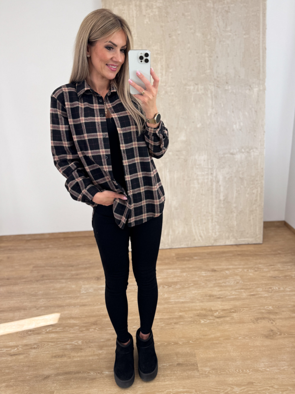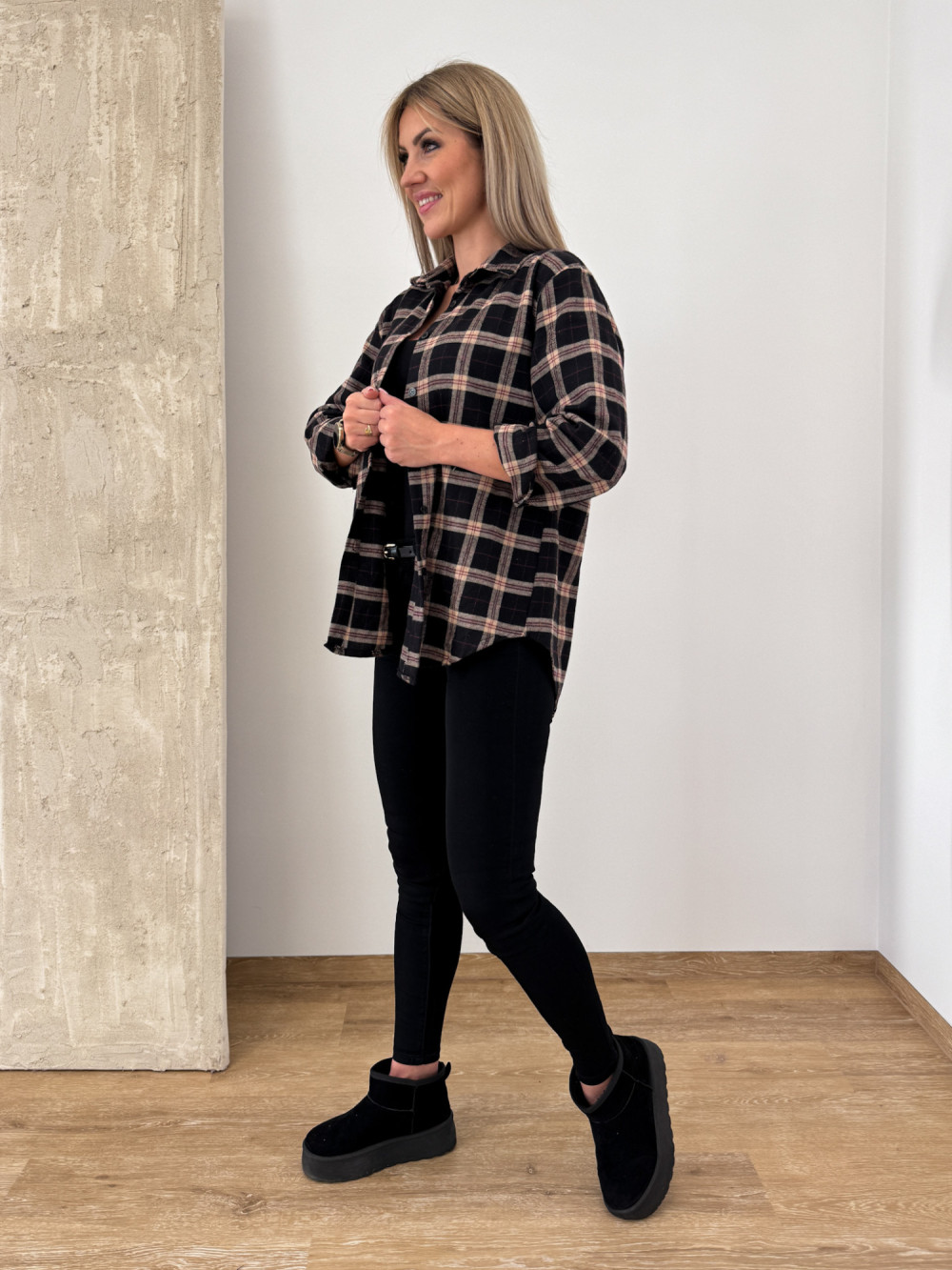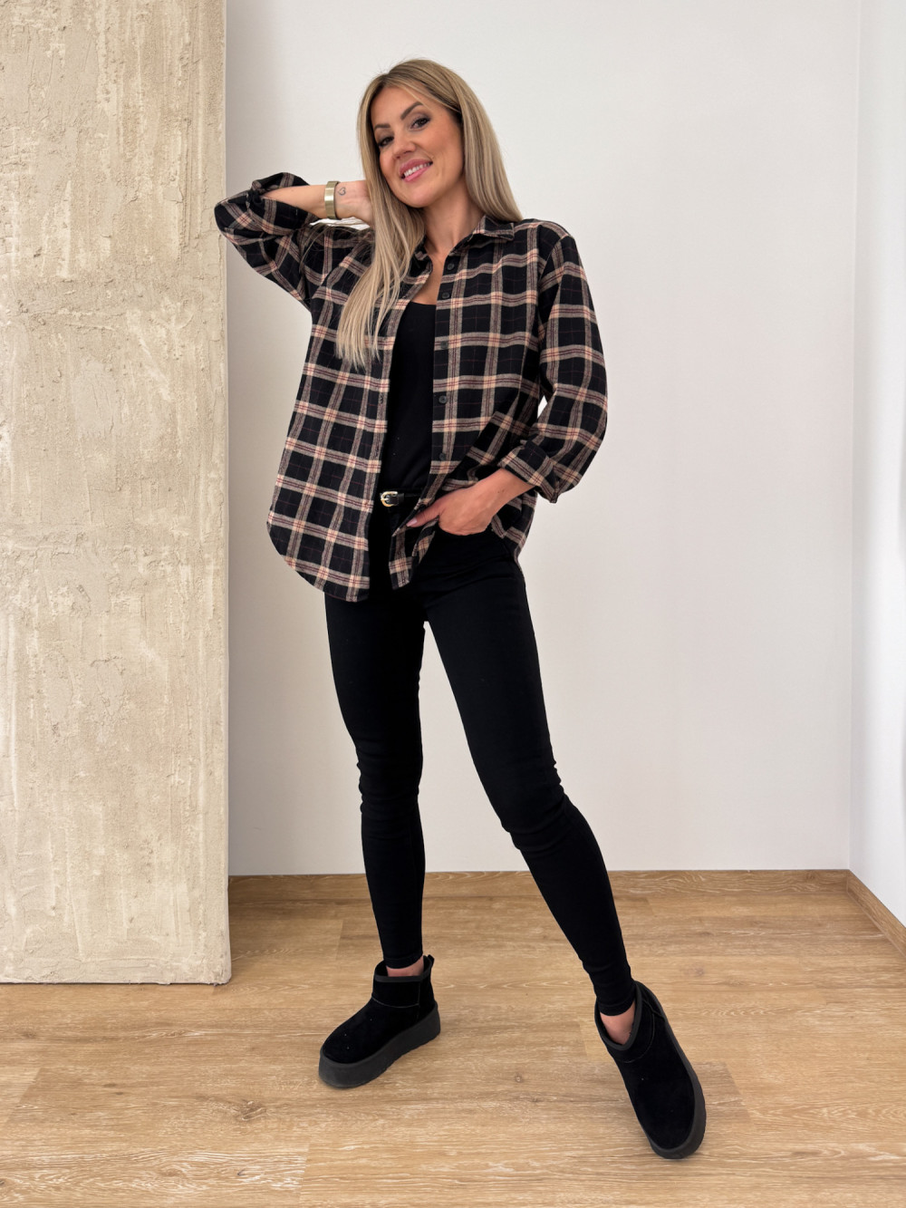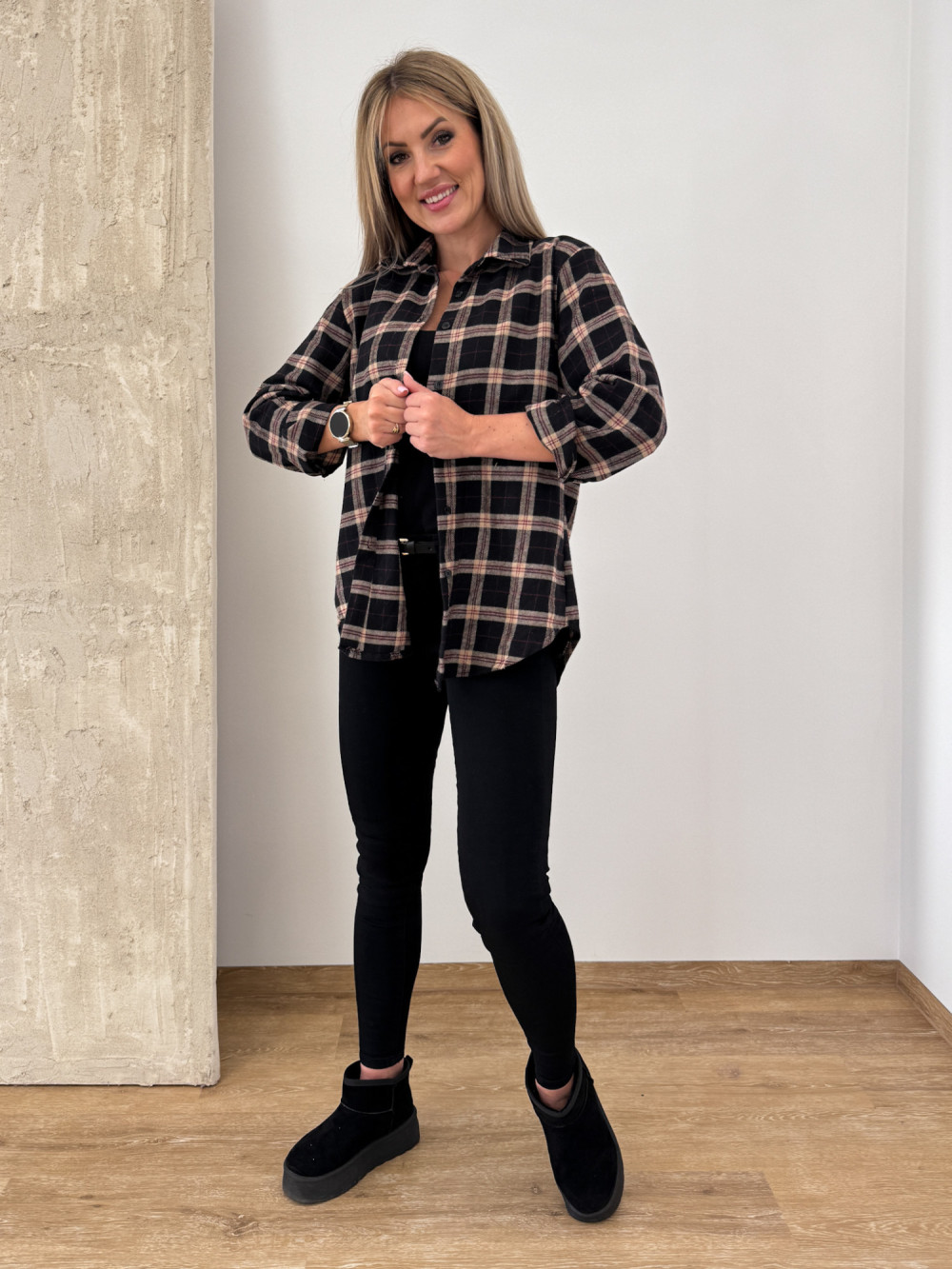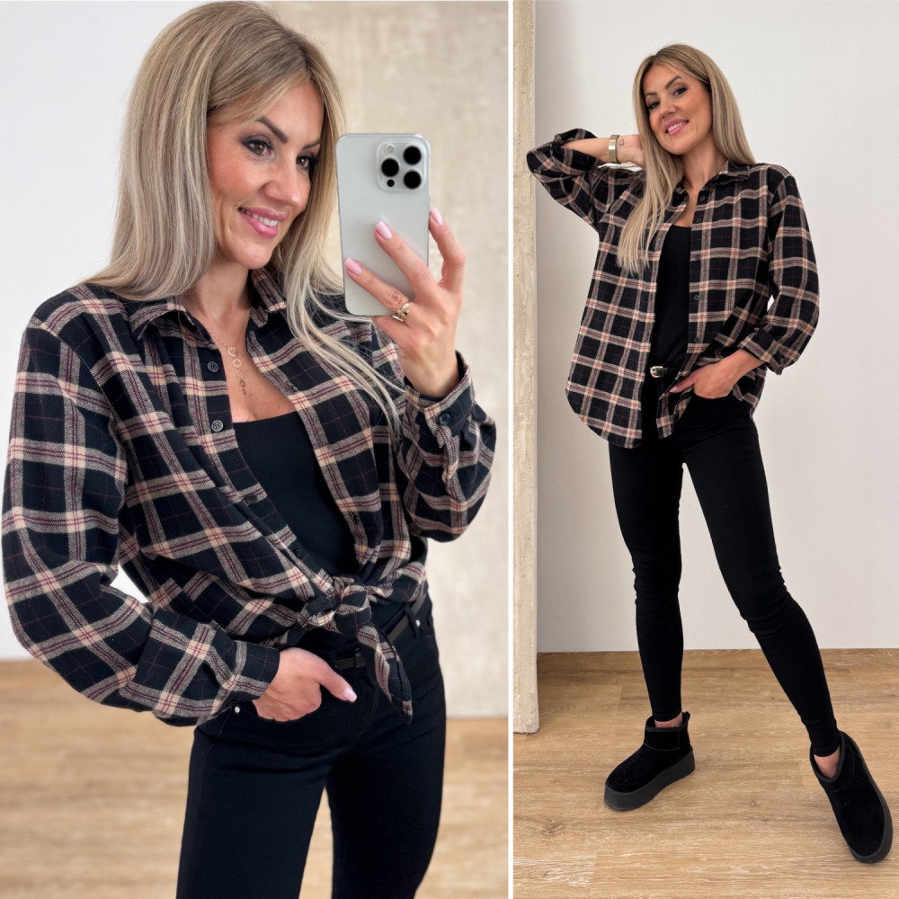 Koszula Flanelowa Torino - Czarna z Beżem Duża Krata