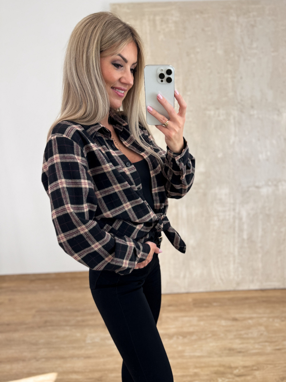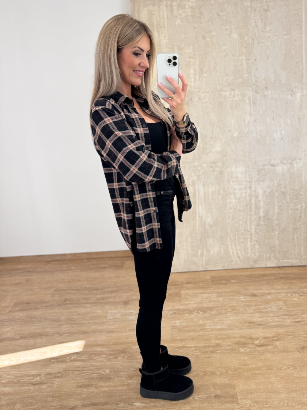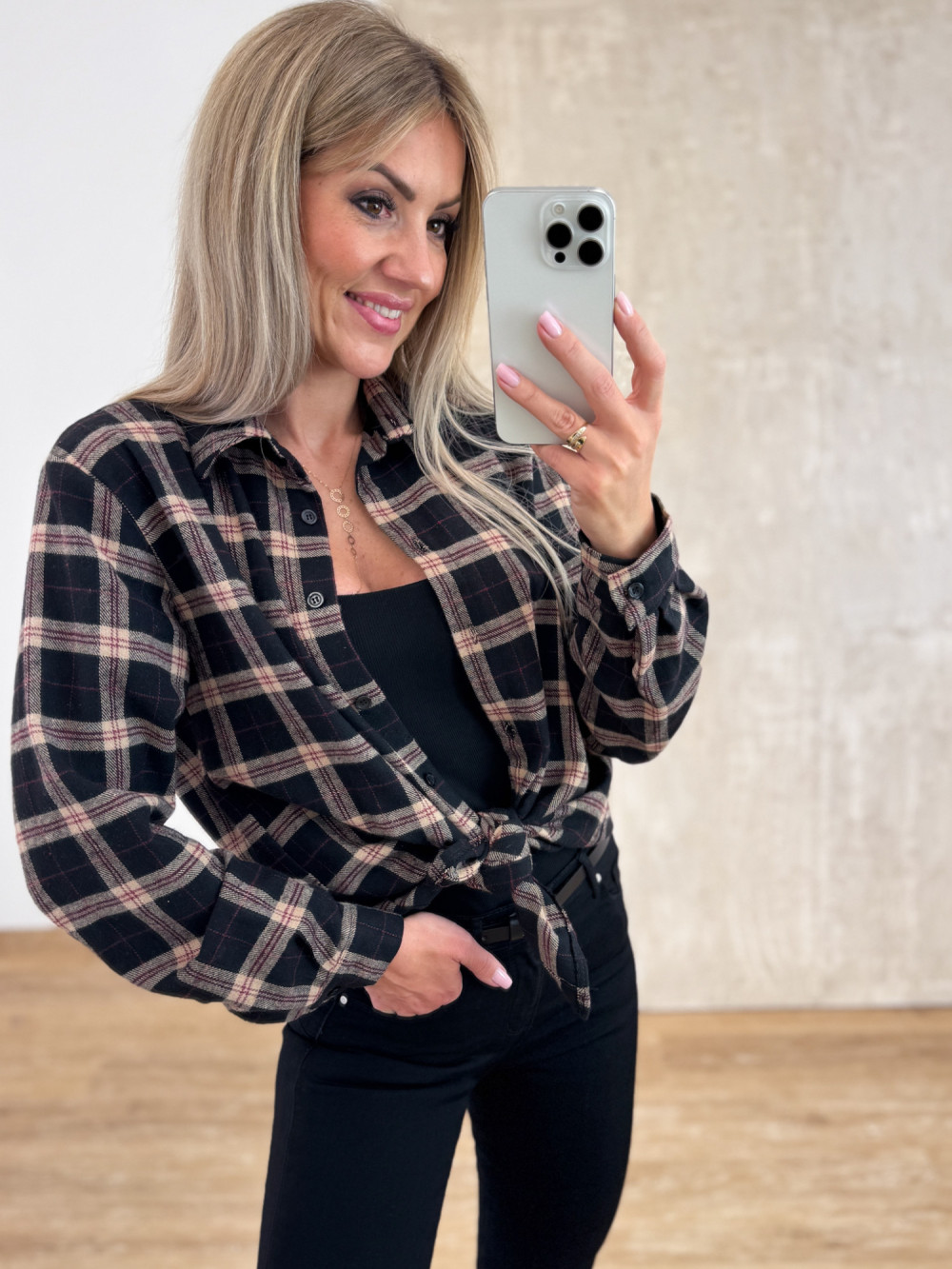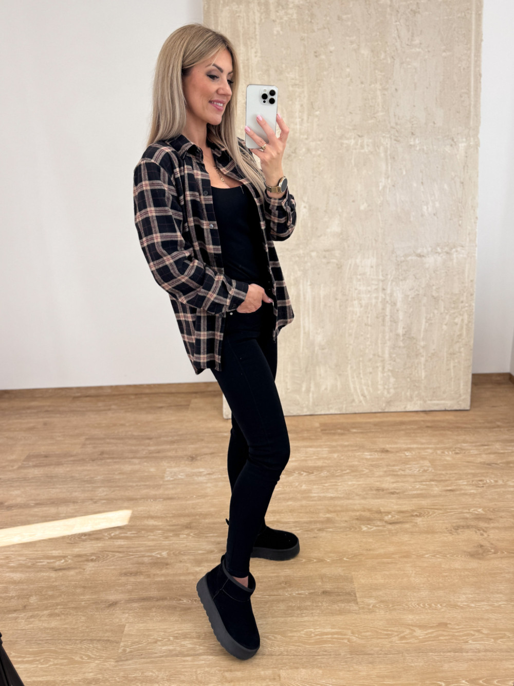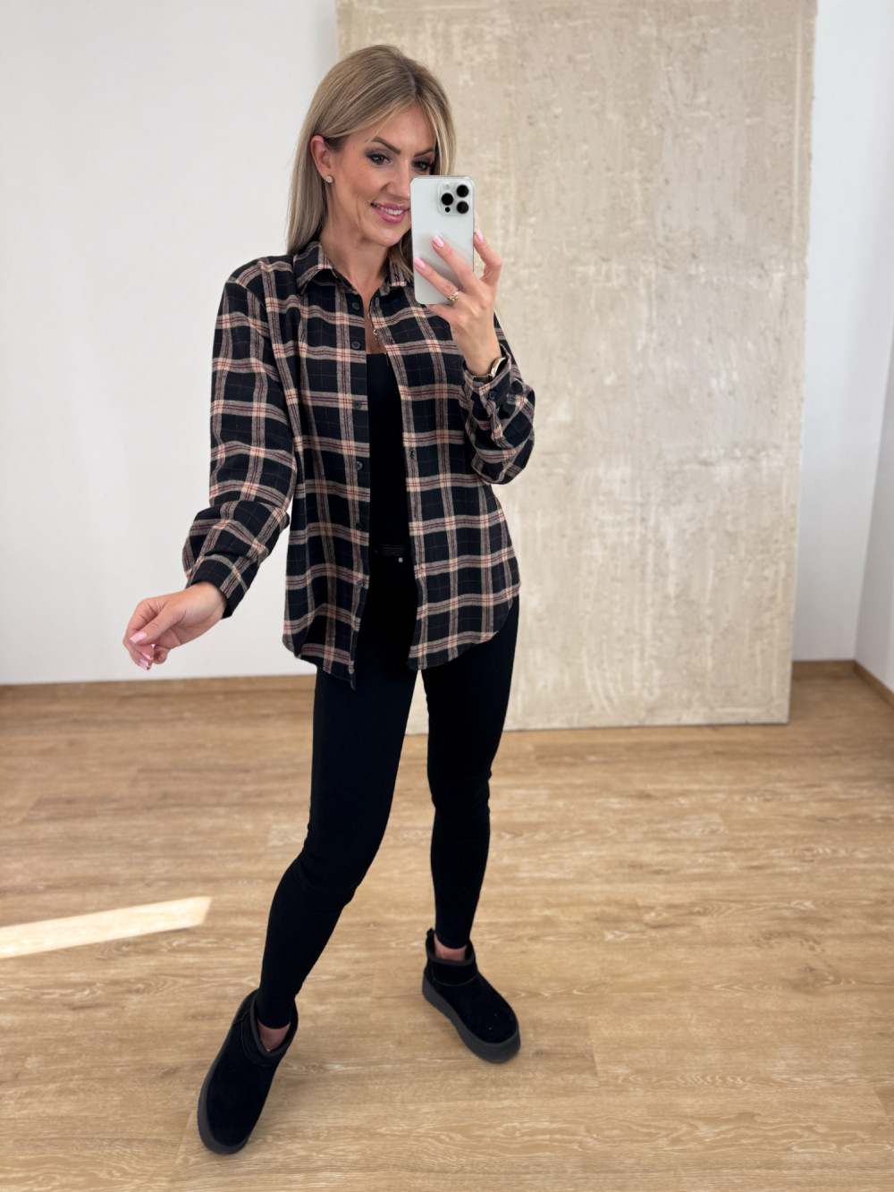 Koszula Flanelowa Torino - Czarna z Beżem Duża Krata