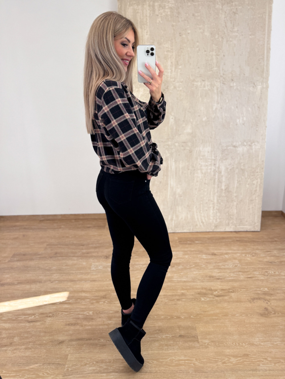 Wzór w kratę w jesiennych odcieniach nadaje jej wyjątkowego charakteru – dostępnych jest kilka wersji kolorystycznych, które idealnie wpisują się w sezonowe trendy. Świetnie komponuje się zarówno z jeansami i trampkami, jak i z elegancką spódnicą czy botkami.
