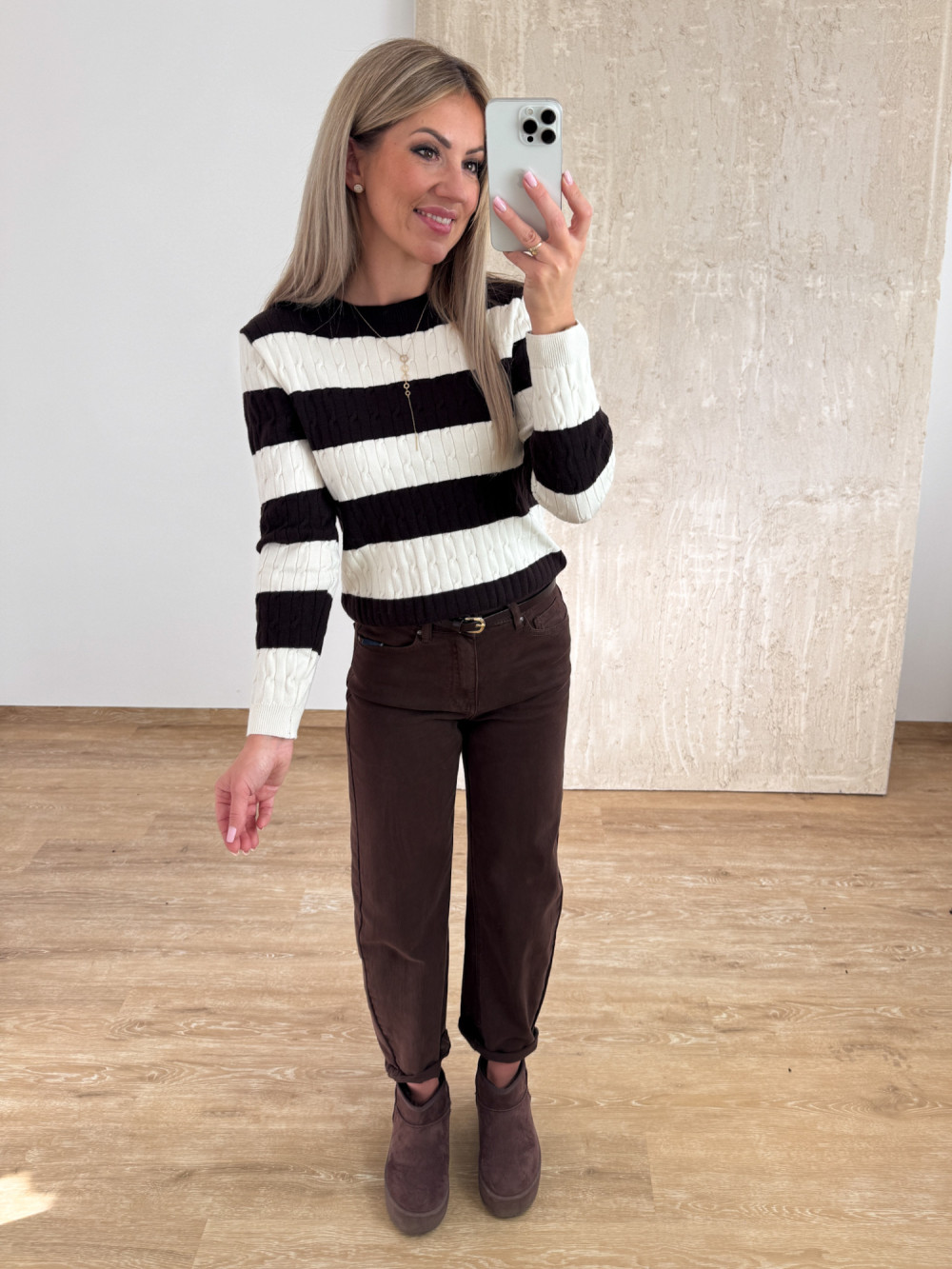 Sweterek w Pasy Verona - Czekolada Wanilia