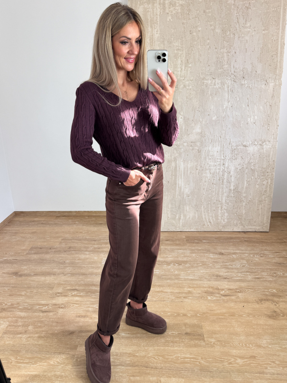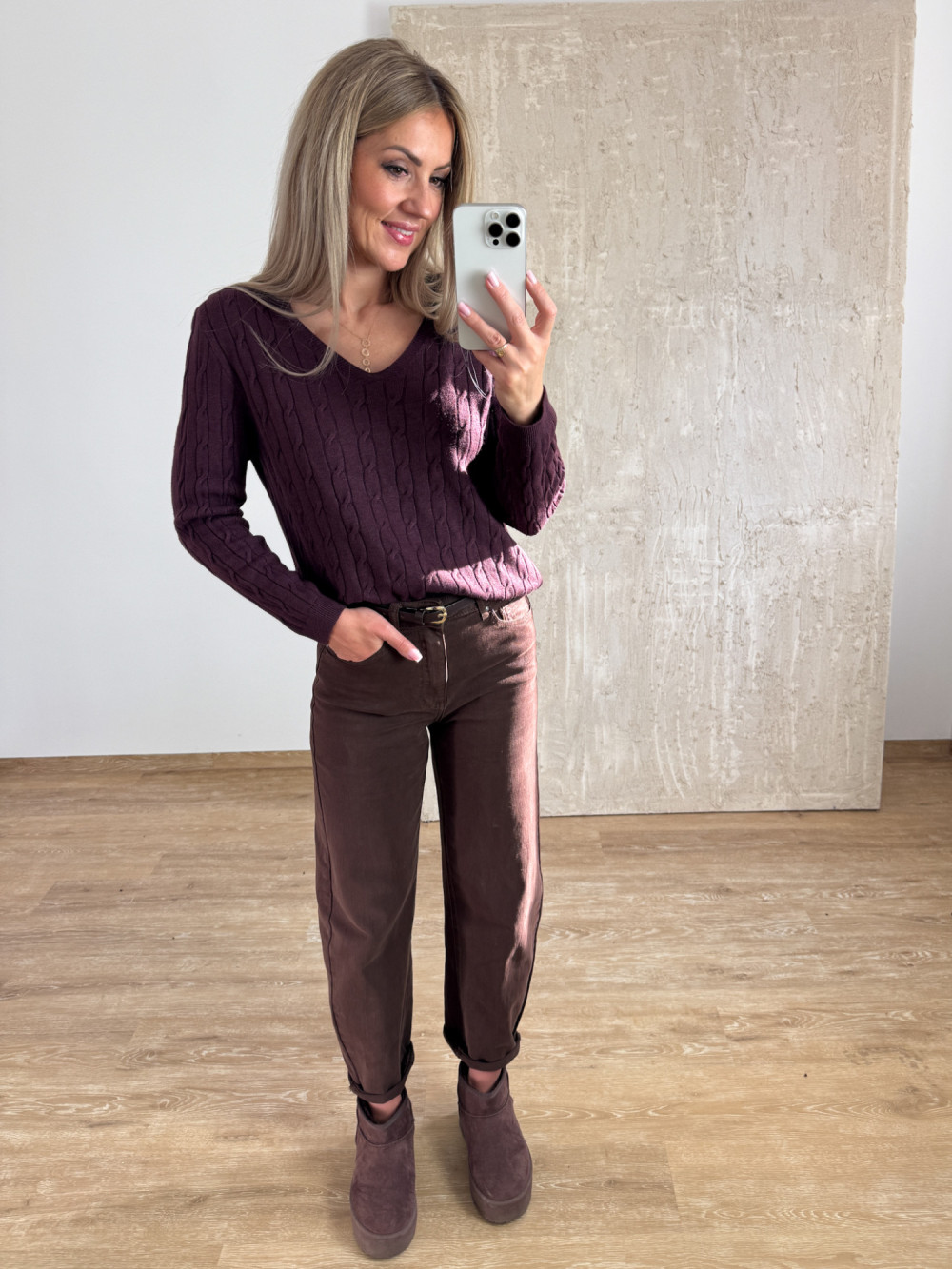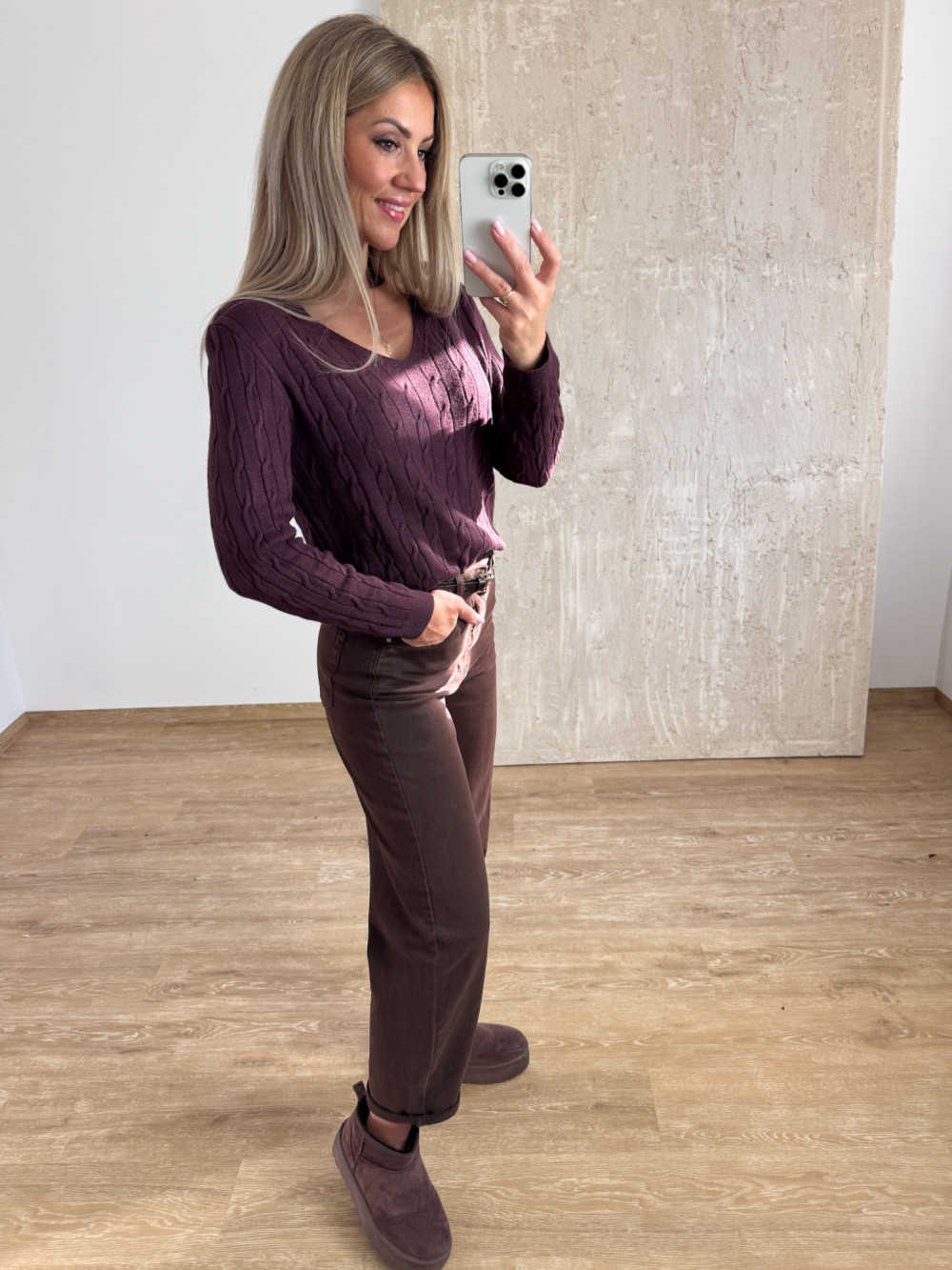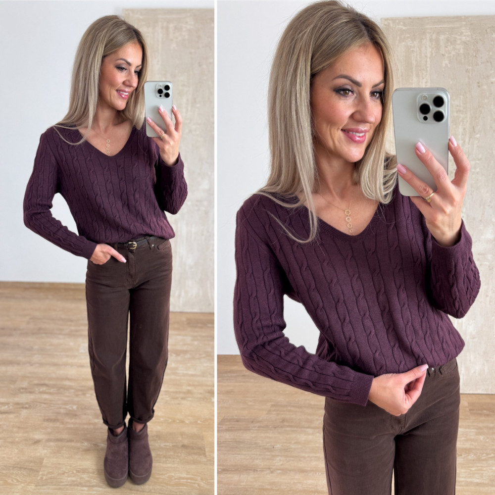 Sweter z Warkoczowym Splotem Vera - Śliwka