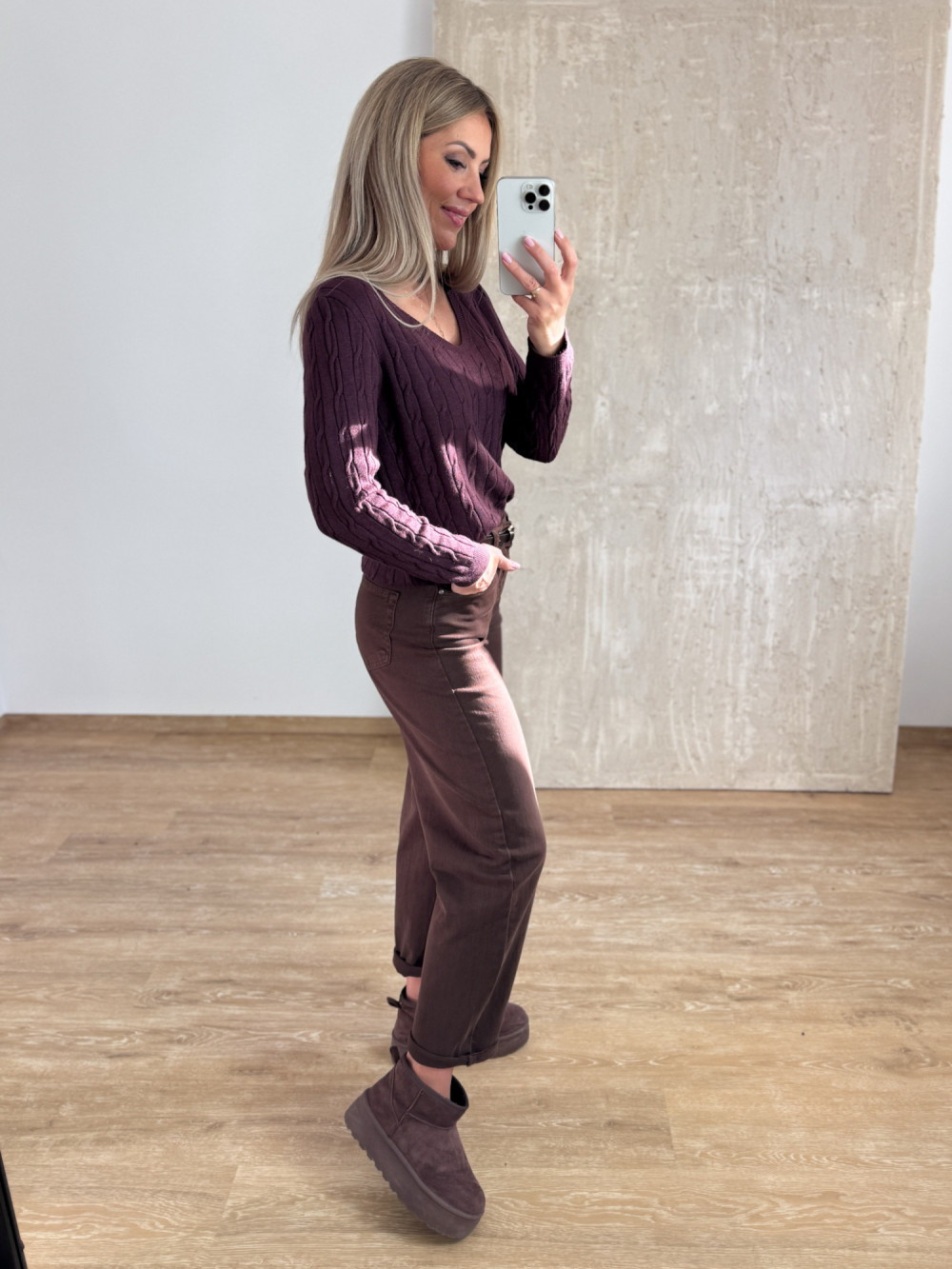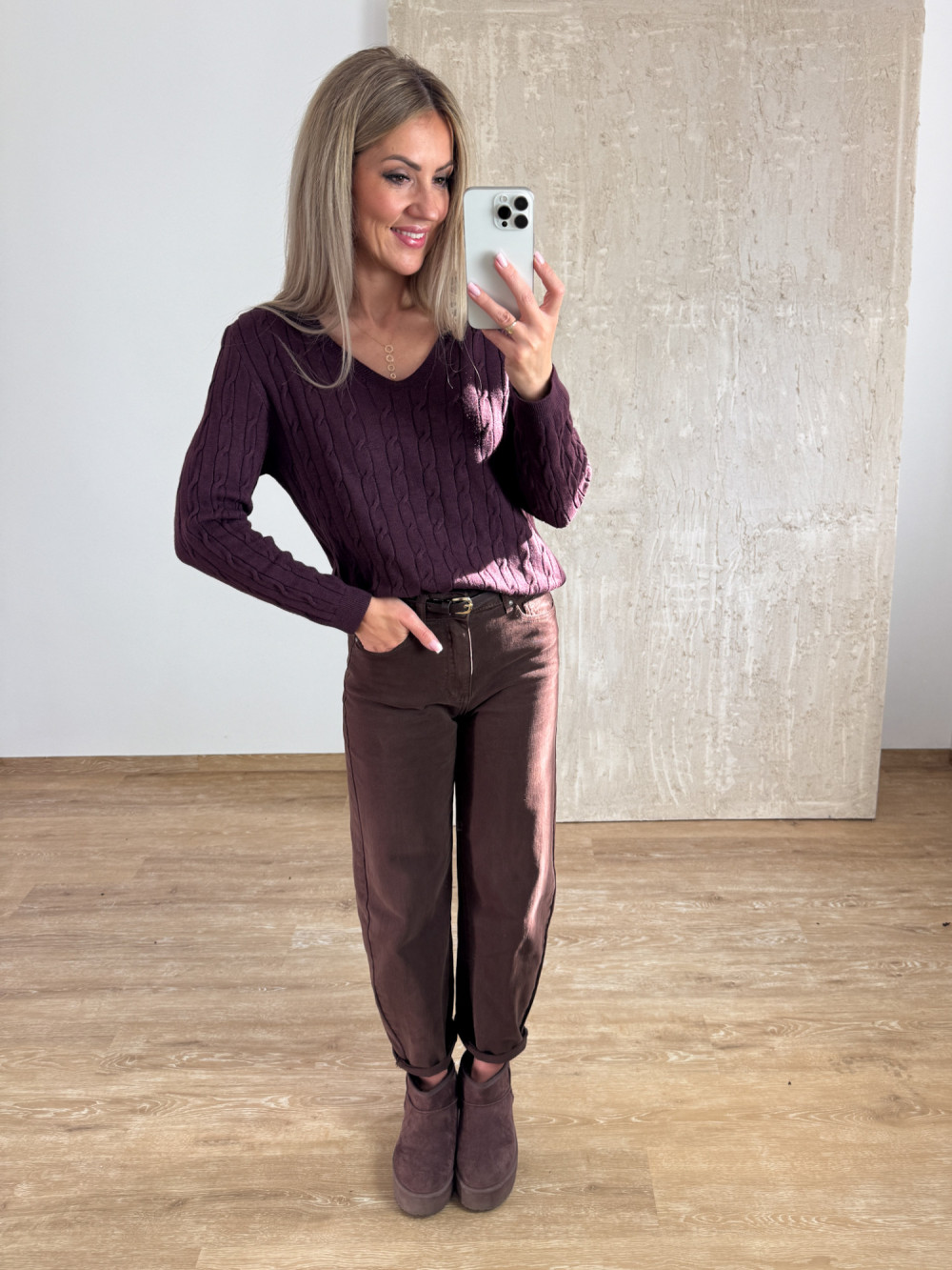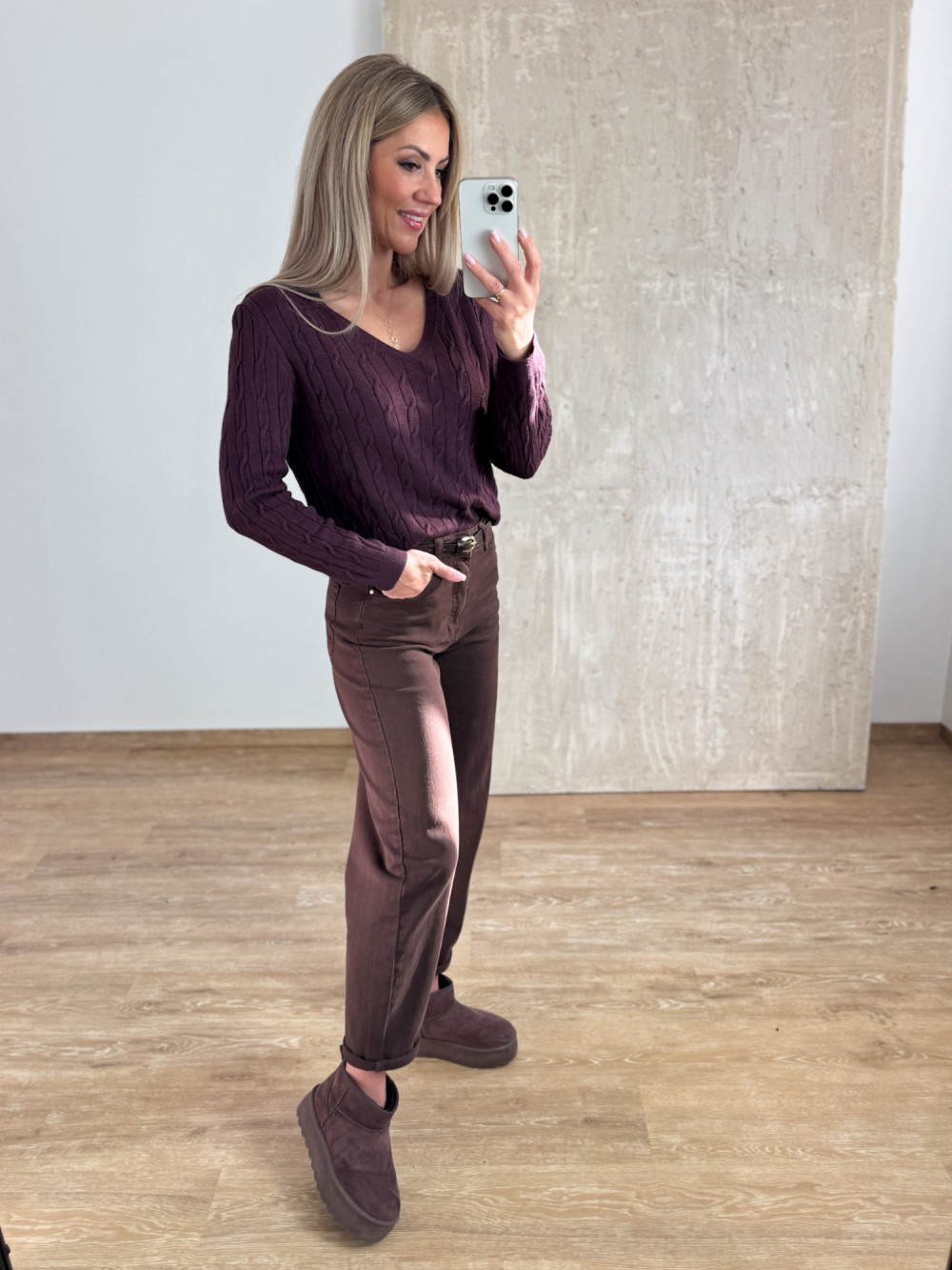 Sweter z Warkoczowym Splotem Vera - Śliwka