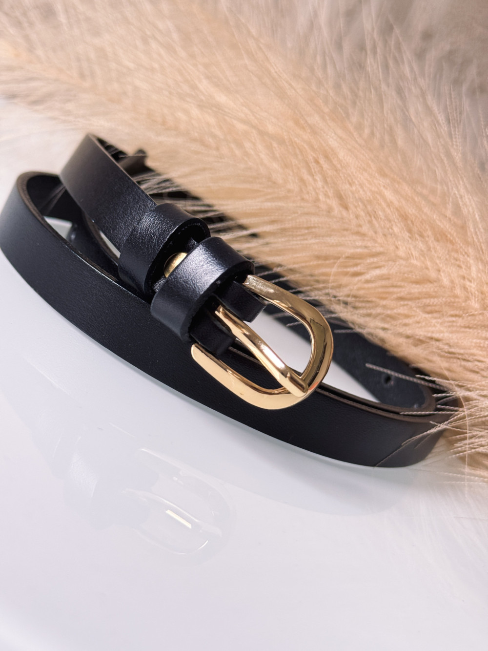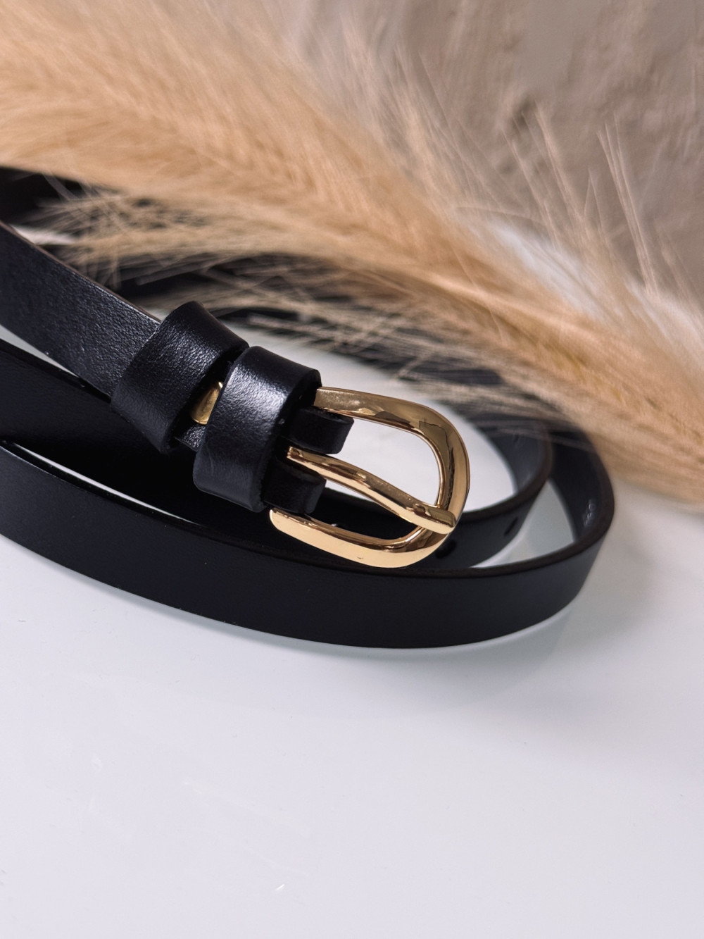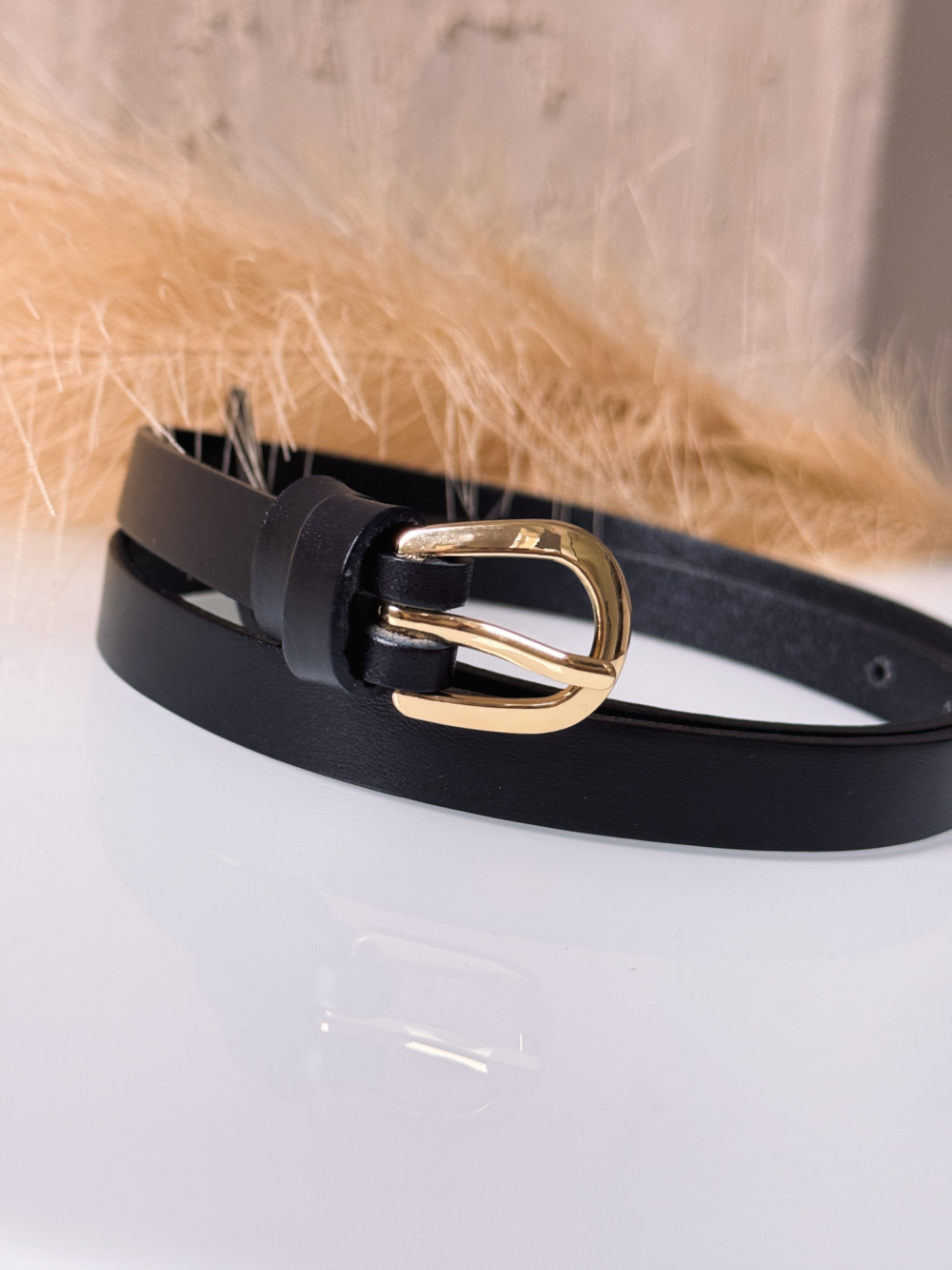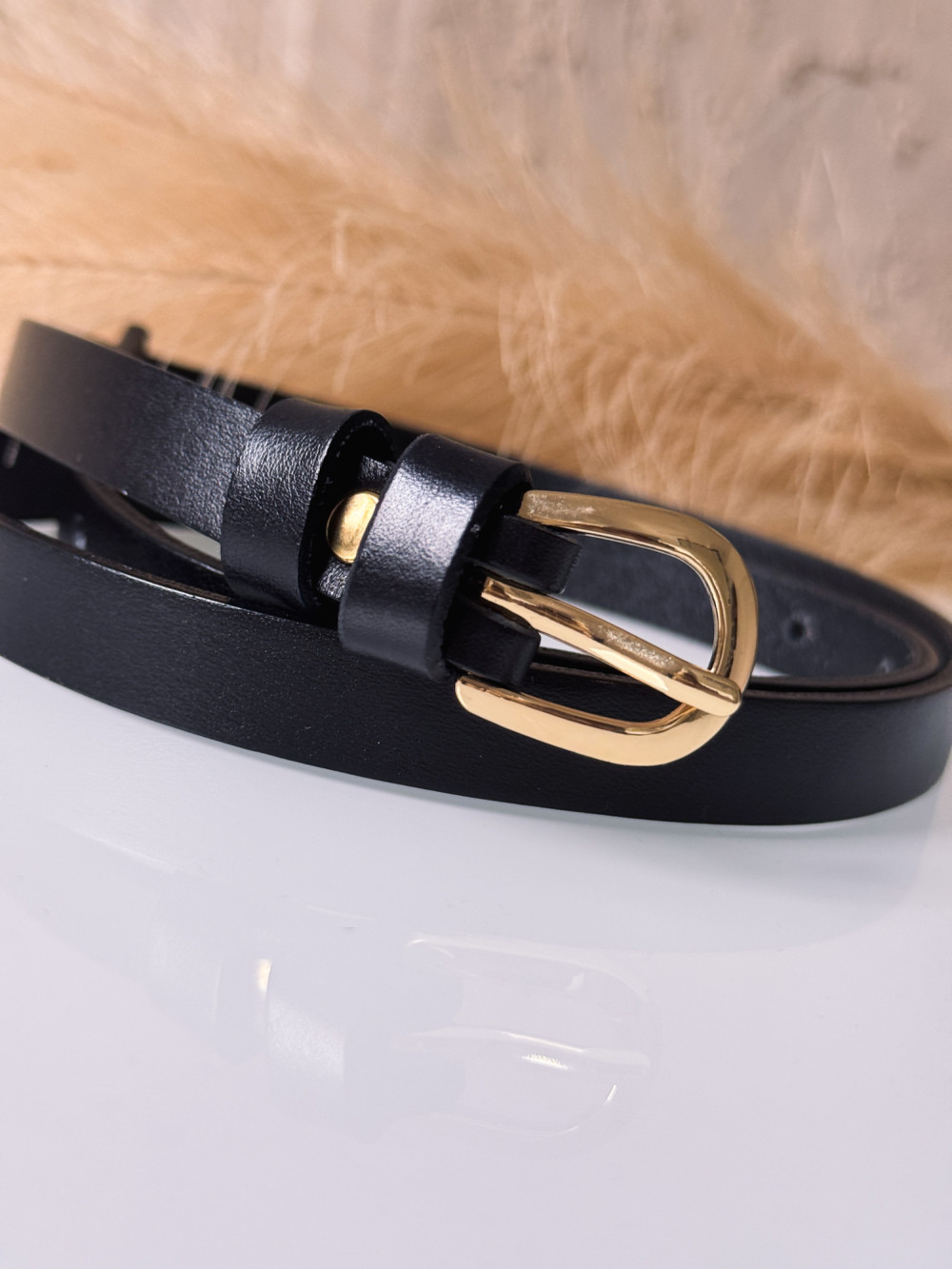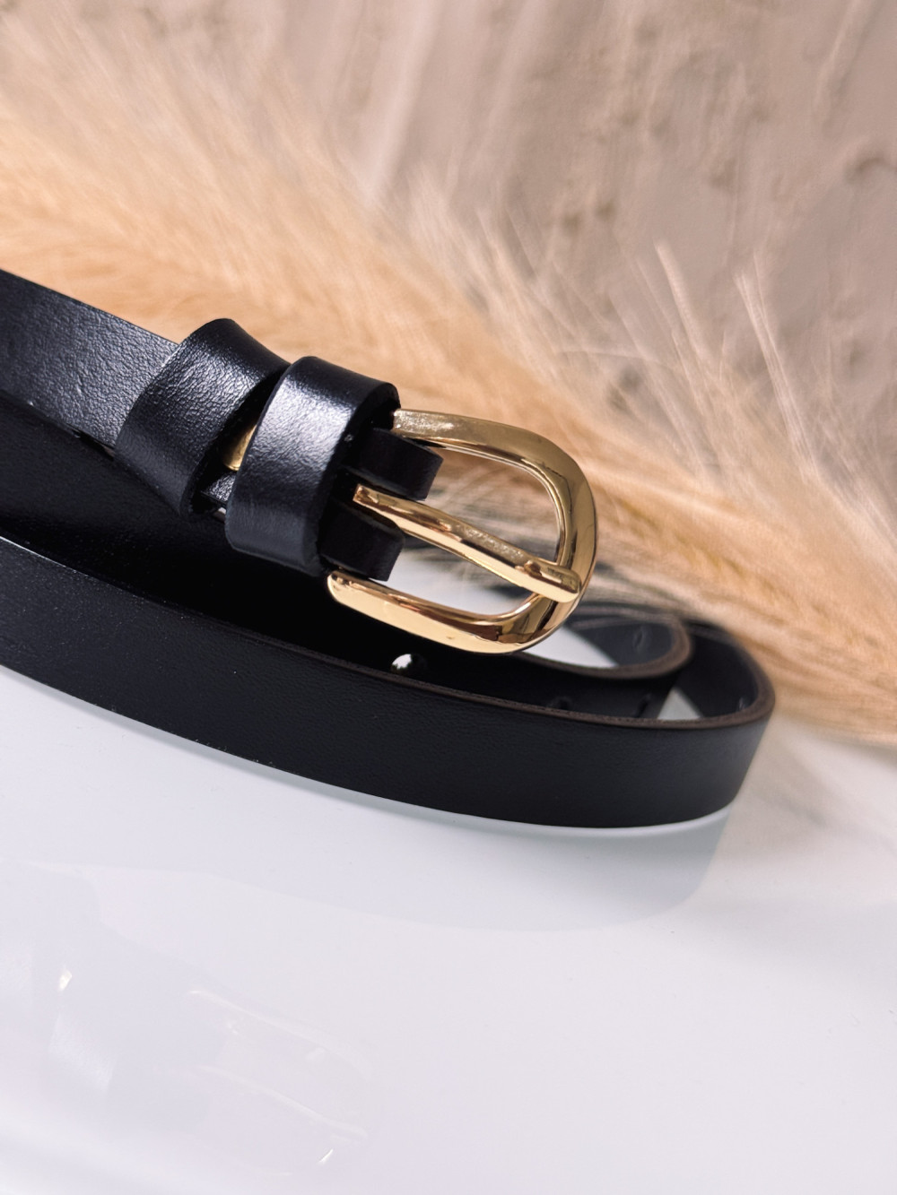 Pasek z Skóry Naturalnej z Złotą Klamrą - Czarny