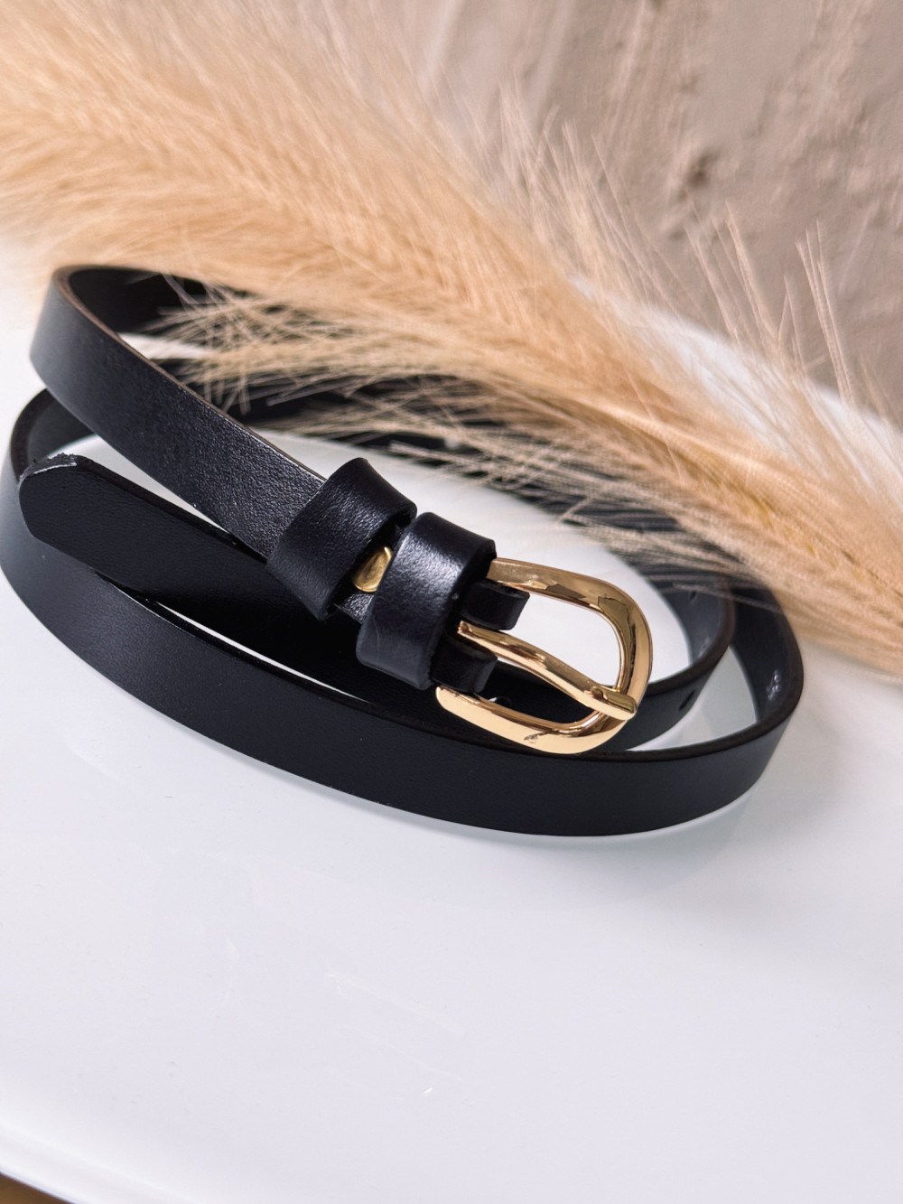 Elegancki cienki pasek ze skóry naturalnej w klasycznym designie.
