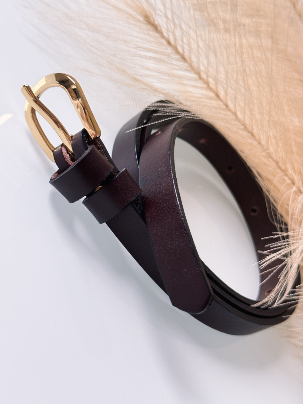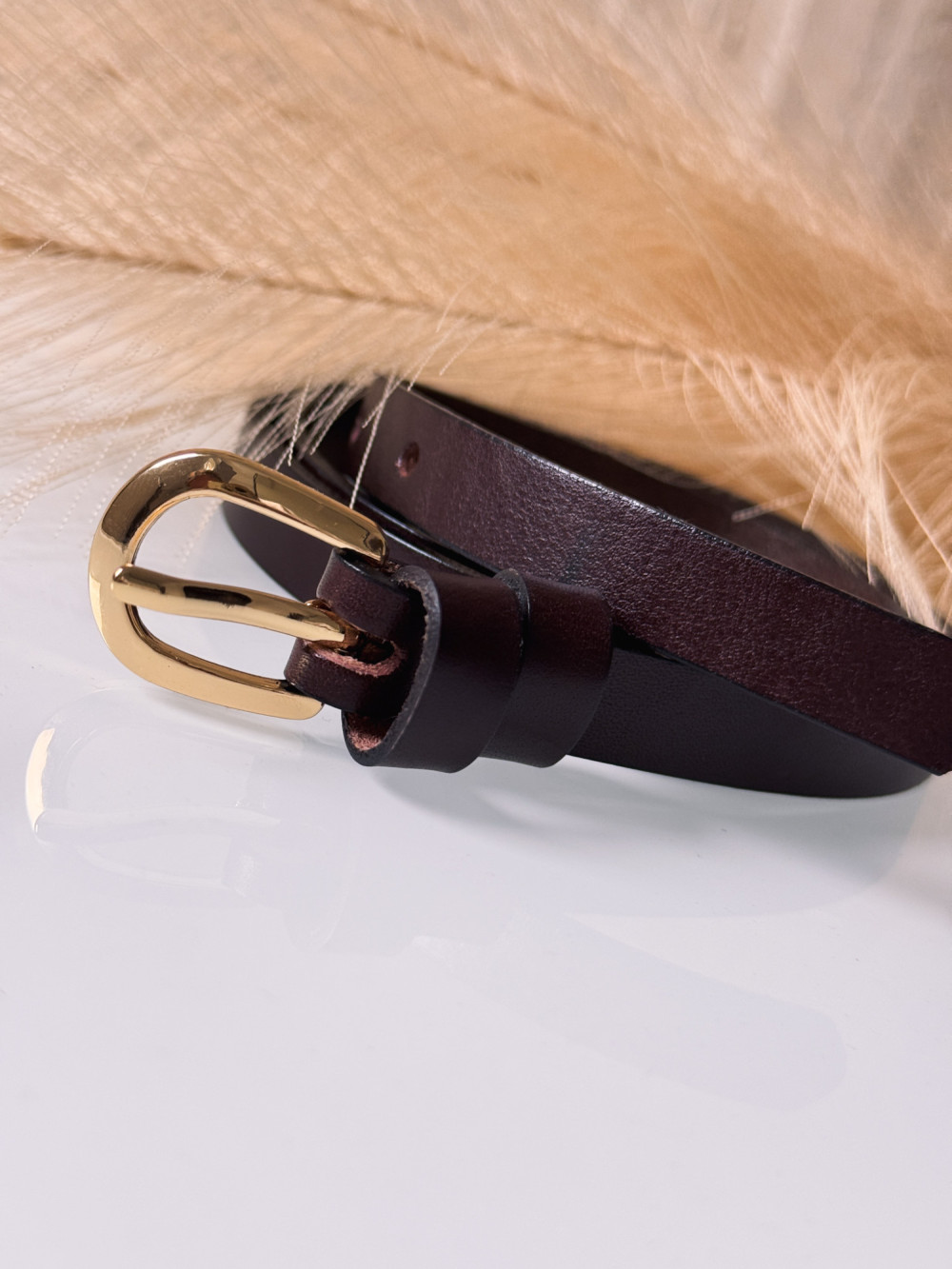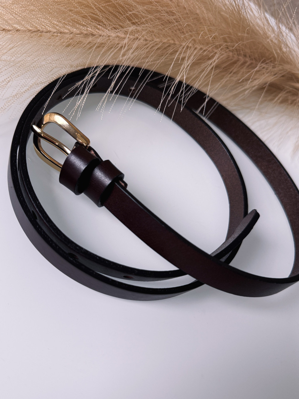 Elegancki cienki pasek ze skóry naturalnej w klasycznym designie.