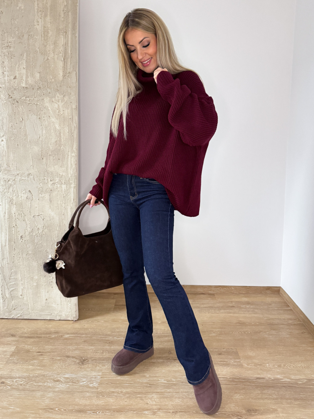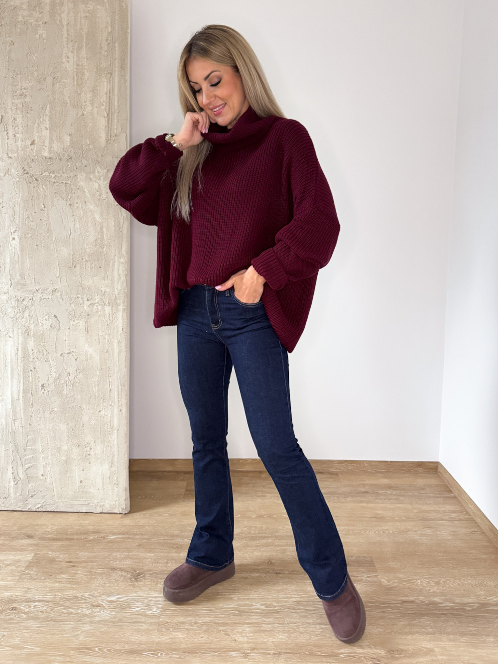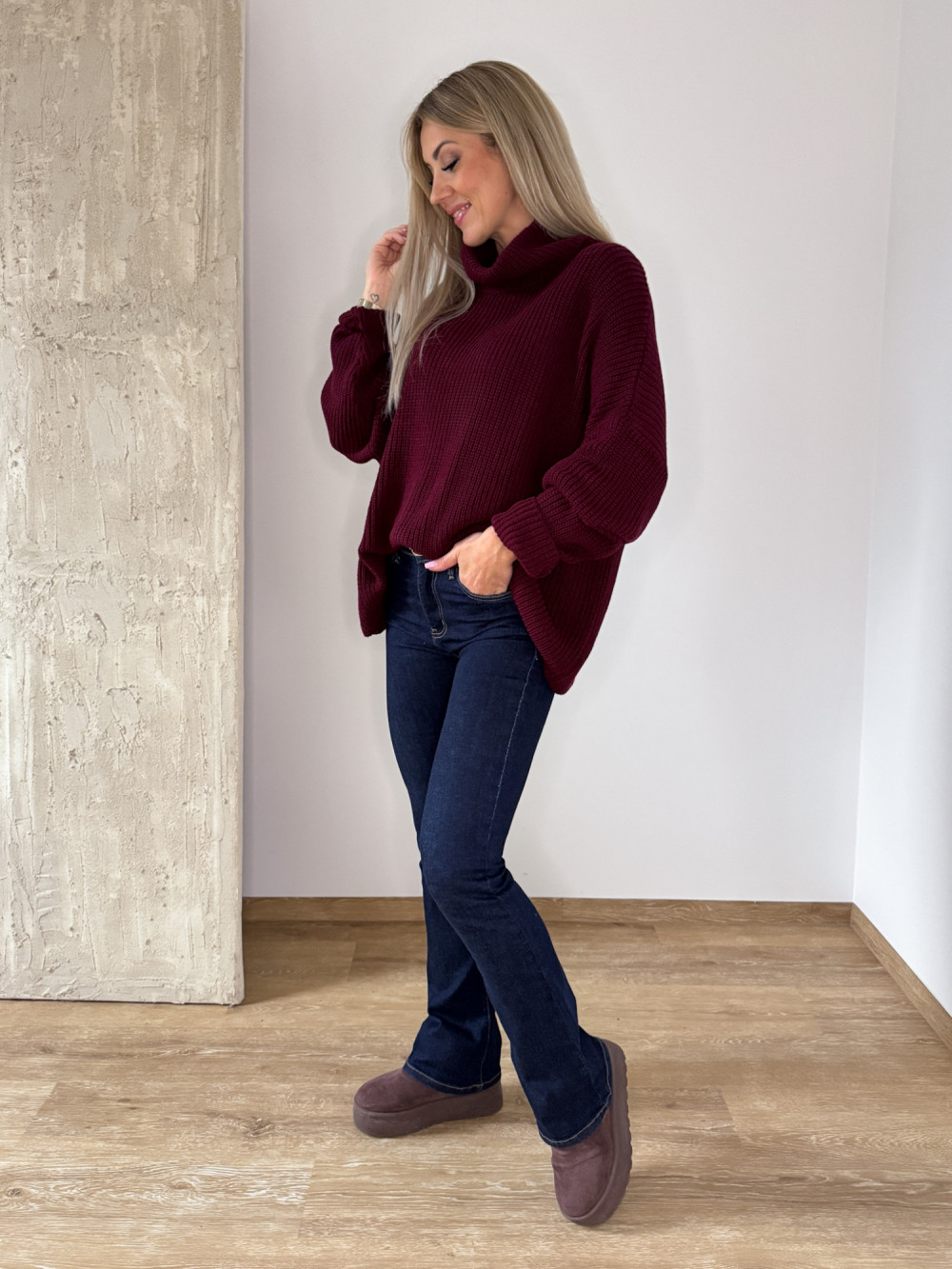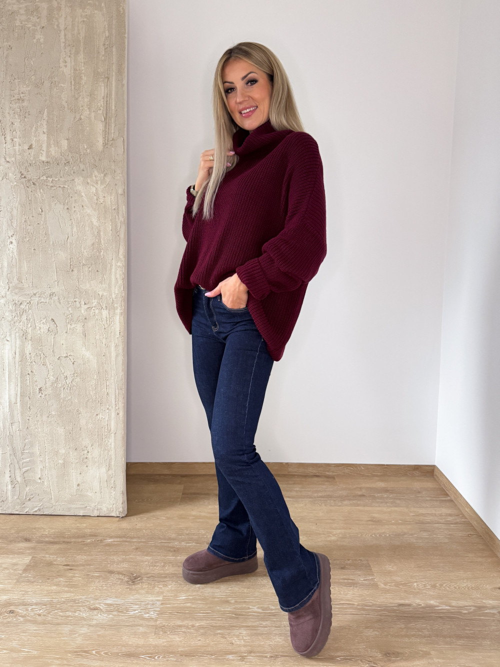 Sweter z Golfem Oversizowy Perfumowany Palio - Bordowy