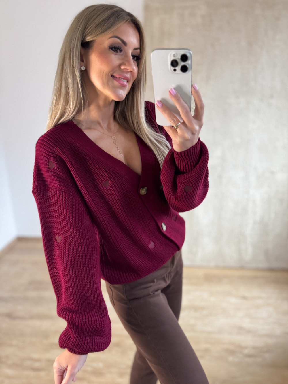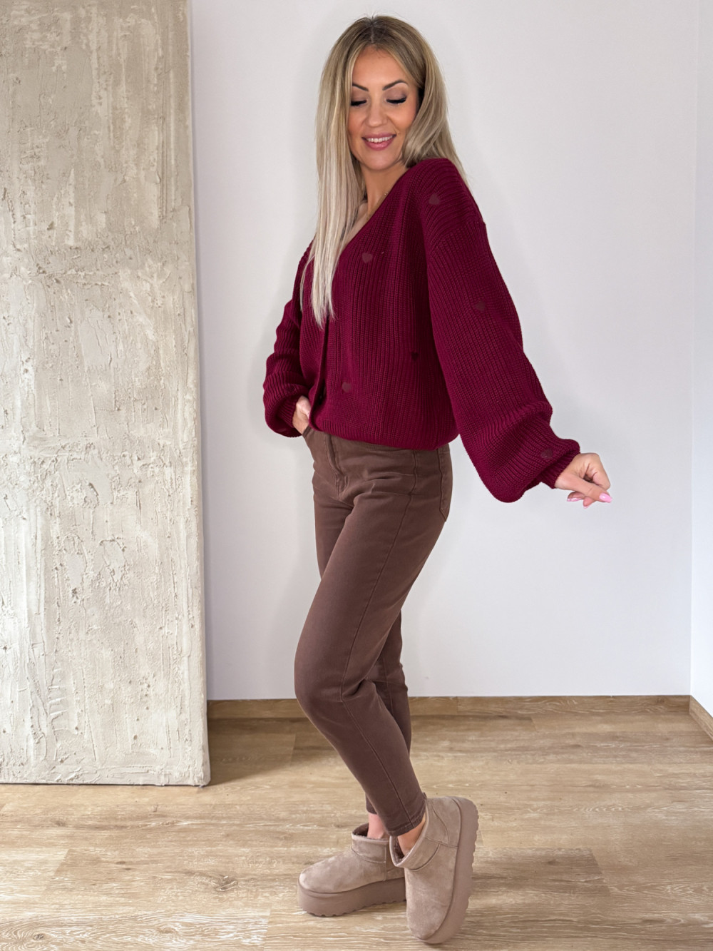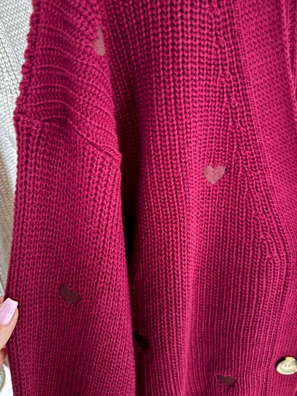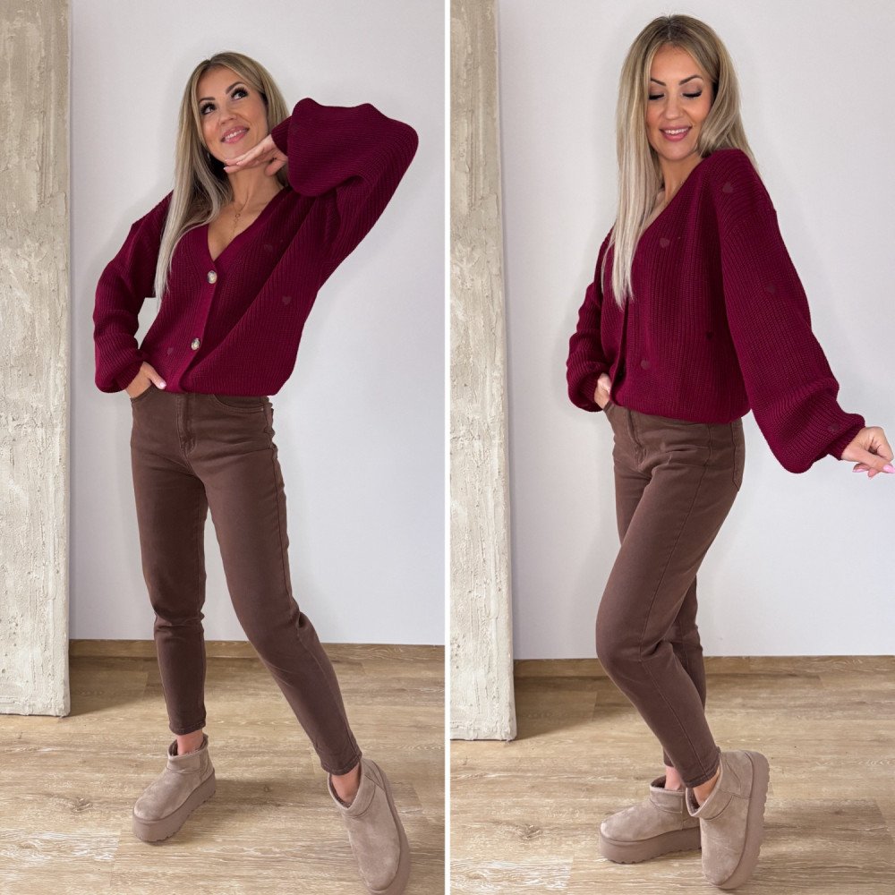 Sweter Rozpinany w Serduszka - Bordowy
