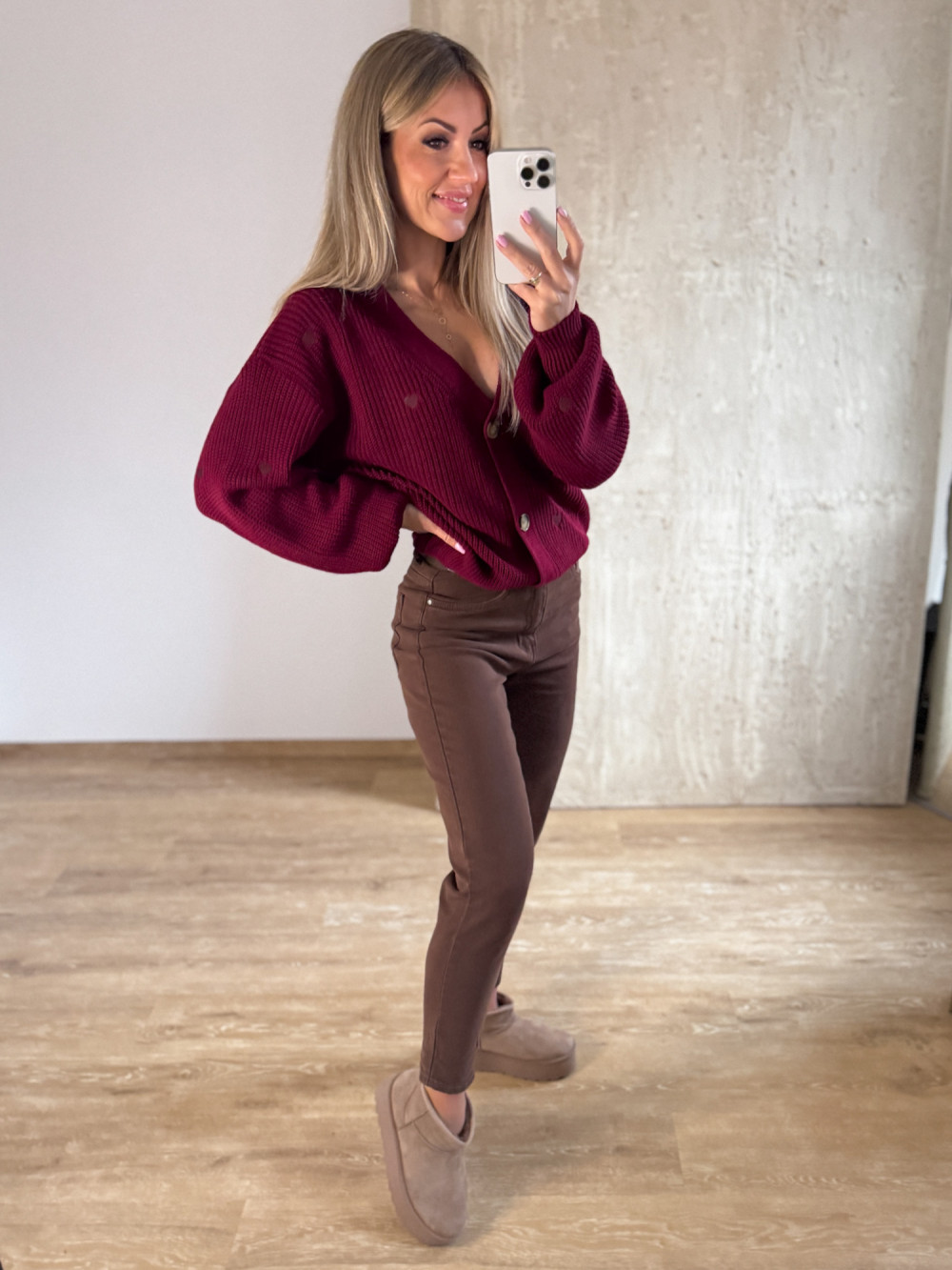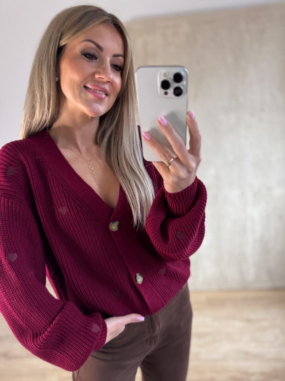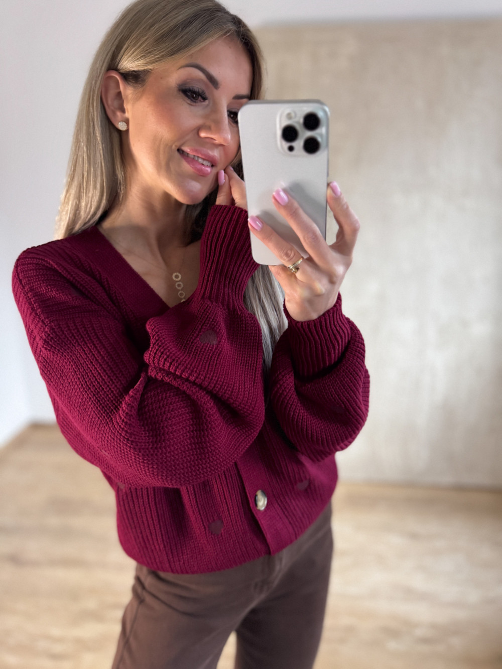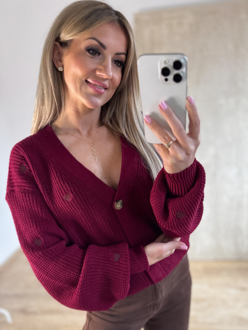 Sweter Rozpinany w Serduszka - Bordowy