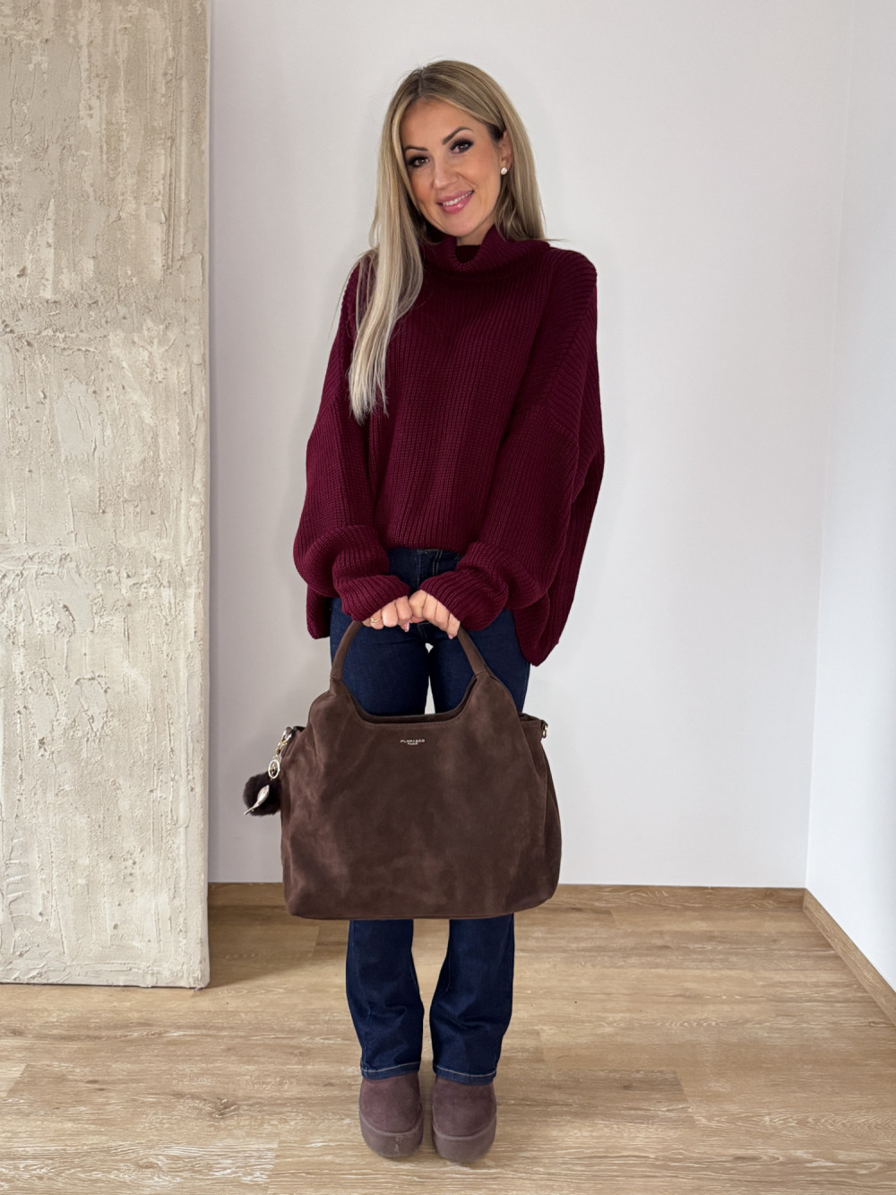 Stylowa i praktyczna torebka wykonana z wysokiej jakości zamszowej skóry ekologicznej. Posiada dwa uchwyty – krótki do noszenia w dłoni oraz dłuższy, który zapewnia wygodę w każdej sytuacji. Całość zamykana na suwak, co gwarantuje bezpieczeństwo i komfort użytkowania. To model, który sprawdzi się zarówno na co dzień, jak i w bardziej eleganckich stylizacjach.