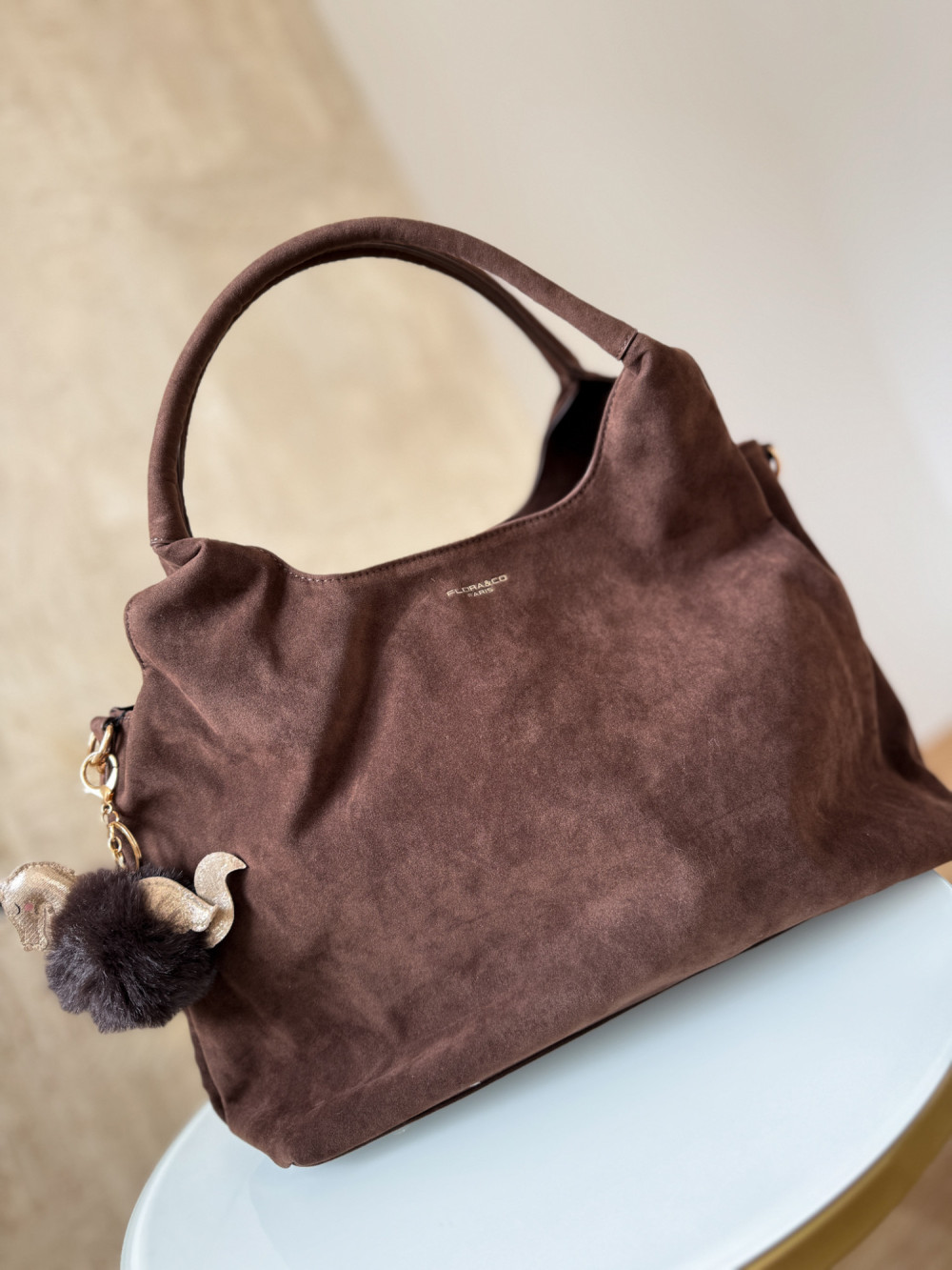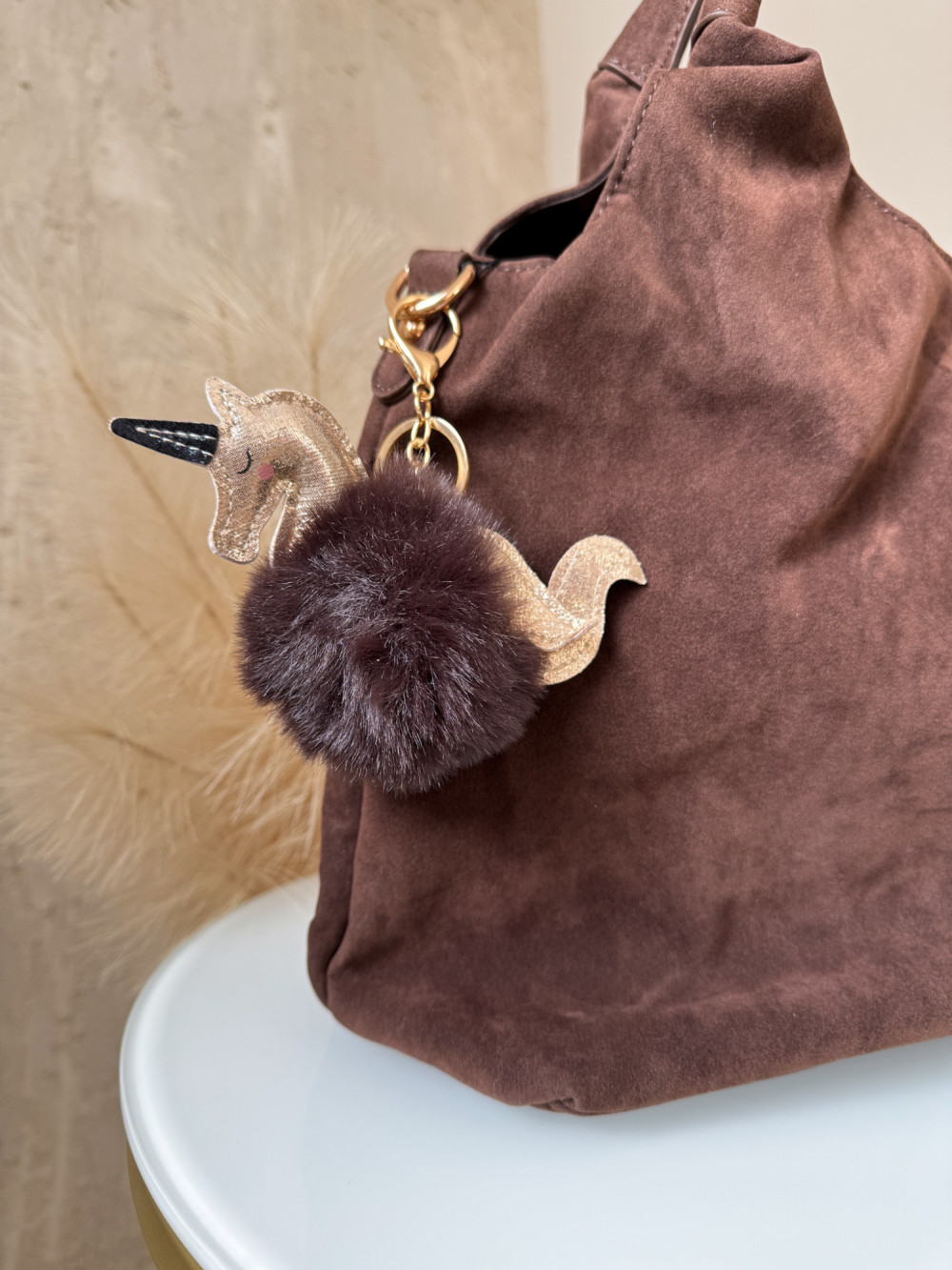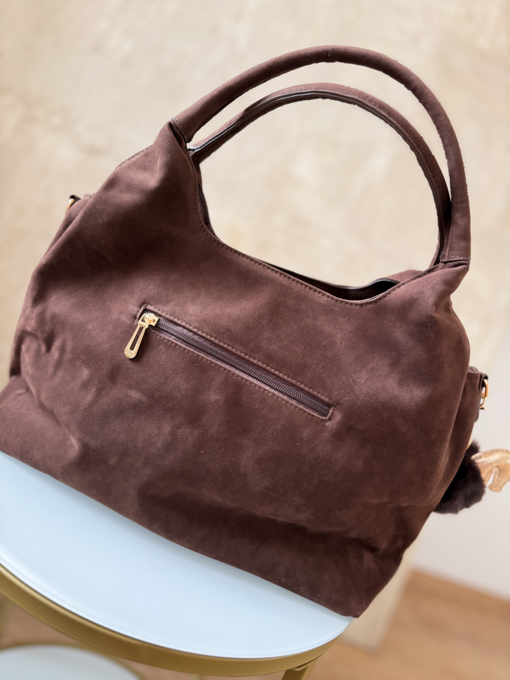 Torebka Zamszowa z Ozdobnym Breloczkiem - Czekoladowa