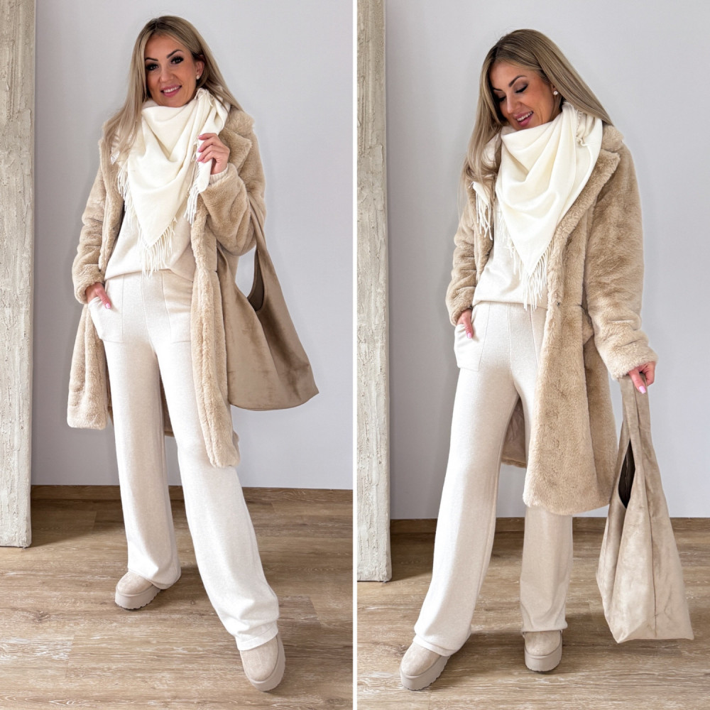 Gładka chusta wykonana z wysokiej jakości tkaniny doskonale sprawdzi się na chłodniejsze dni. Model z dłuższymi frędzelkami na zakończeniach materiału idealnie sprawdzi się w wielu stylizacjach.