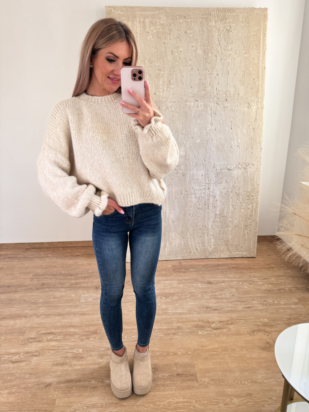 ️ Gumka u dołu – sweter ładnie układa się na sylwetce