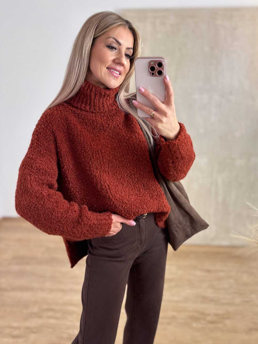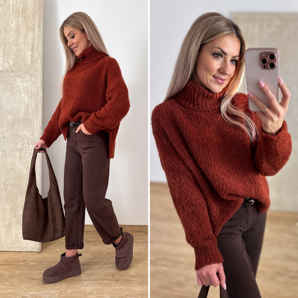 Sweter z Golfem Bukla Amareno - Rudy / Ceglasty
