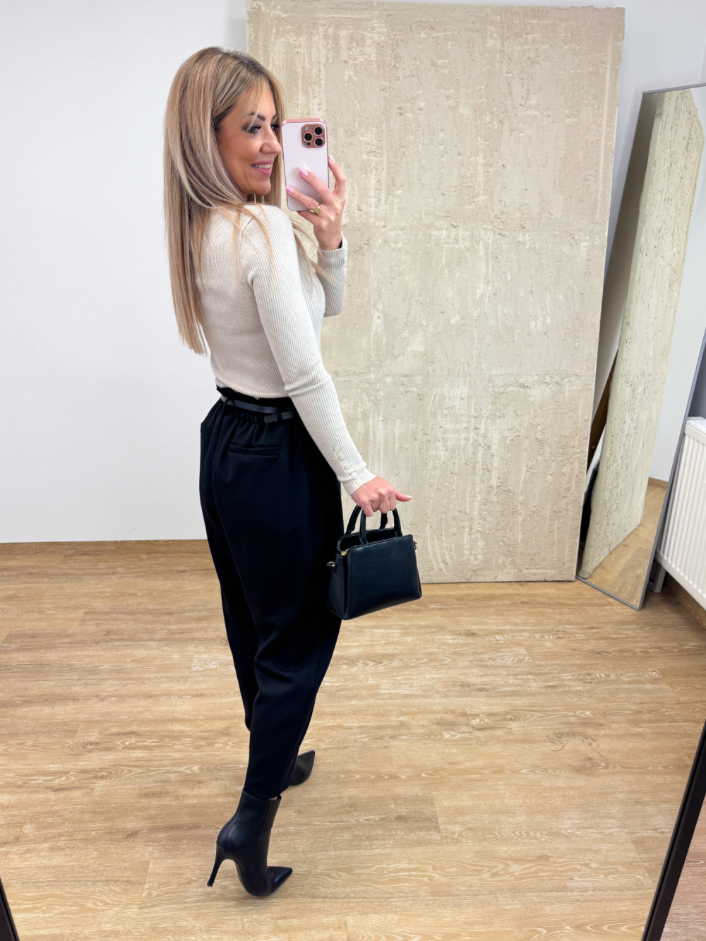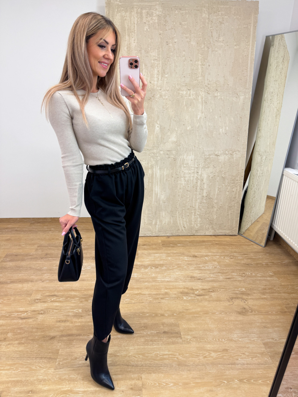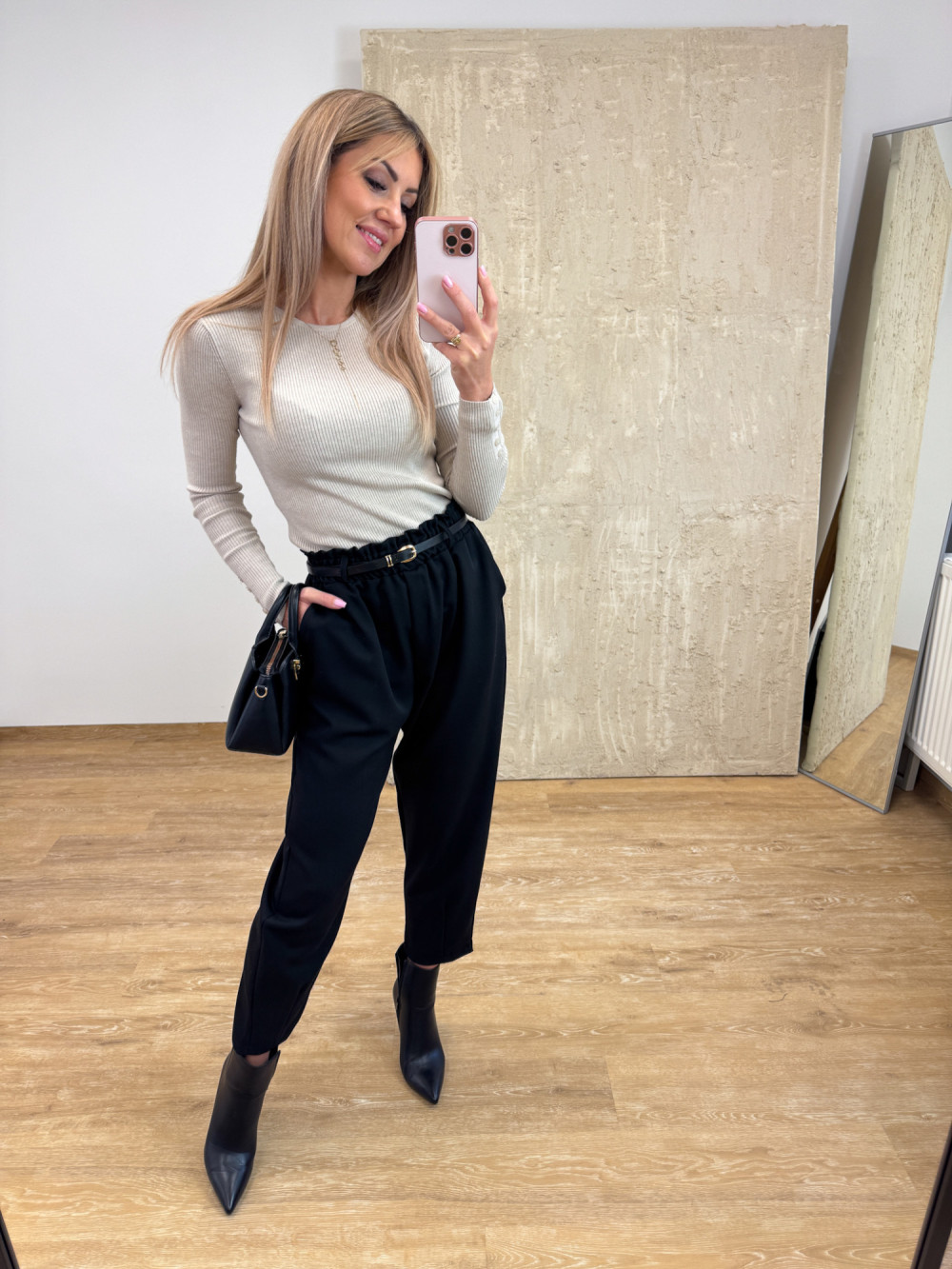 Spodnie Materiałowe w kroju Balloon z Paskiem - Czarne