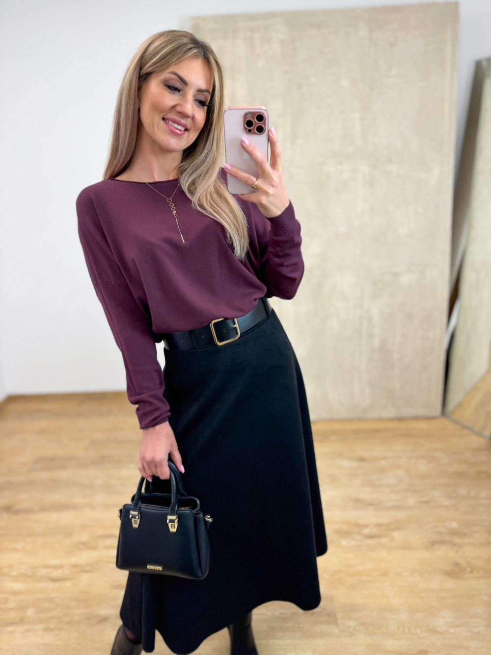 Oversizowa bluzka dzianinowa - delikatny sweterek. Model ten będzie Twoim produktem bazowym do wielu stylizacji, czy to z jeansami czy spódnicą, będzie prezentować się perfekcyjnie.