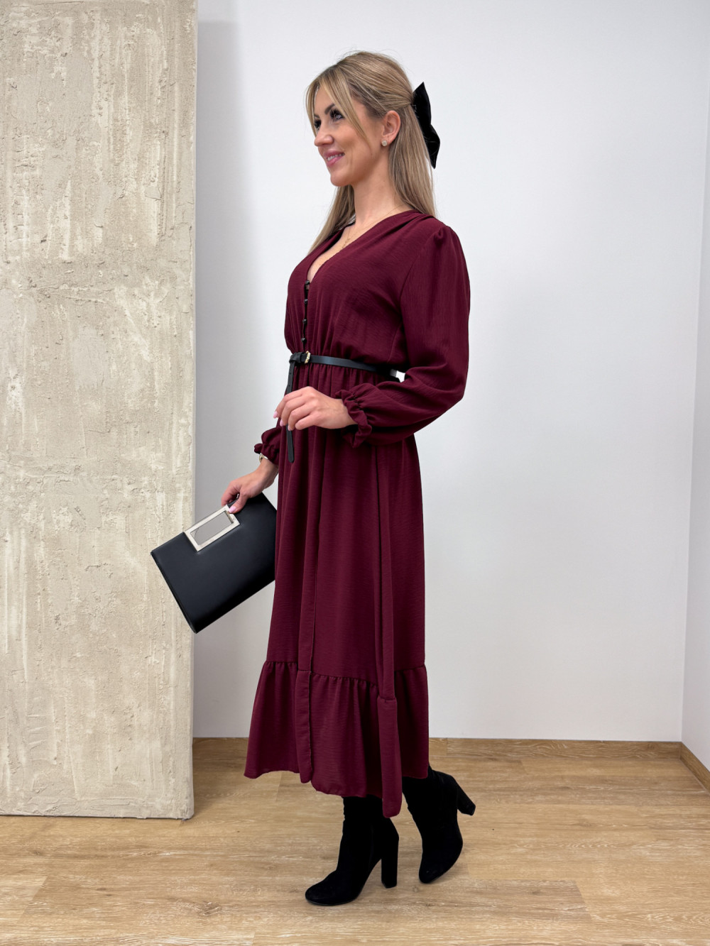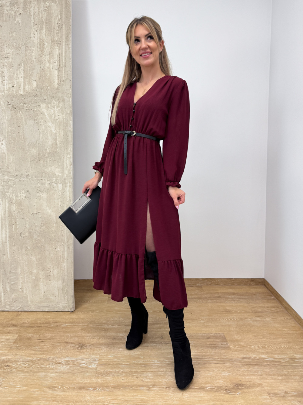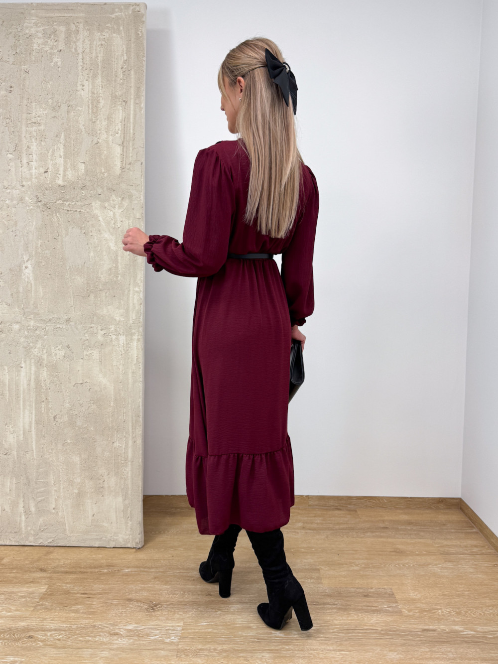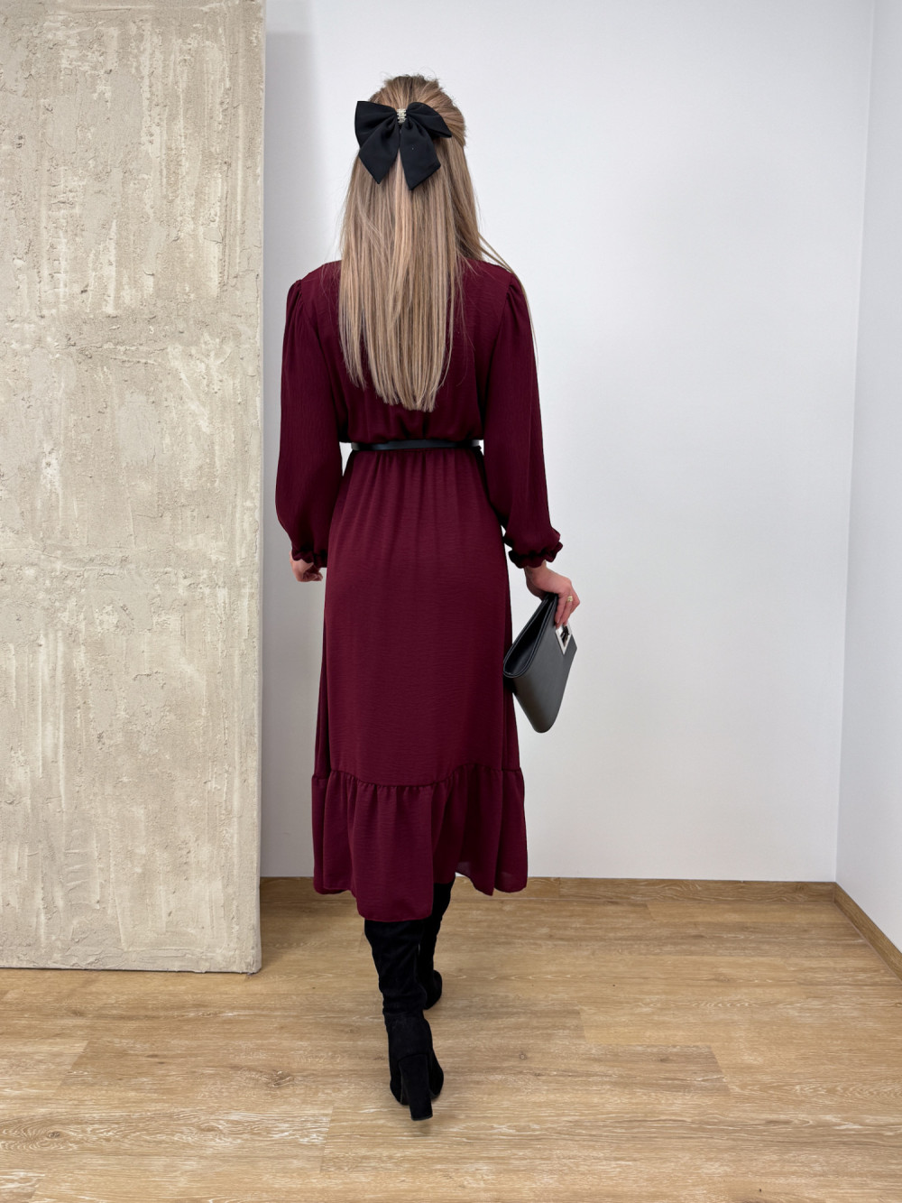 Sukienka z Długim Rękawem Midi Laura - Burgund