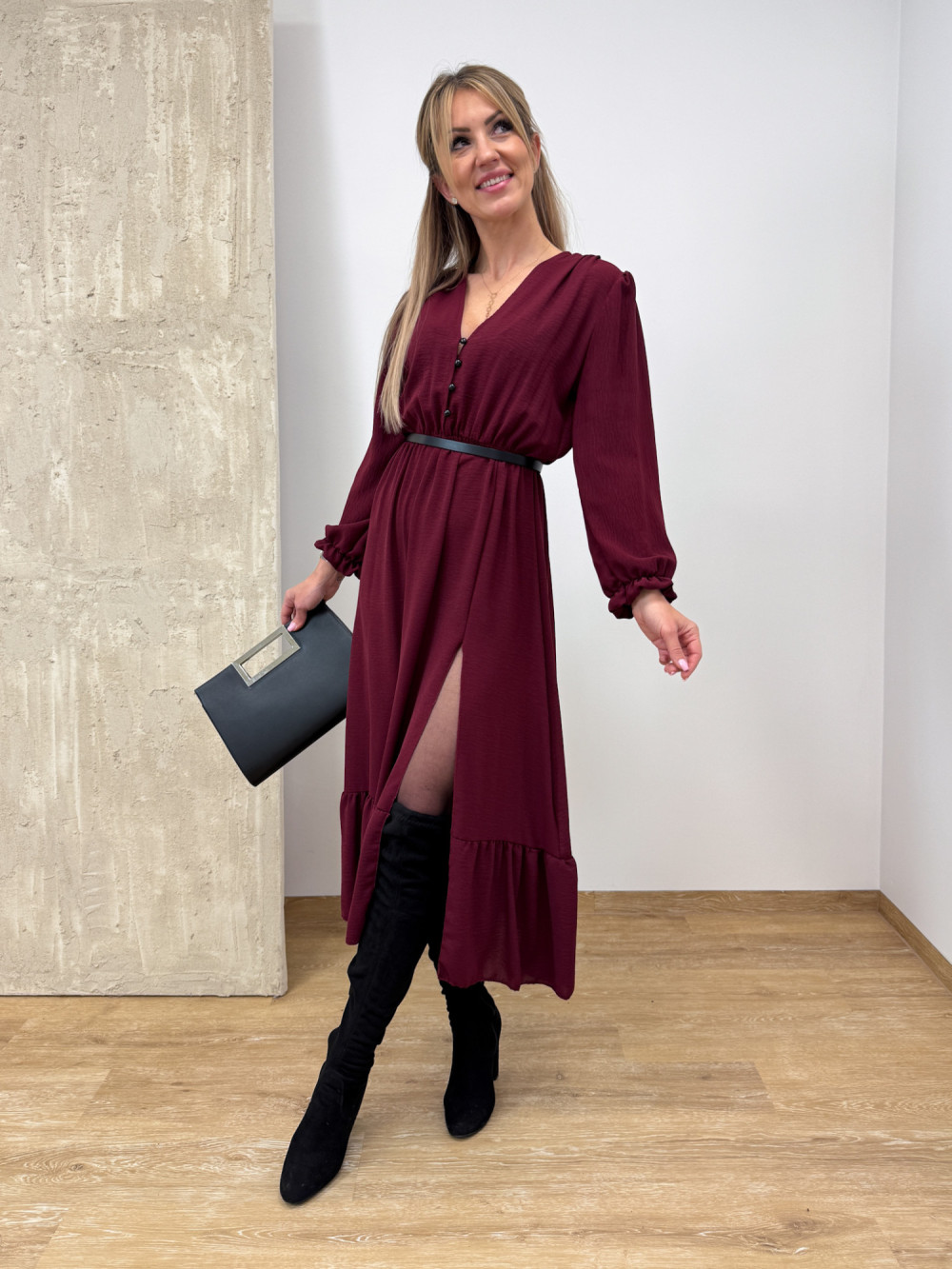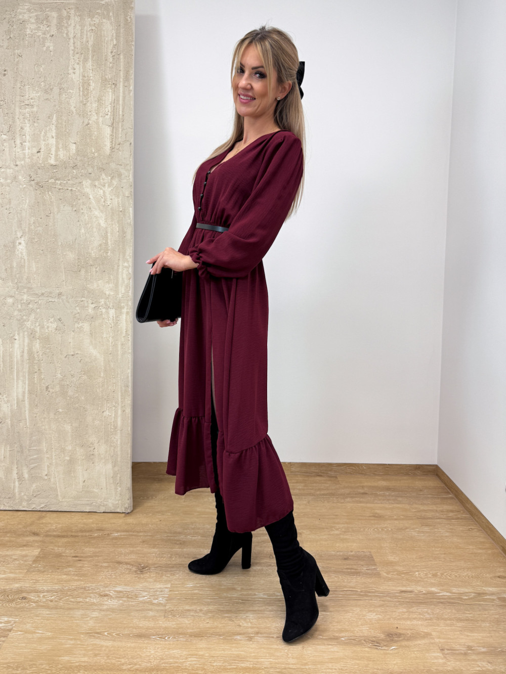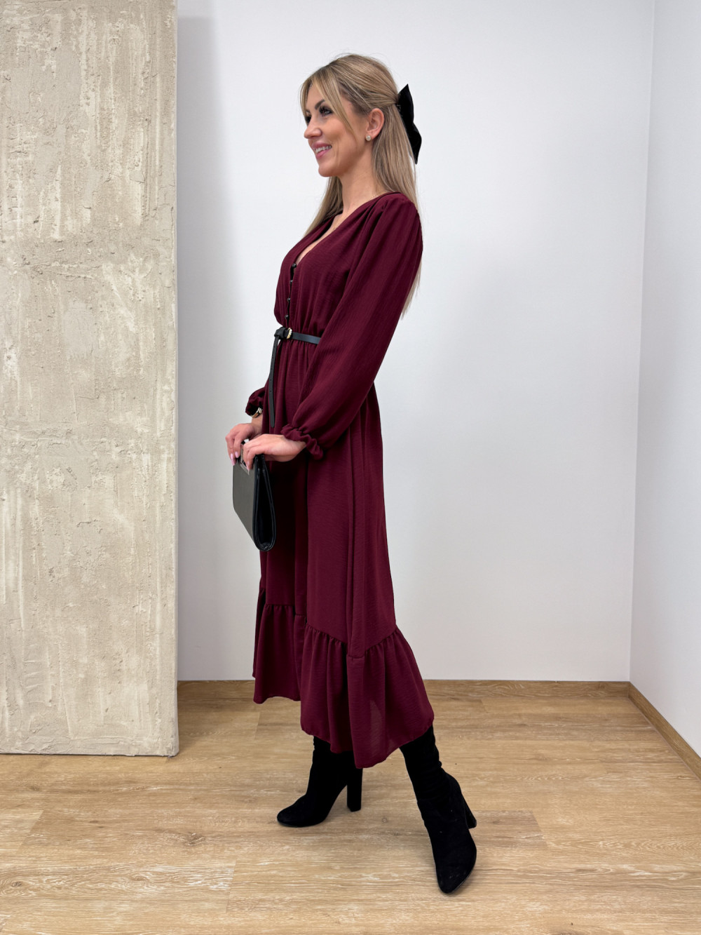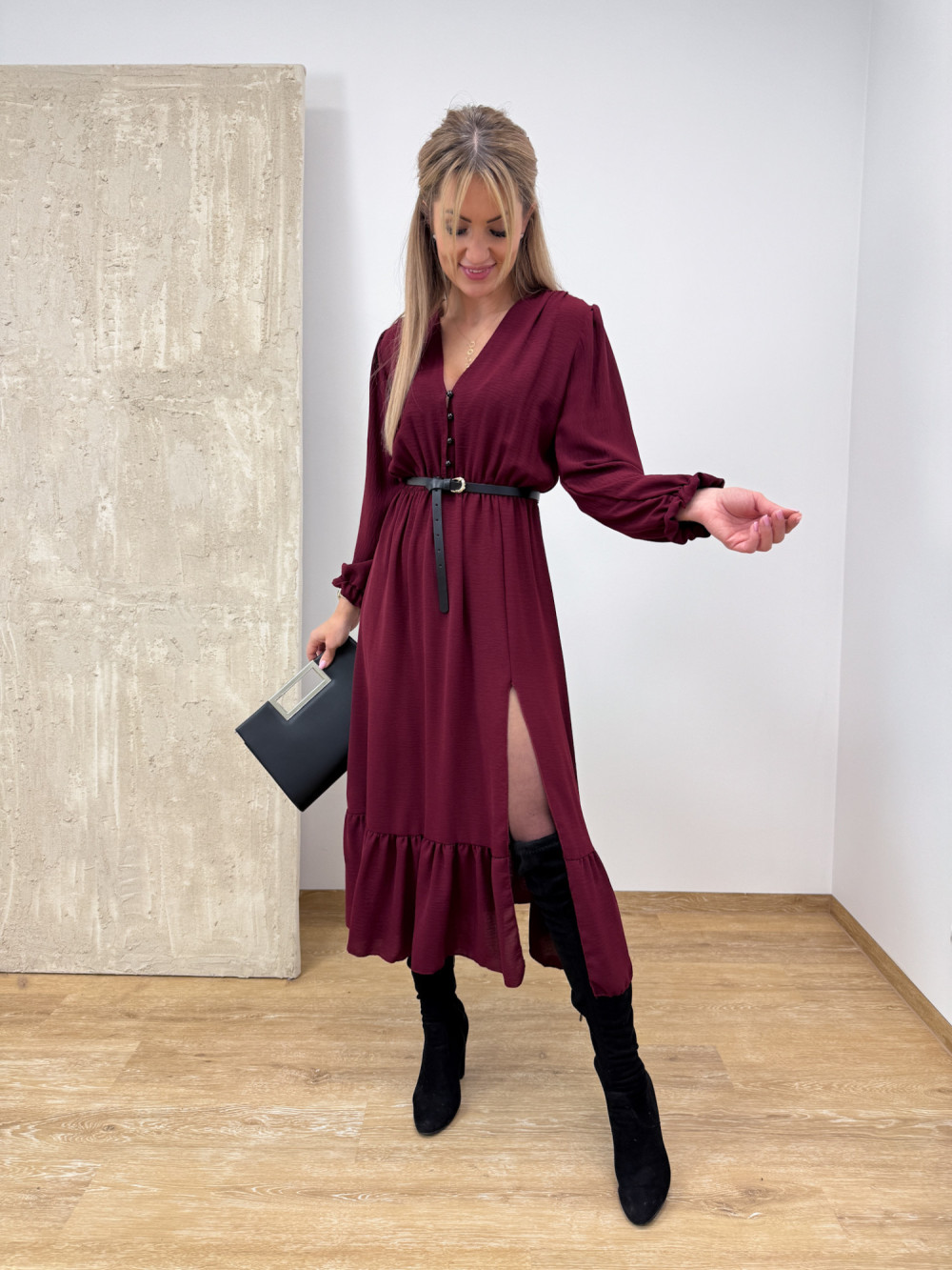 Sukienka z Długim Rękawem Midi Laura - Burgund