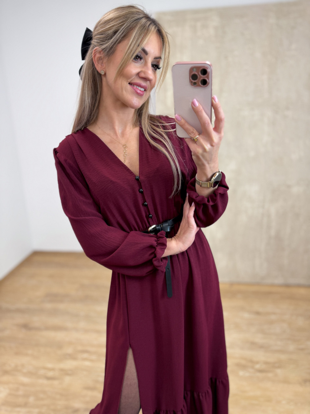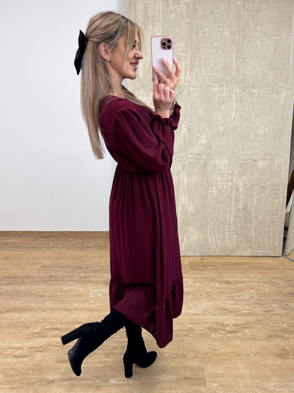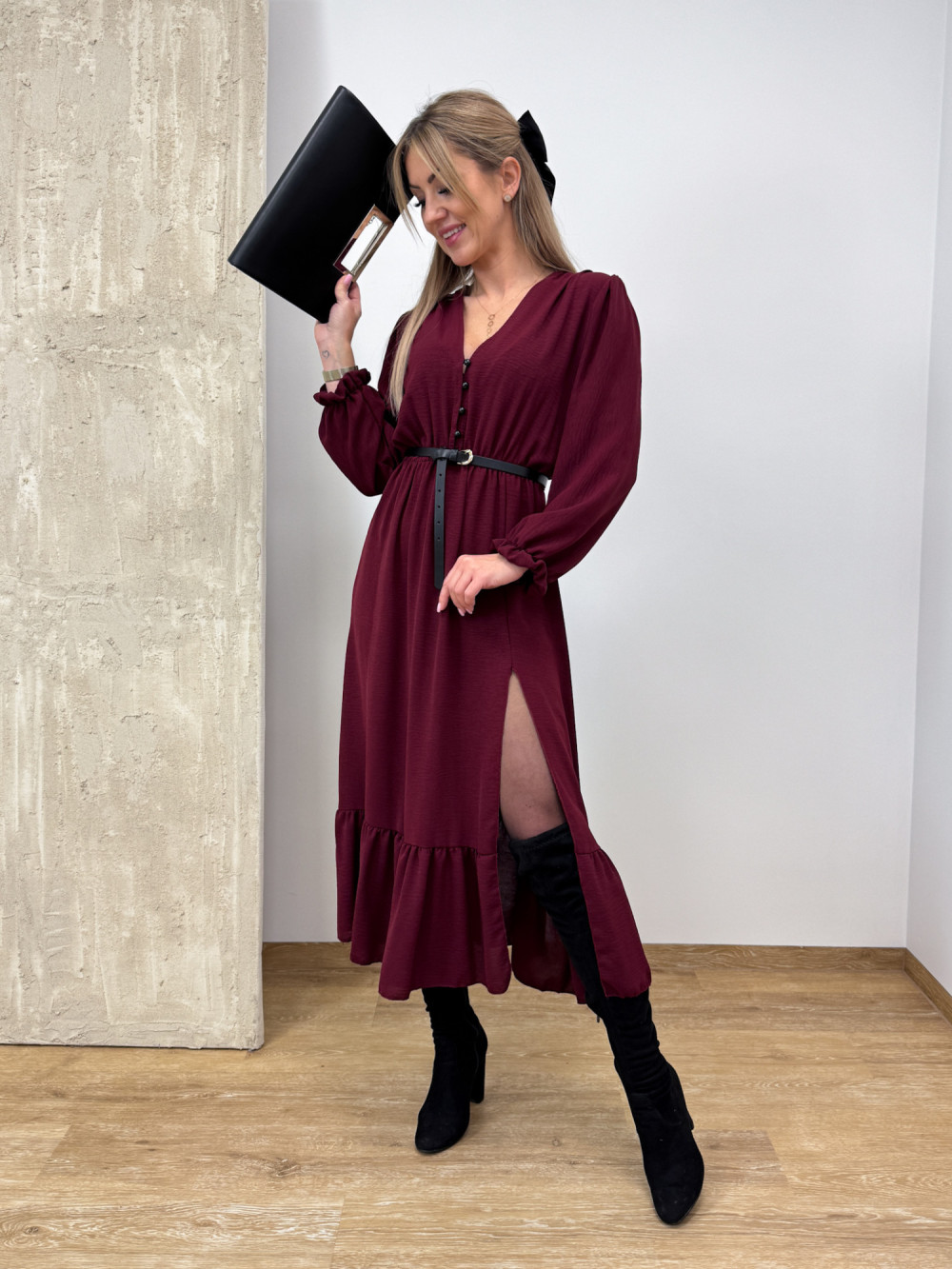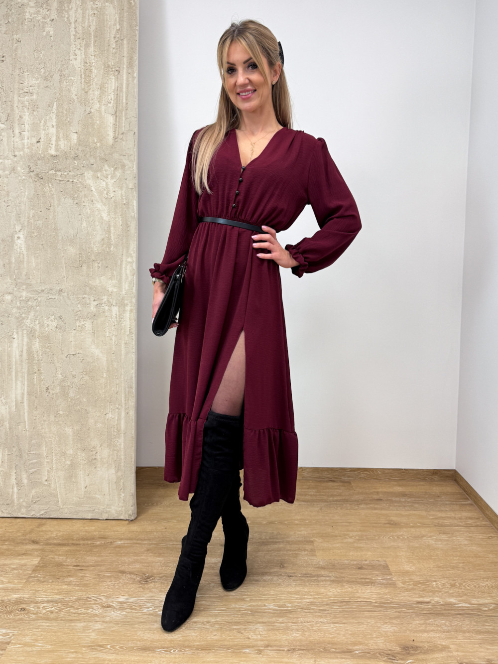 Sukienka z Długim Rękawem Midi Laura - Burgund