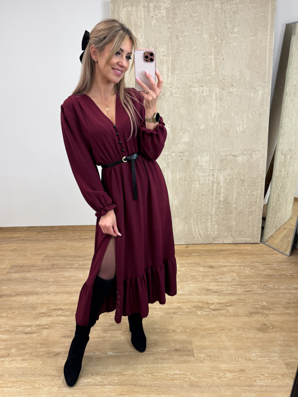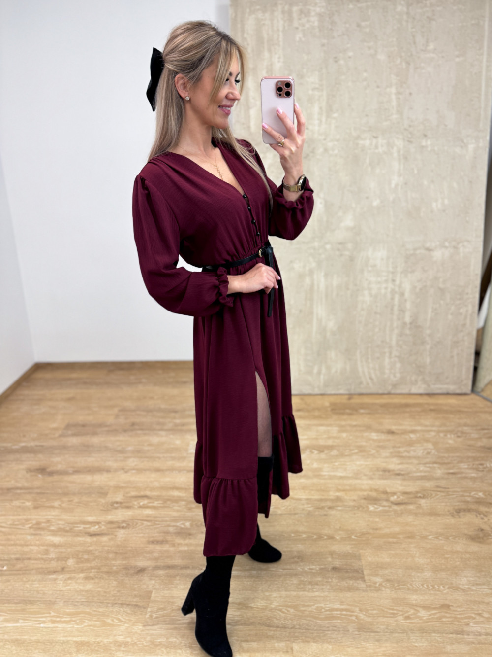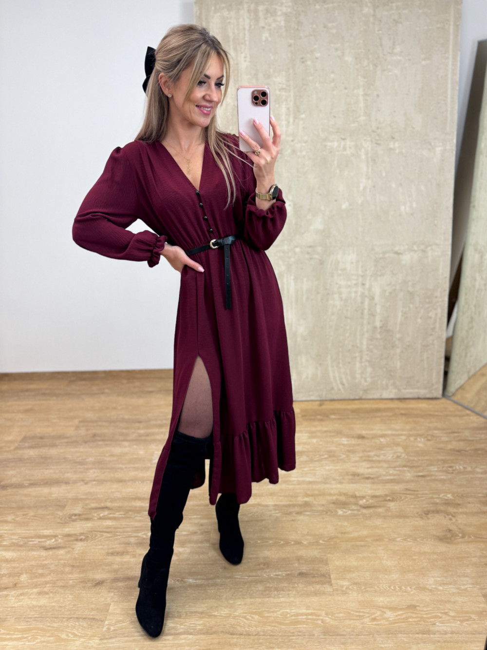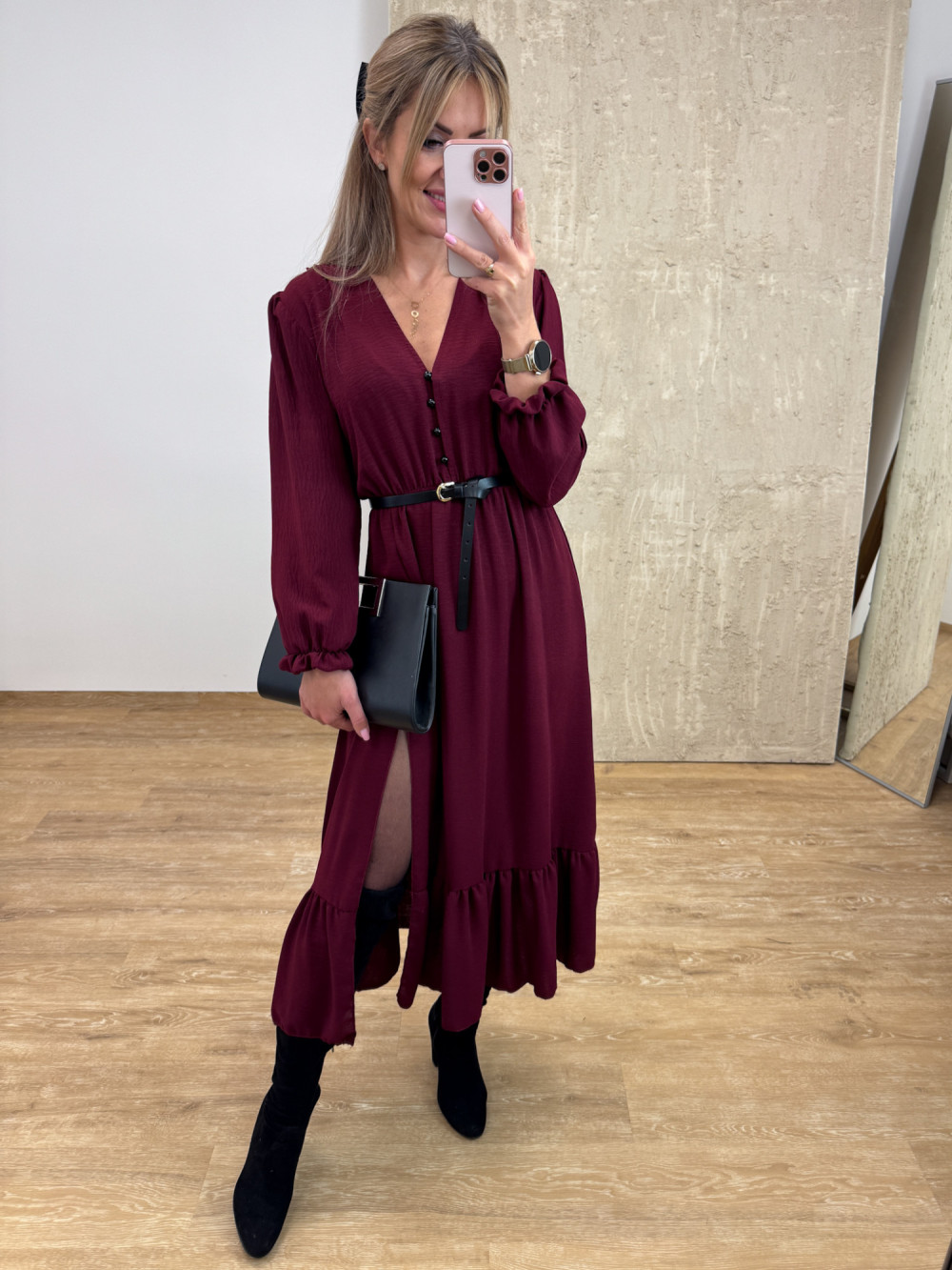 Sukienka z Długim Rękawem Midi Laura - Burgund