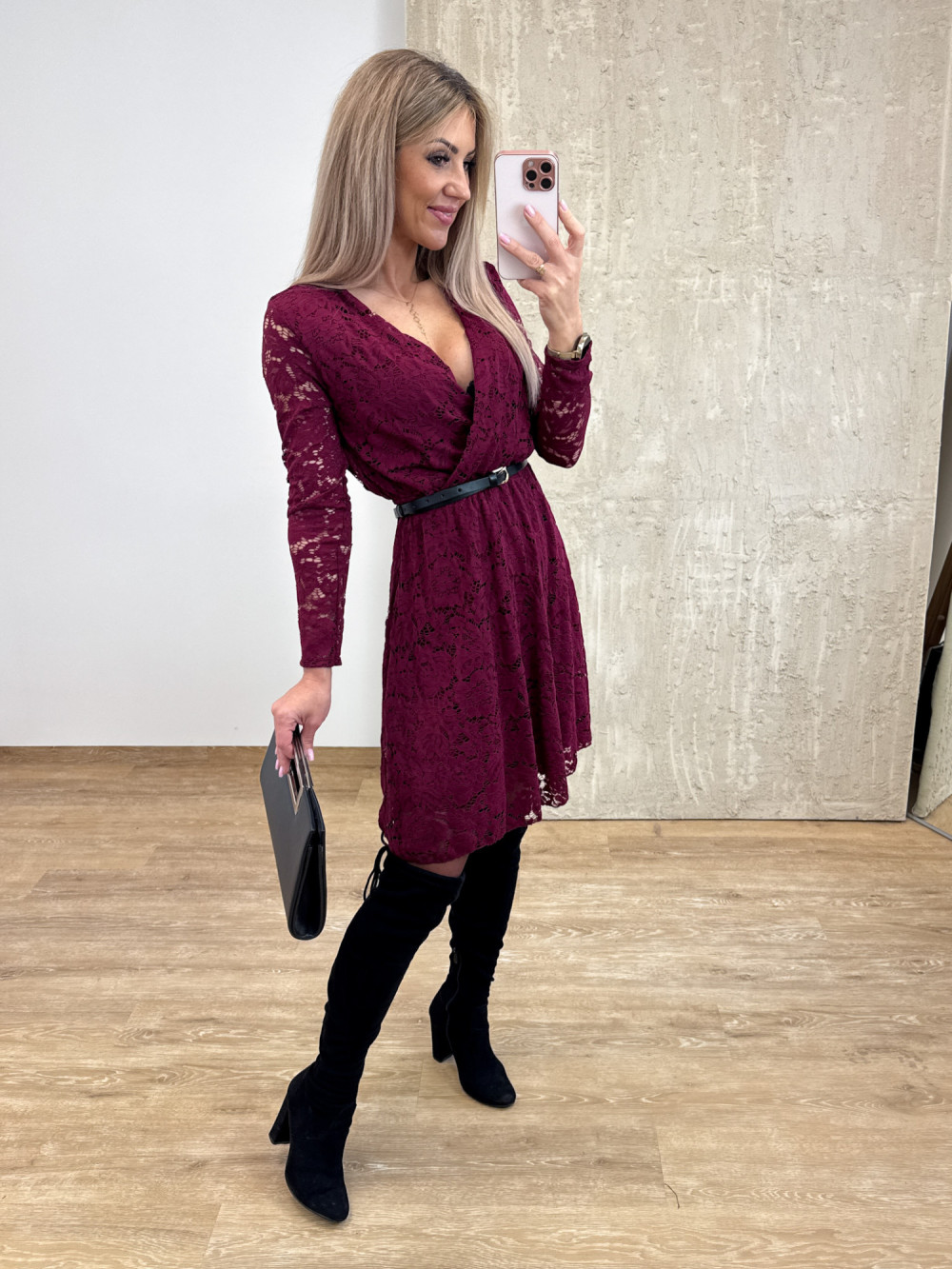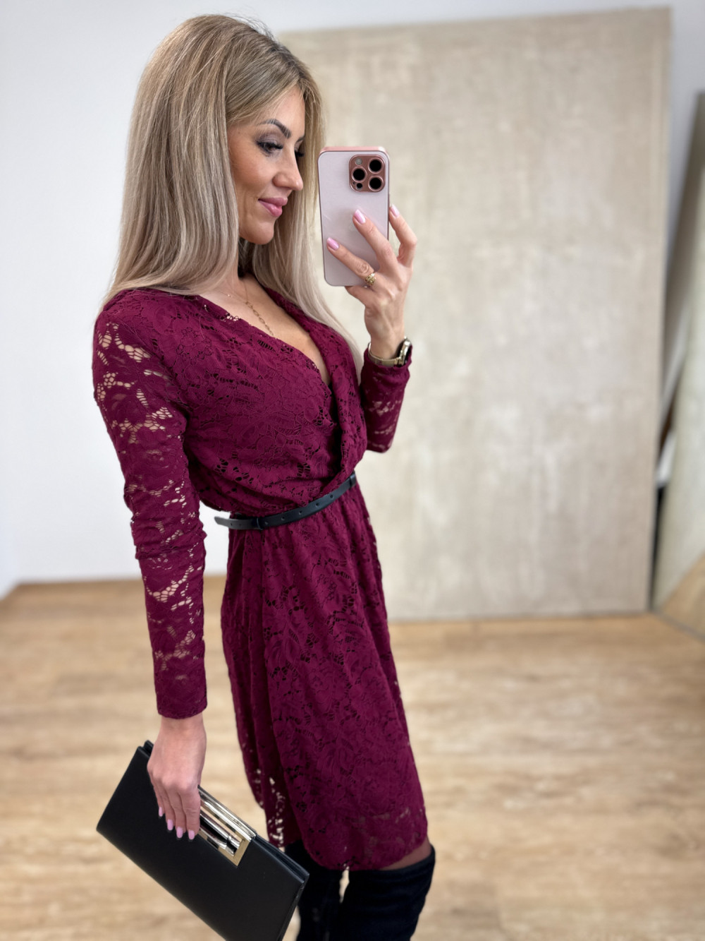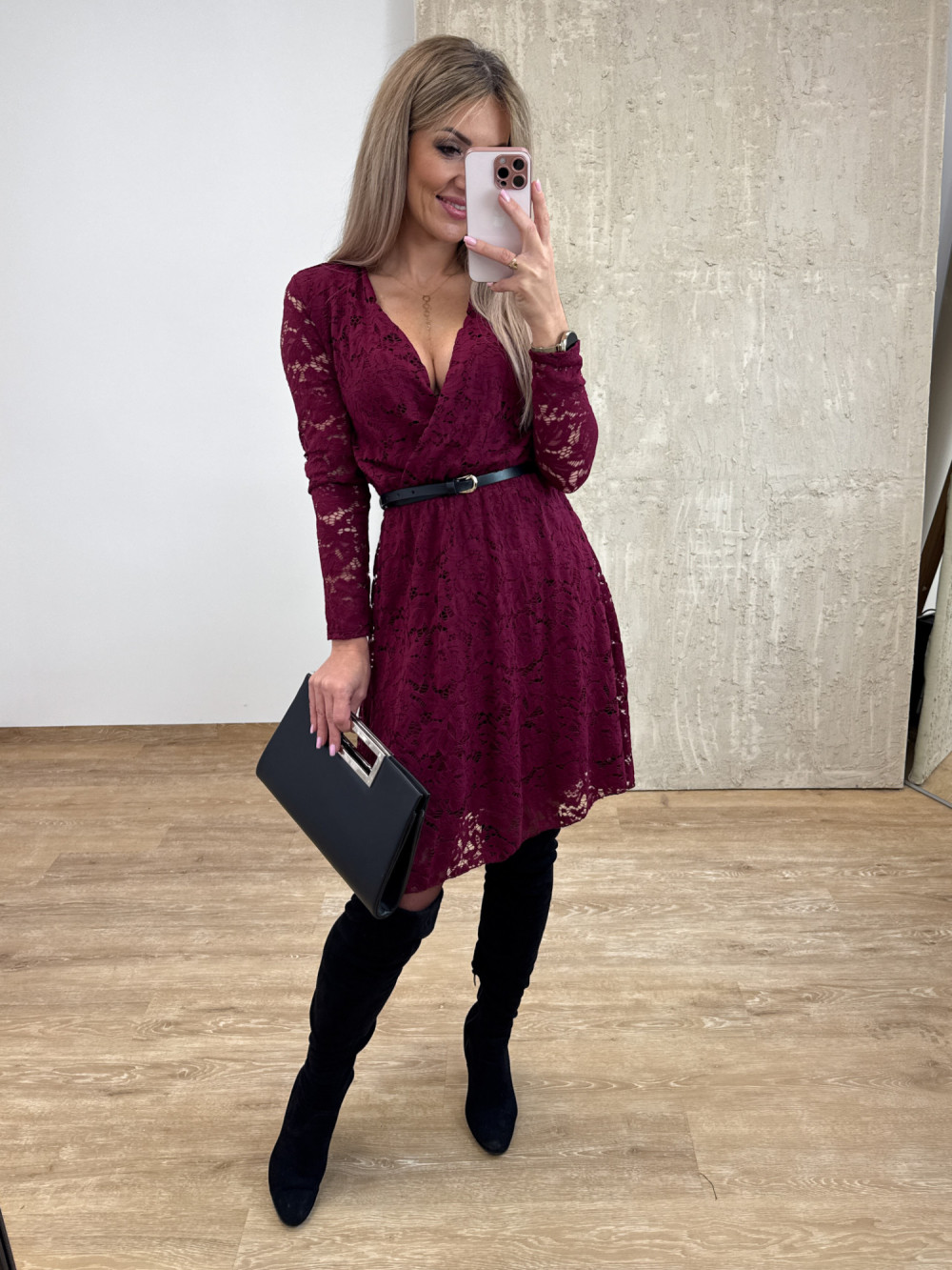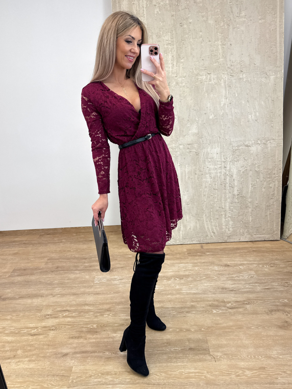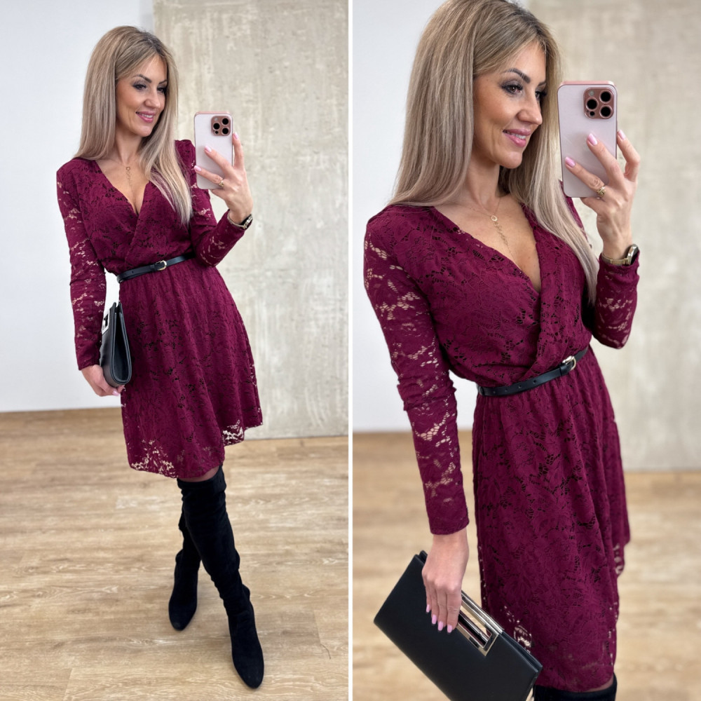 Sukienka Koronkowa Kopertowa Amore – Burgund