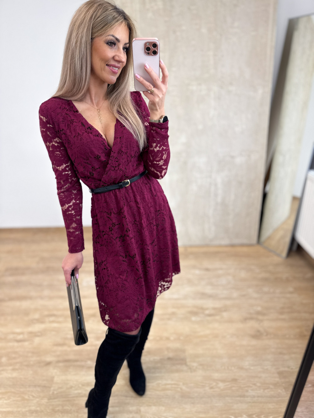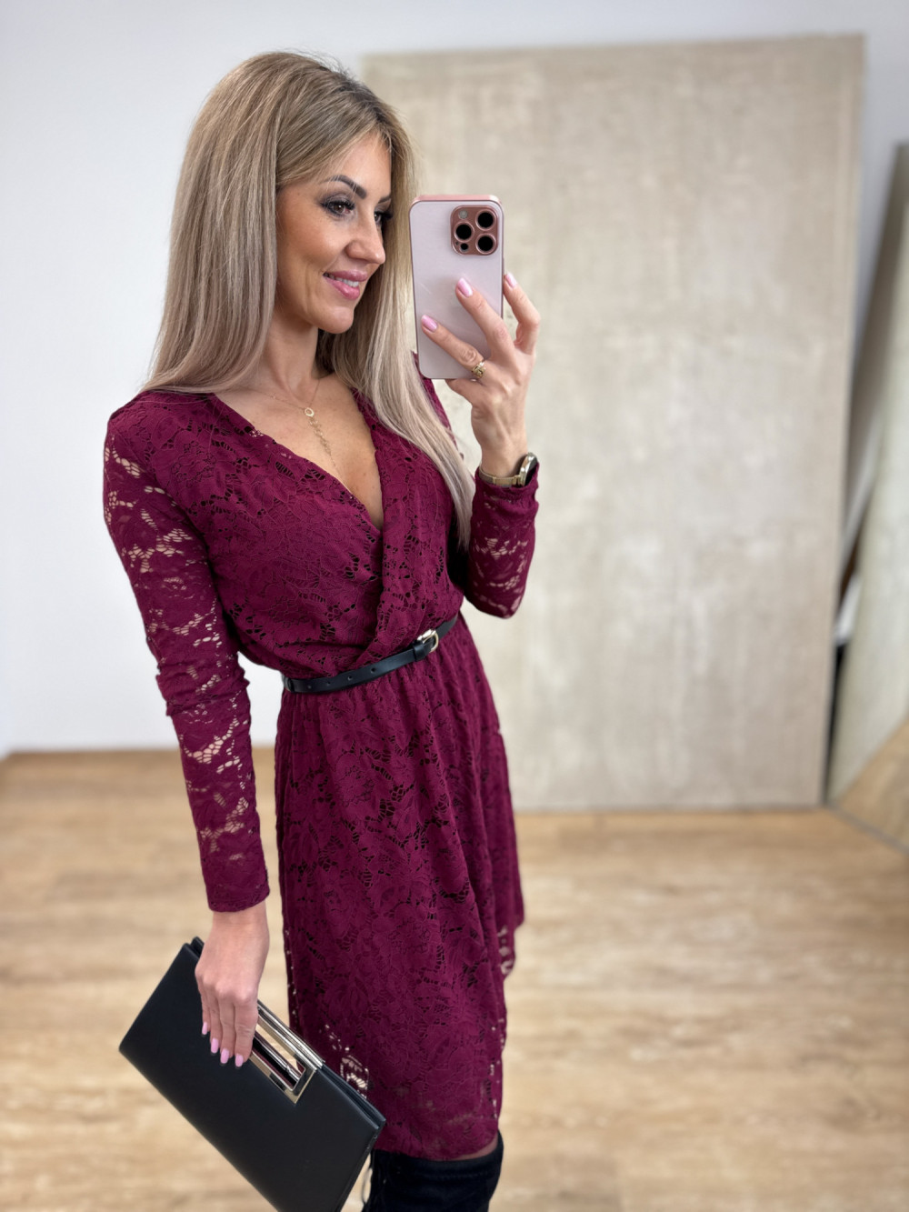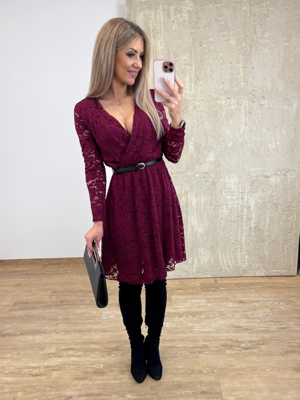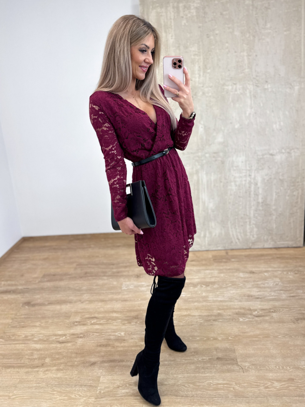 Sukienka Koronkowa Kopertowa Amore – Burgund
