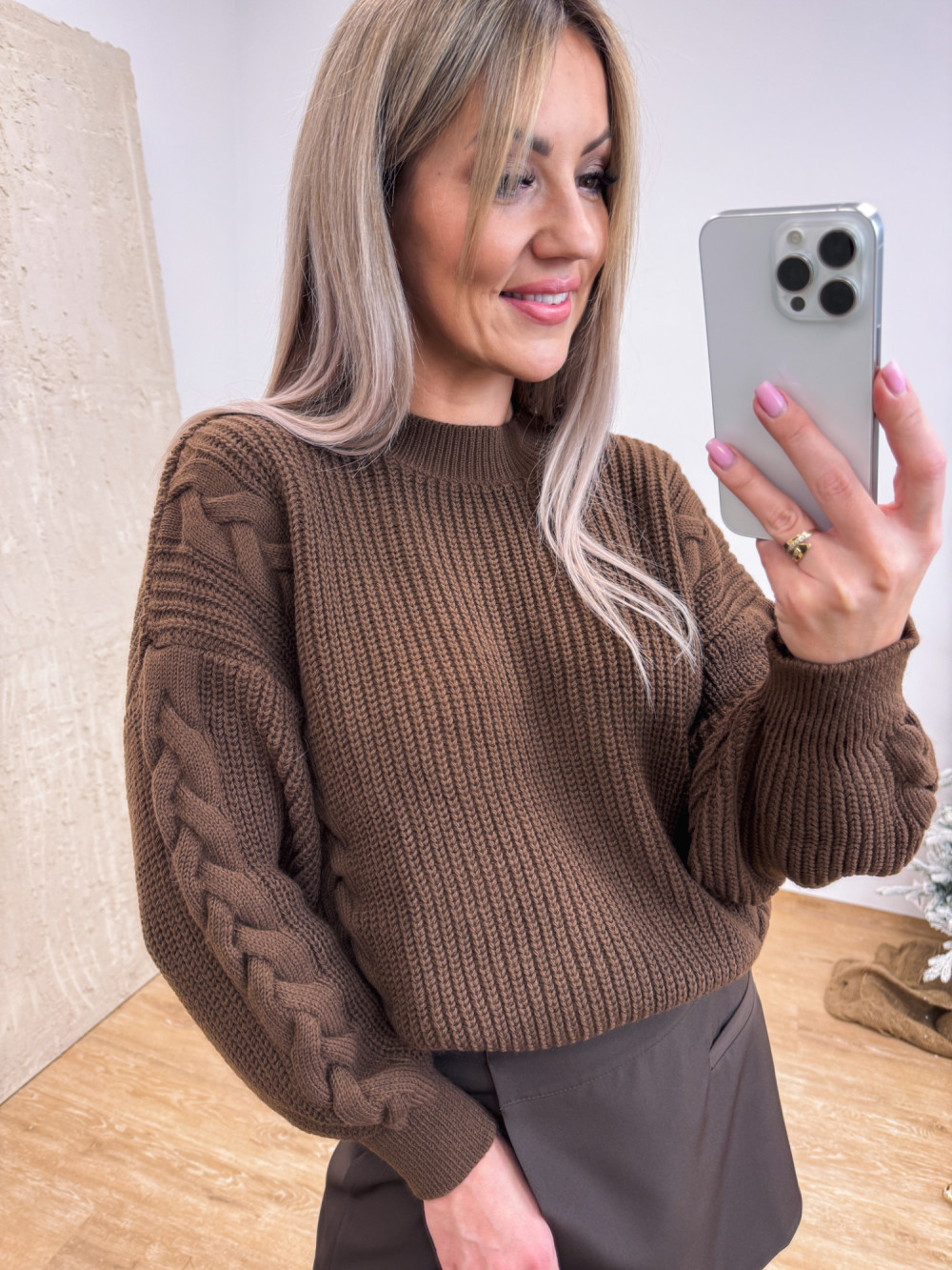 Sweter Zdobiony Warkoczem Perfumowany Rosalia - Czekoladowy