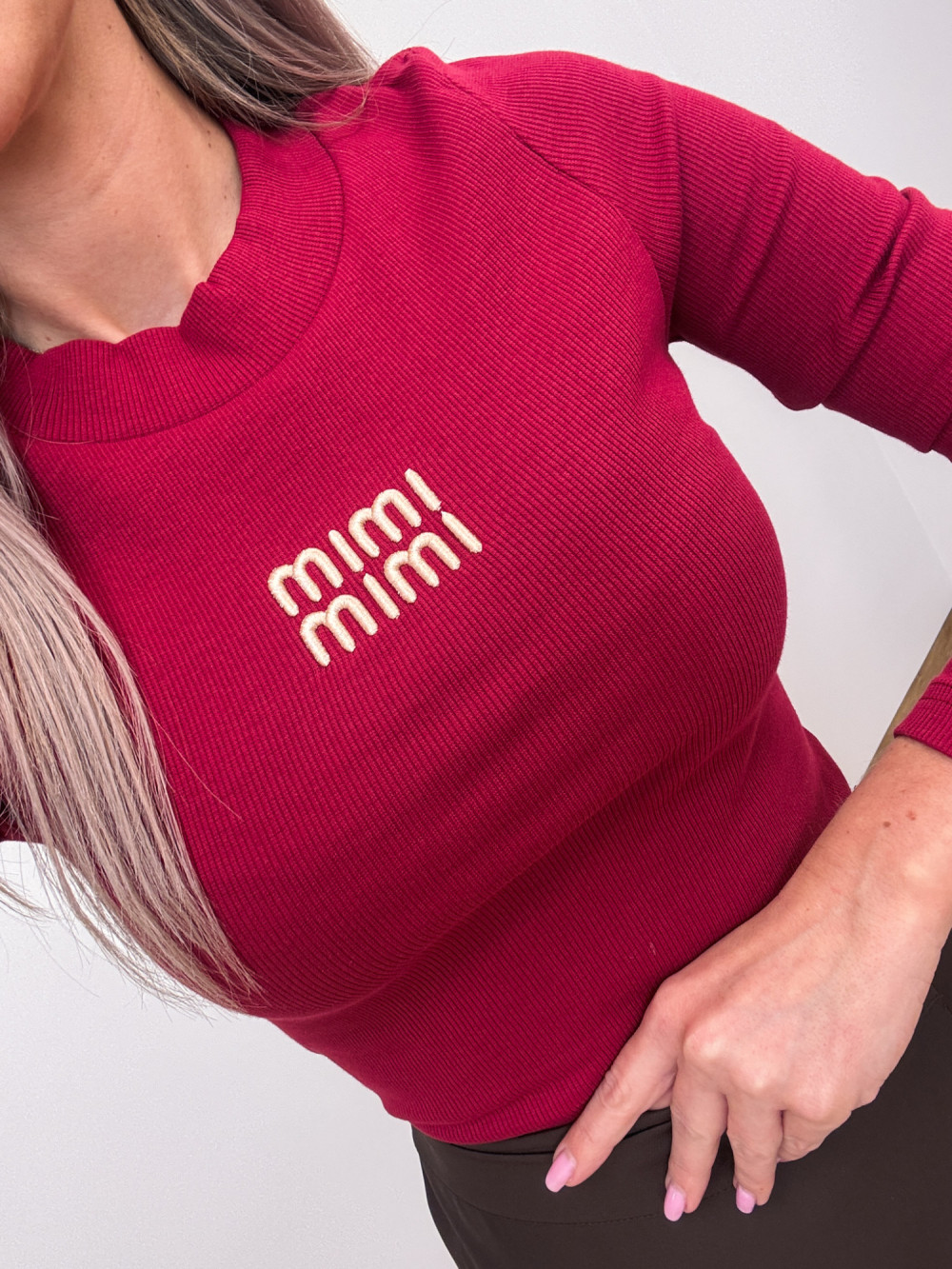 Bluzka Prążkowana Bawełniana Przyległa MiMi - Bordowa