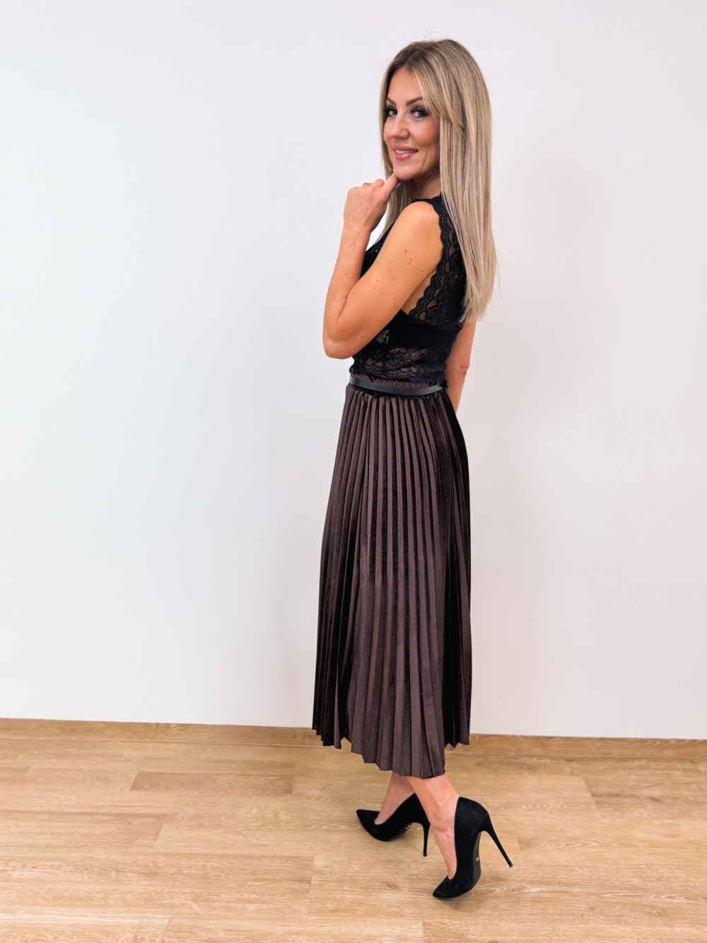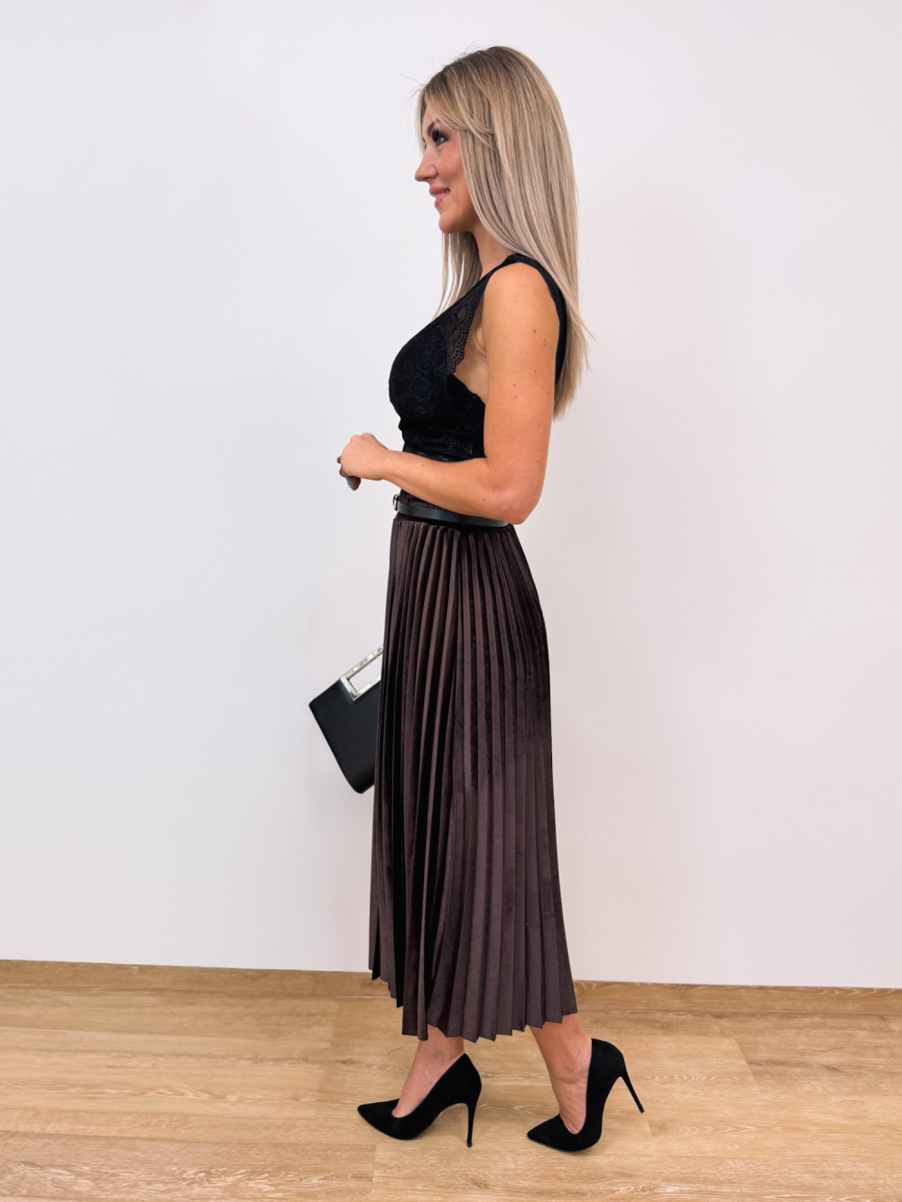 Spódnica Welurowa Plisowana Midi Veloria - Czekoladowa
