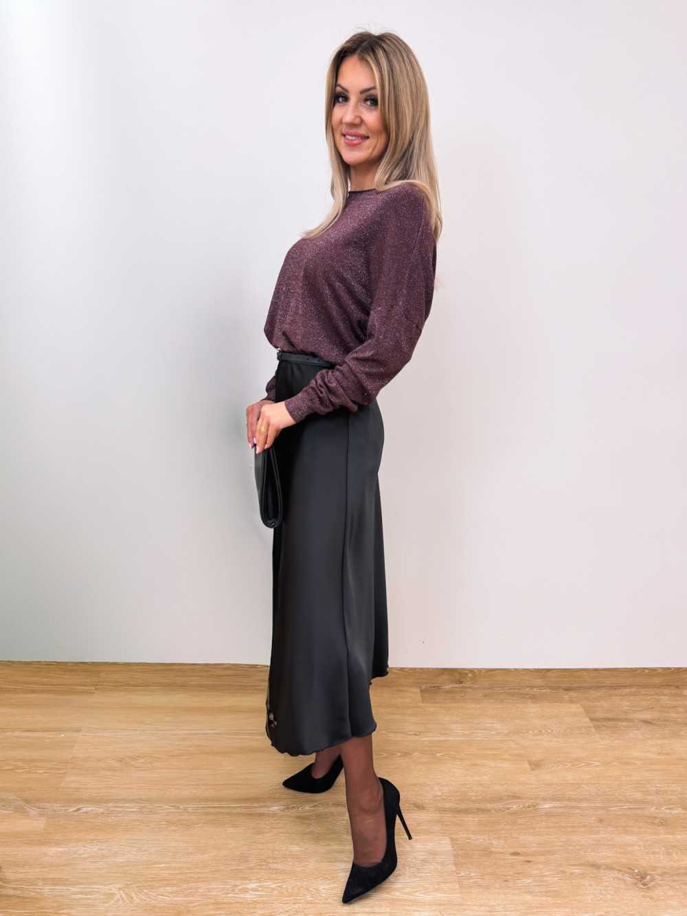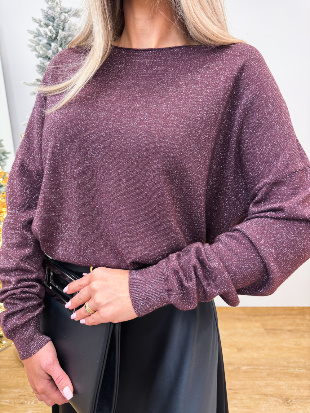Lekki Sweter Luis z Srebrną Nitką - Włoska Śliwka