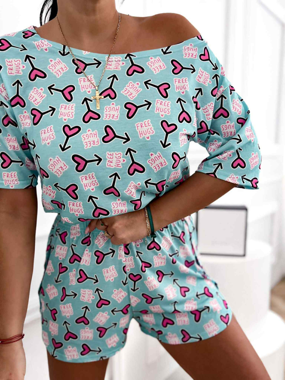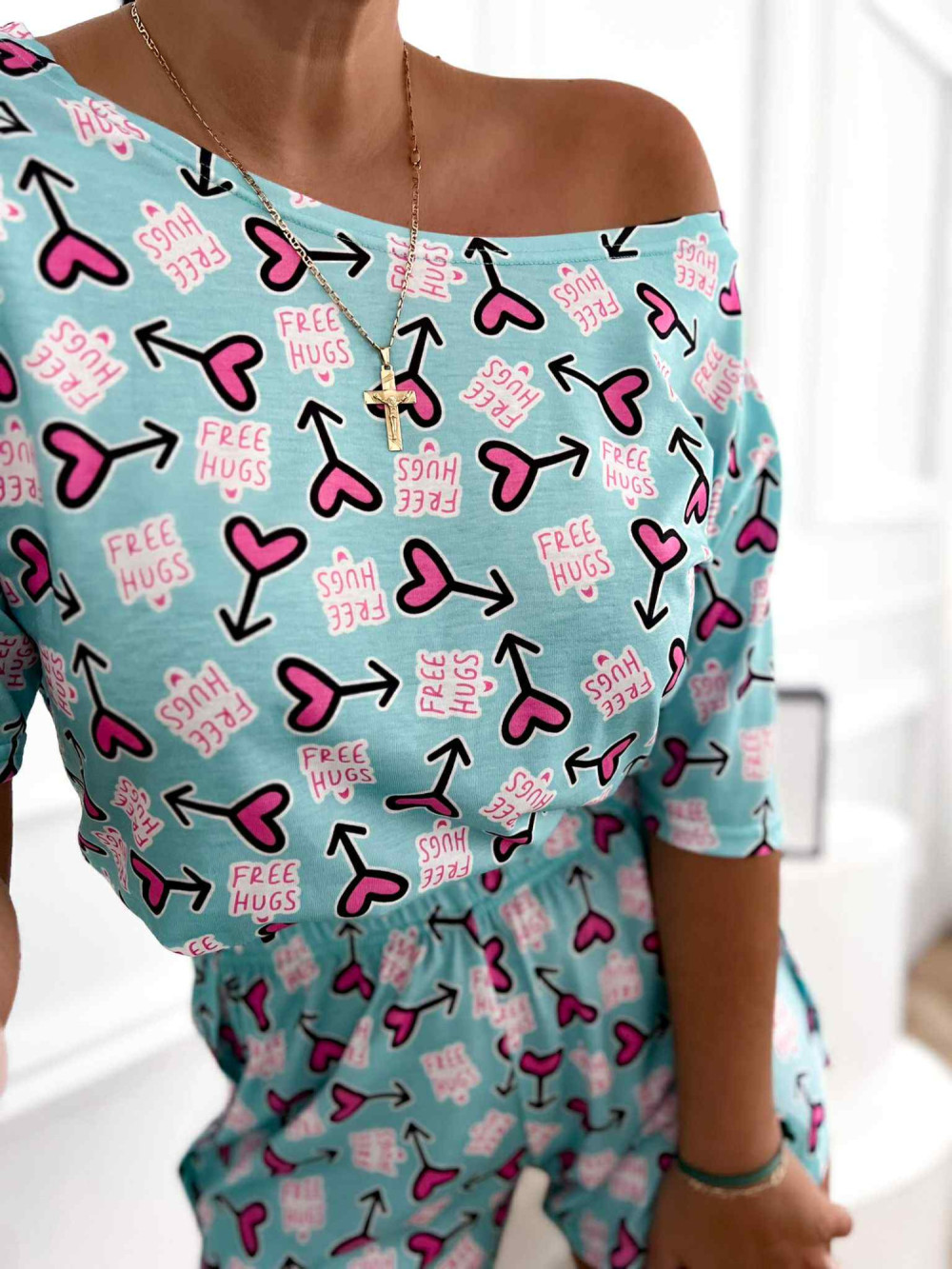 Piżama z Wiskozy w Serca Free Hugs Cute - Miętowa