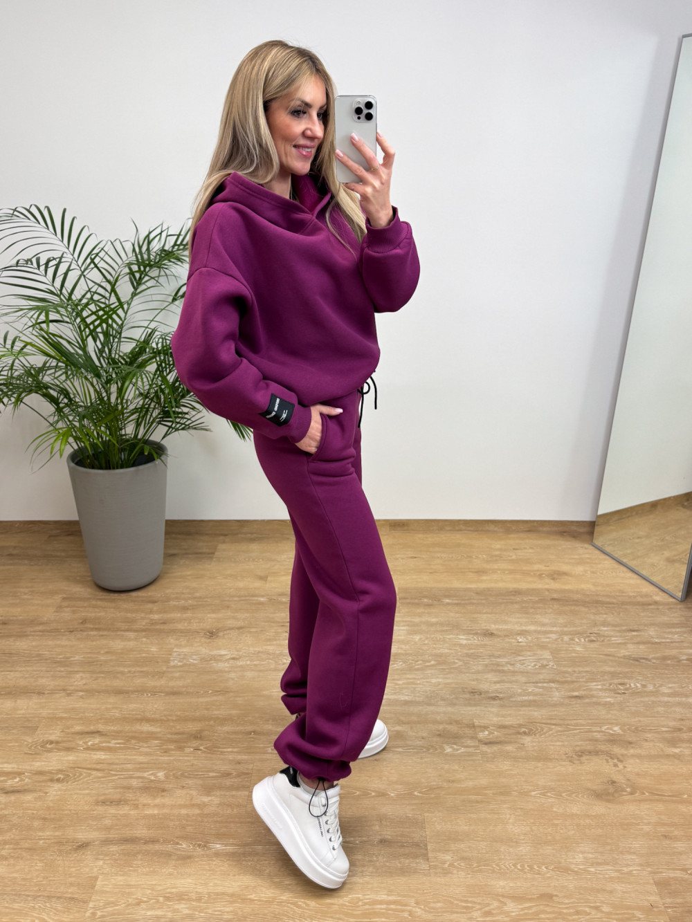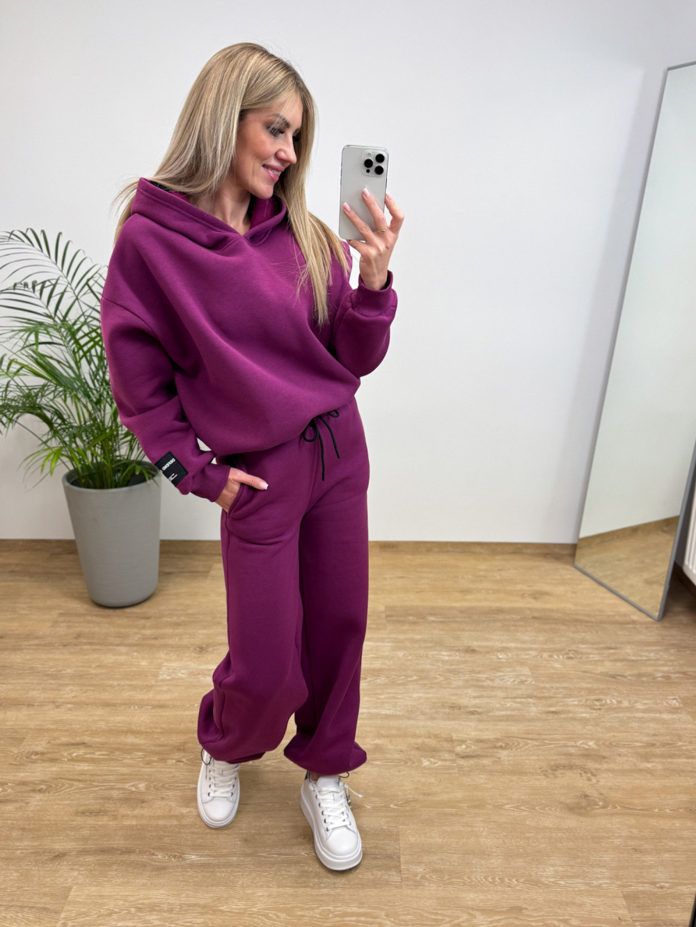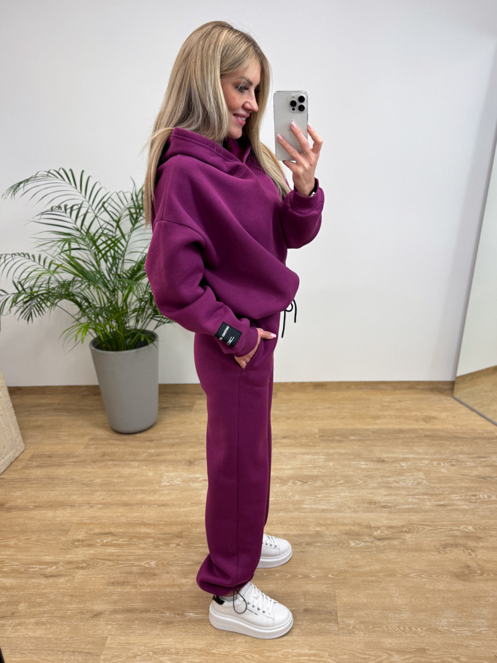 Komplet Dresowy Bawełniany Ocieplany z Kapturem Defender - Amarant