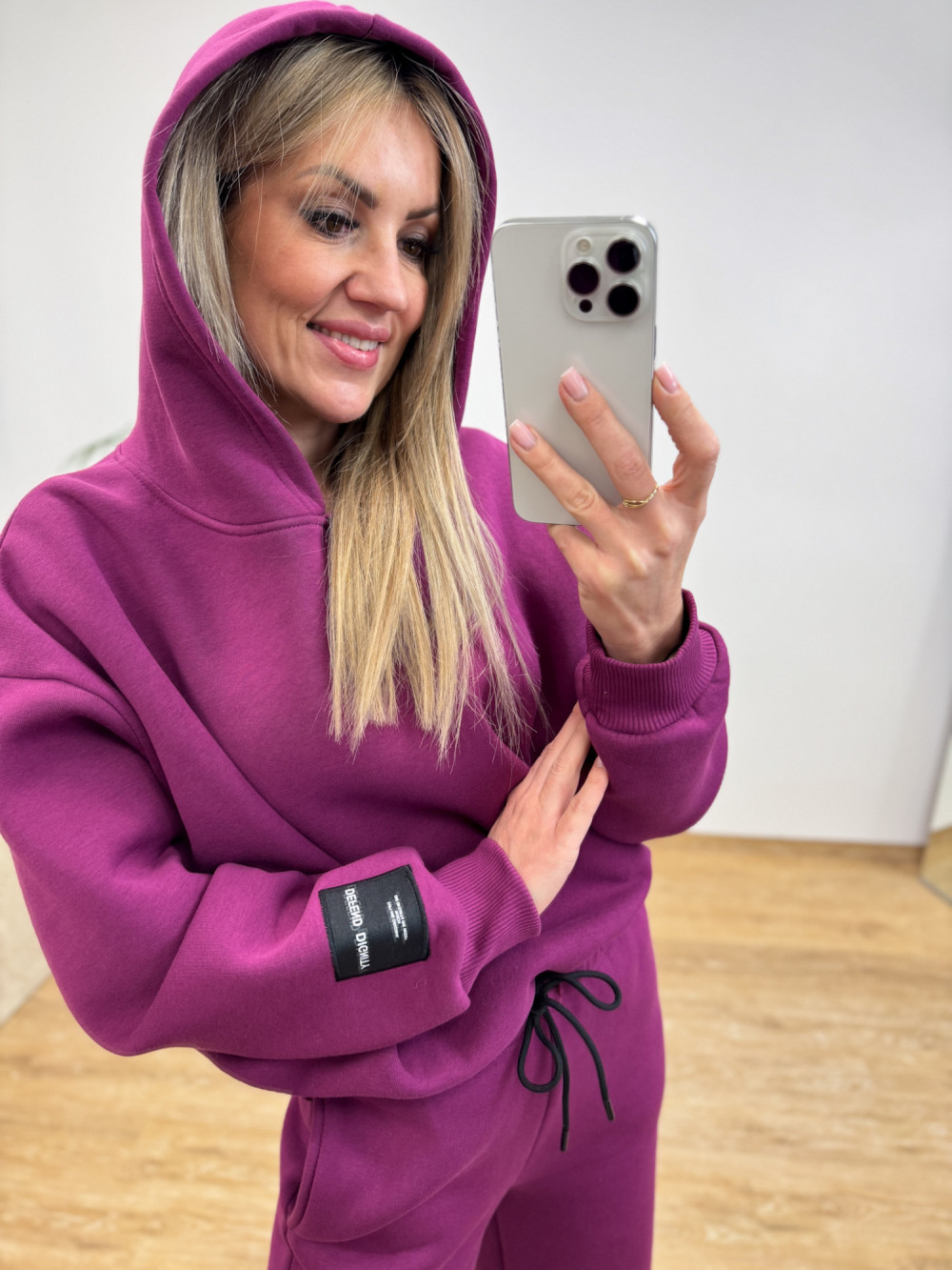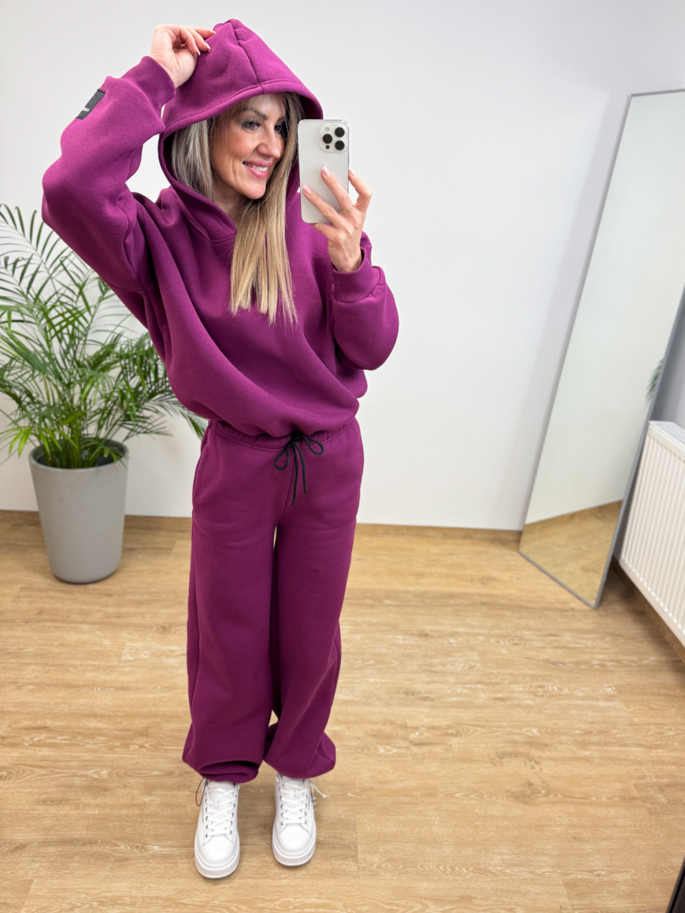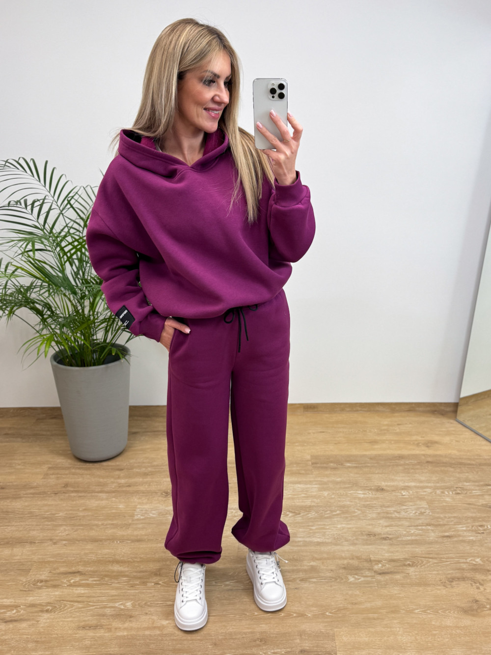 Komplet Dresowy Bawełniany Ocieplany z Kapturem Defender - Amarant
