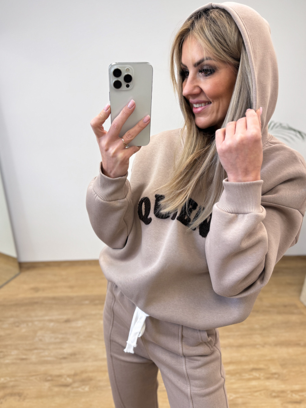 Komplet Dresowy Ocieplany Bawełniany Queens - Beżowy