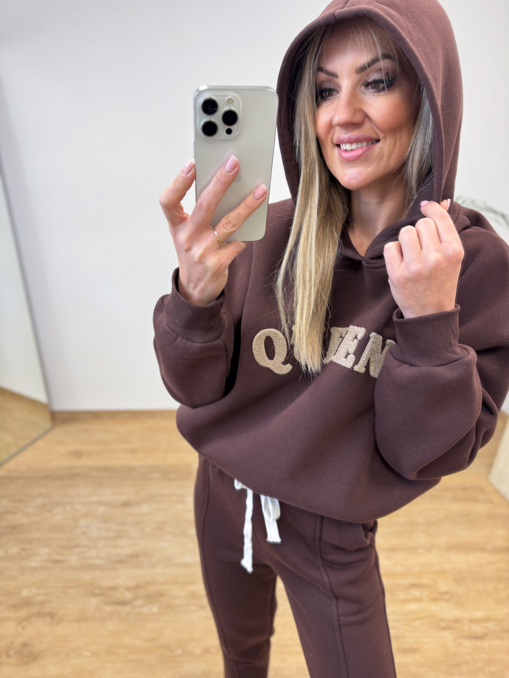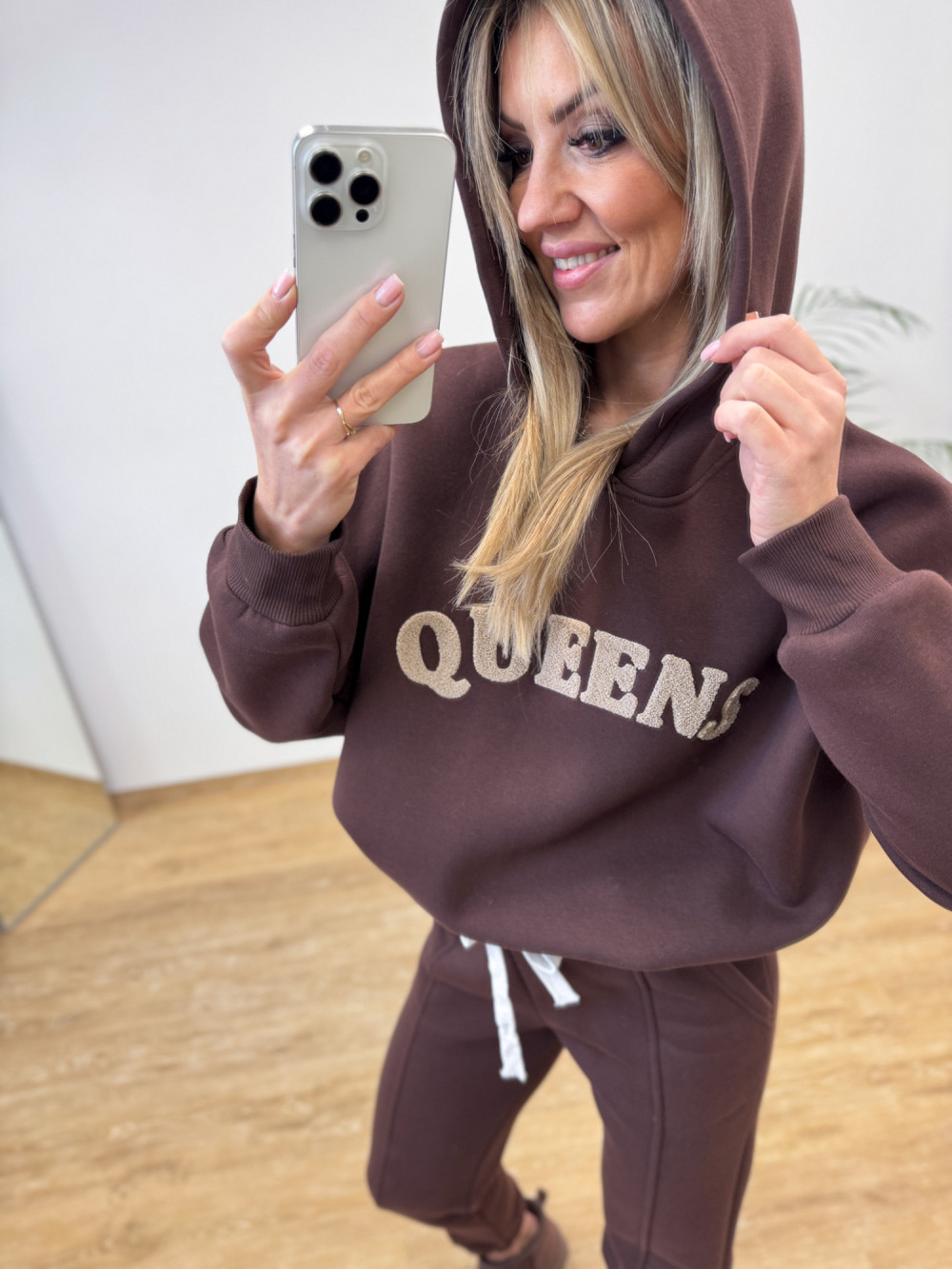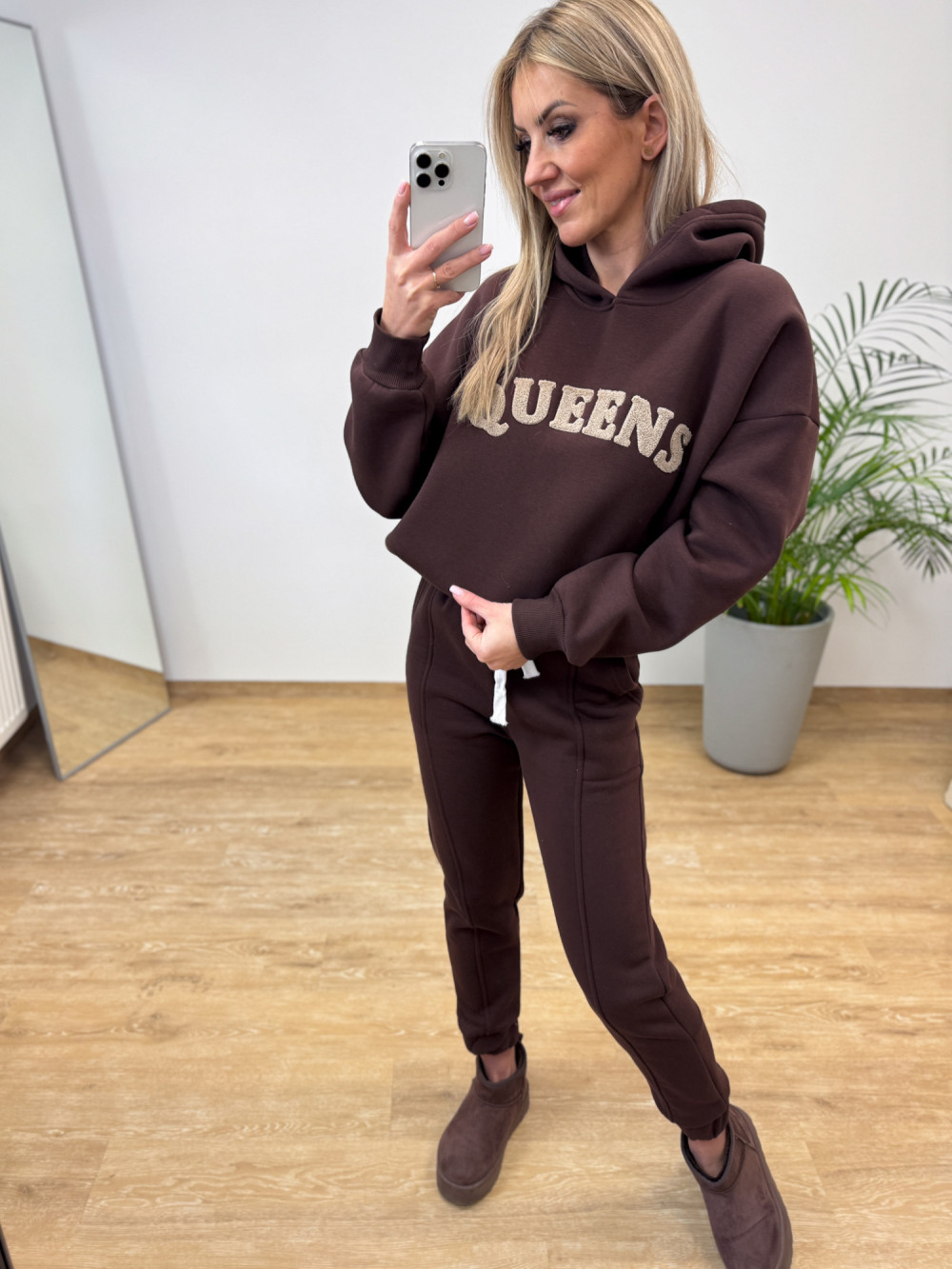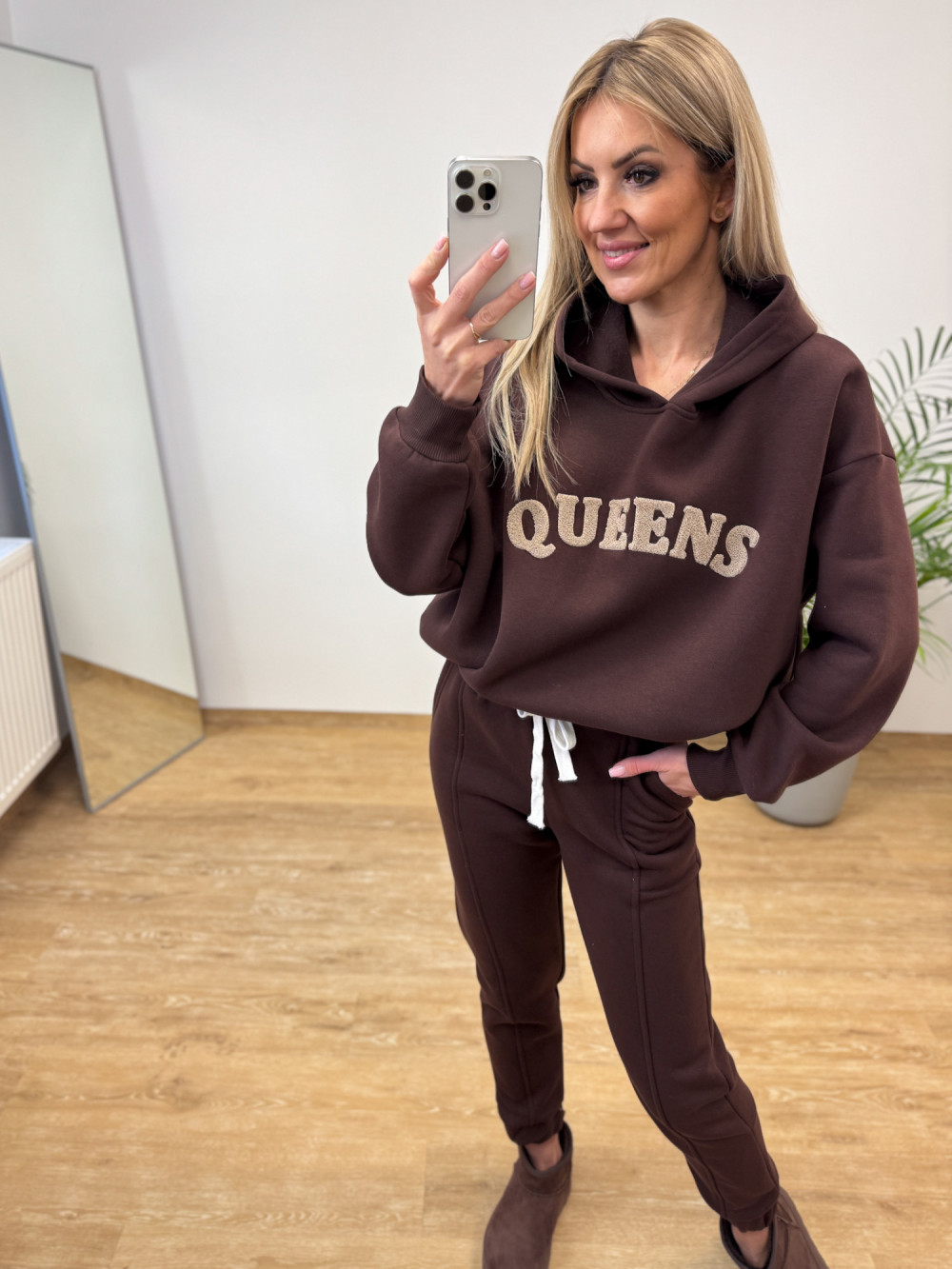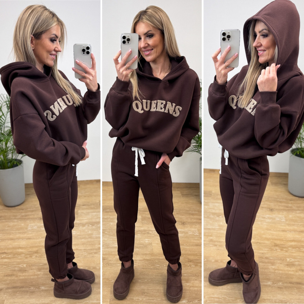 Komplet Dresowy Ocieplany Bawełniany Queens - Czekoladowy